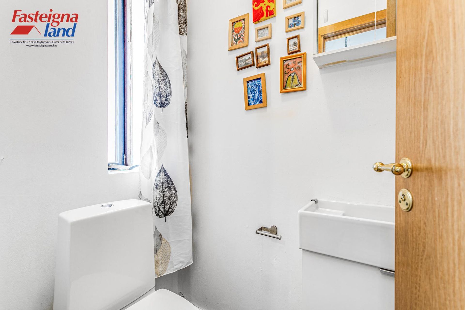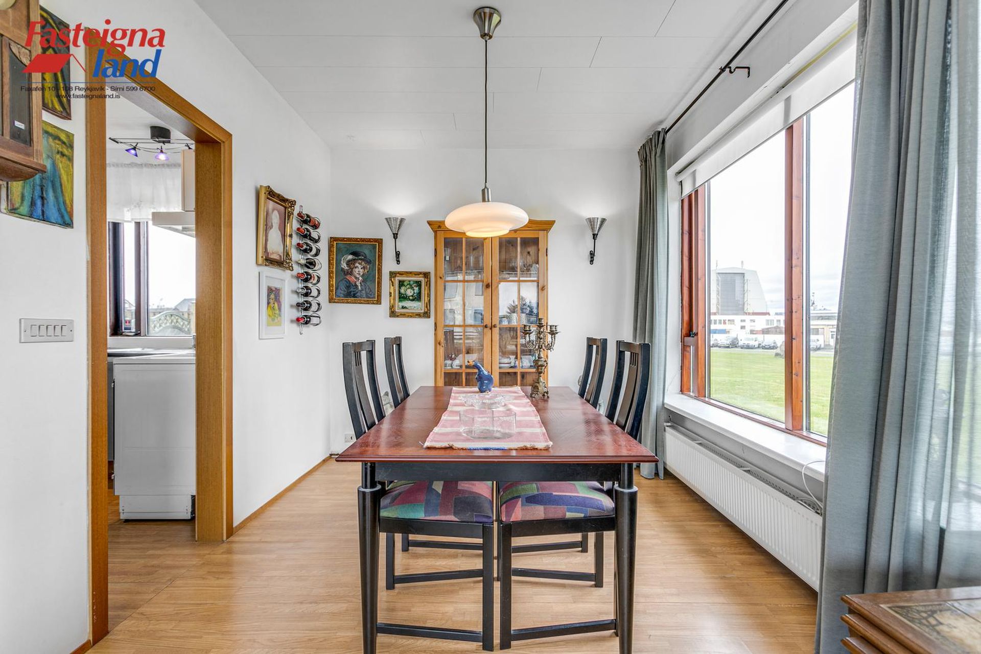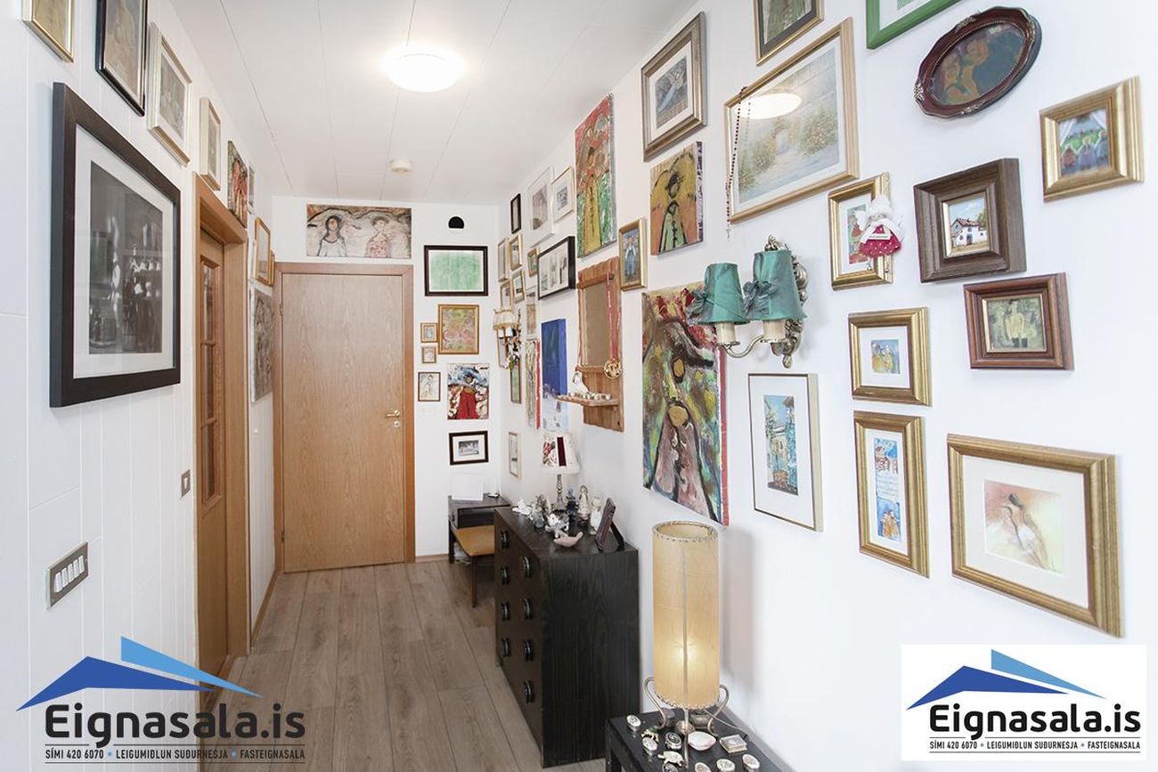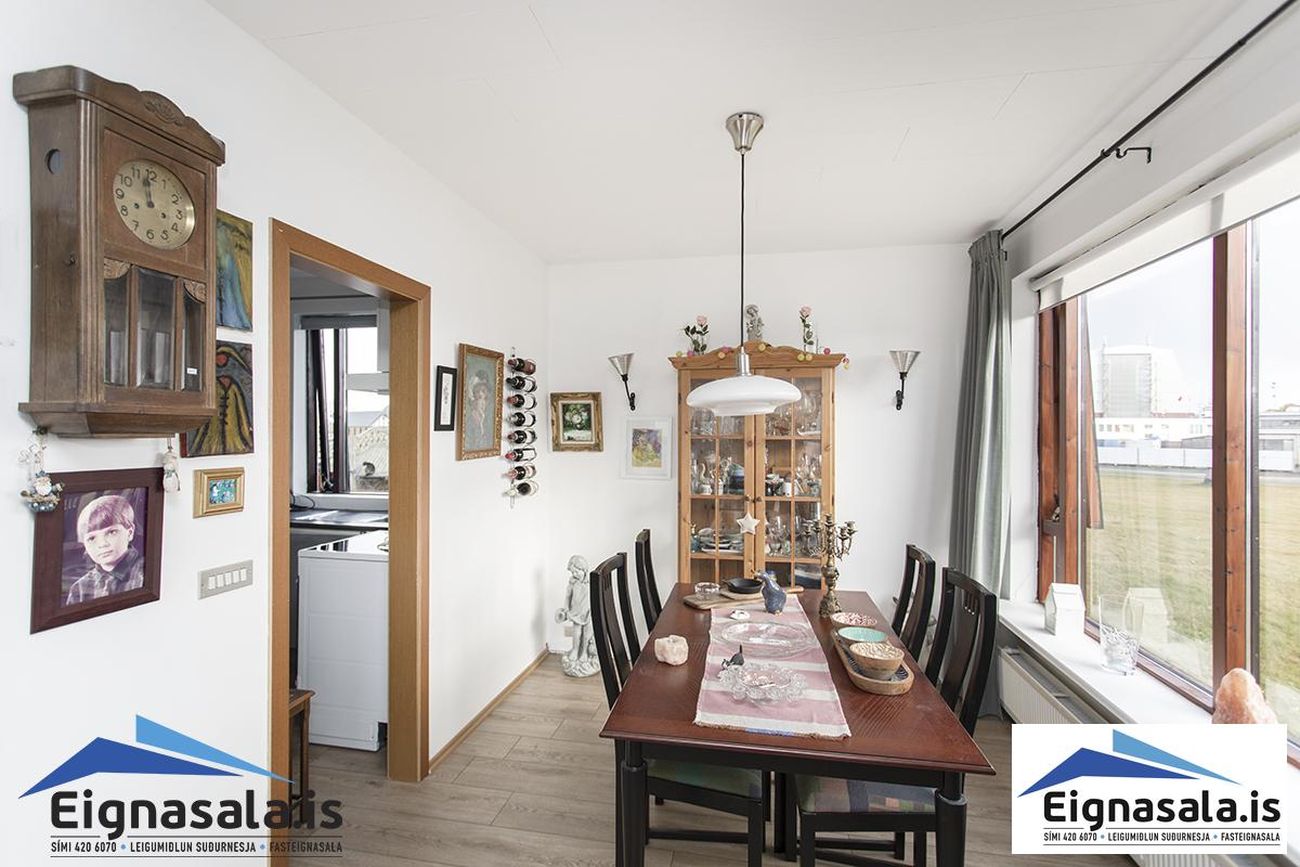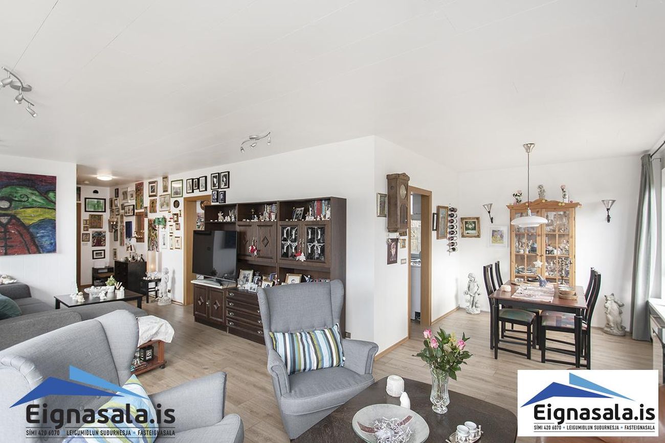 Flísar í anddyri og baðherbergi, harðparket í stofu, borðstofu og herbergjum, léttir innveggir.