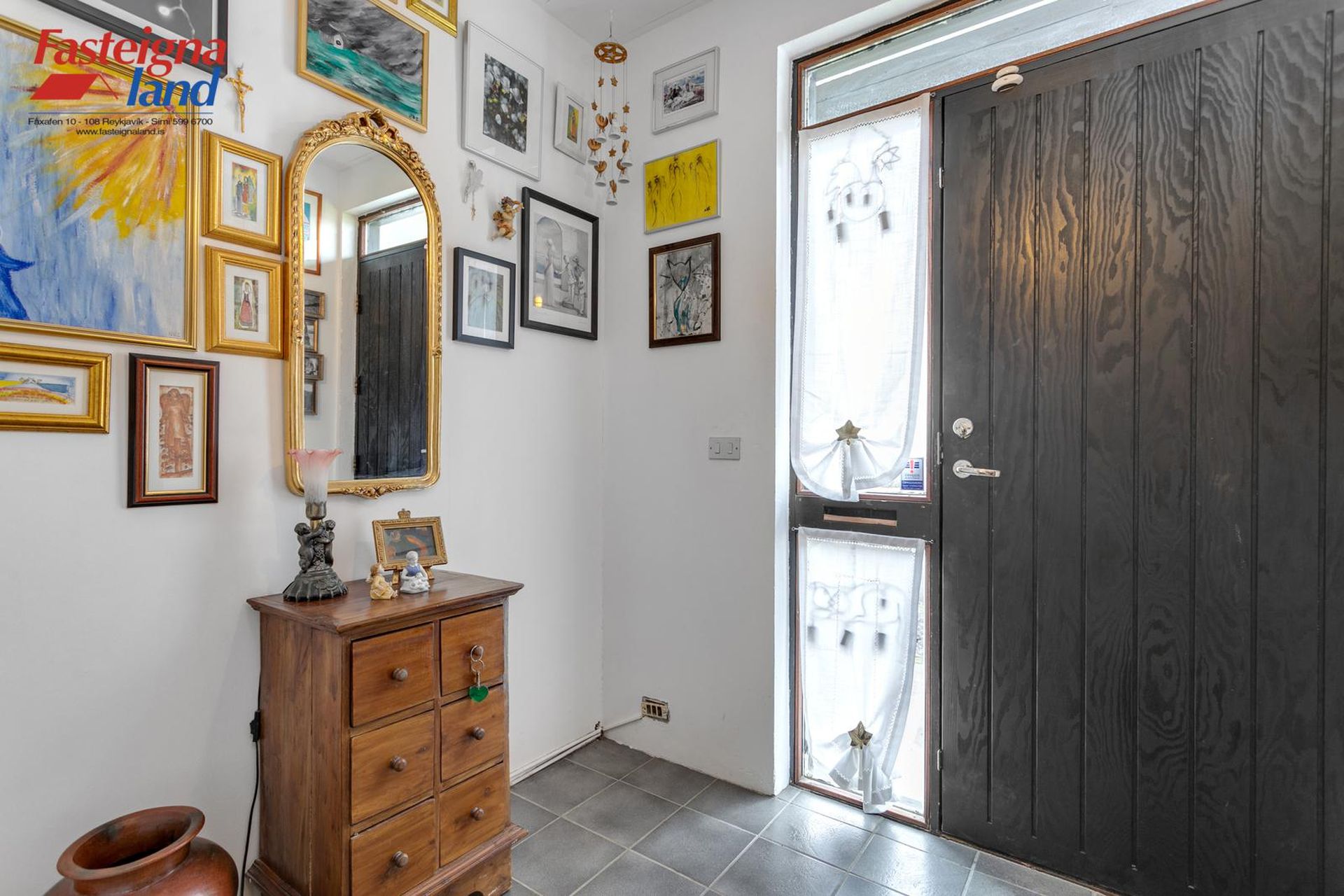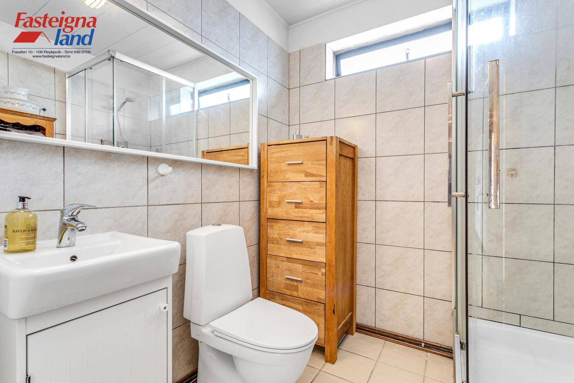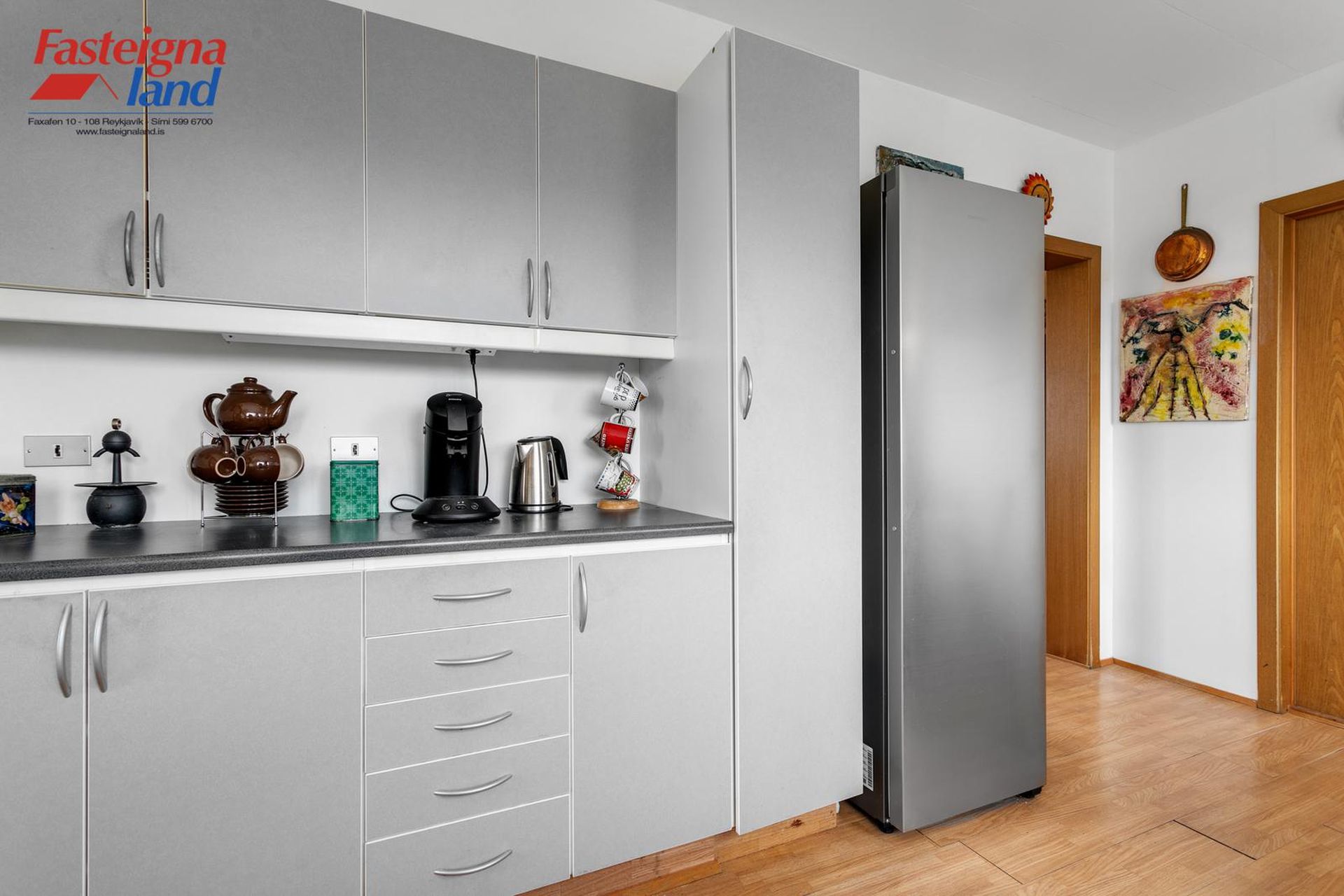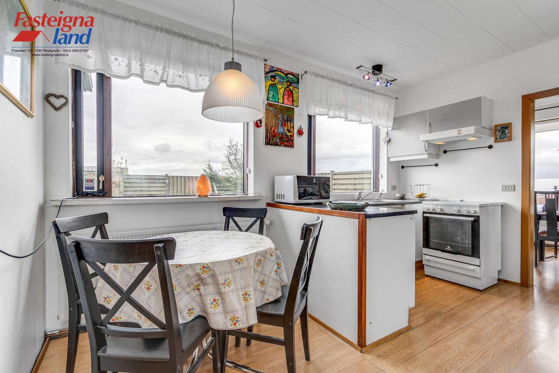 Flísar í anddyri og baðherbergi, harðparket í stofu, borðstofu og herbergjum, léttir innveggir.