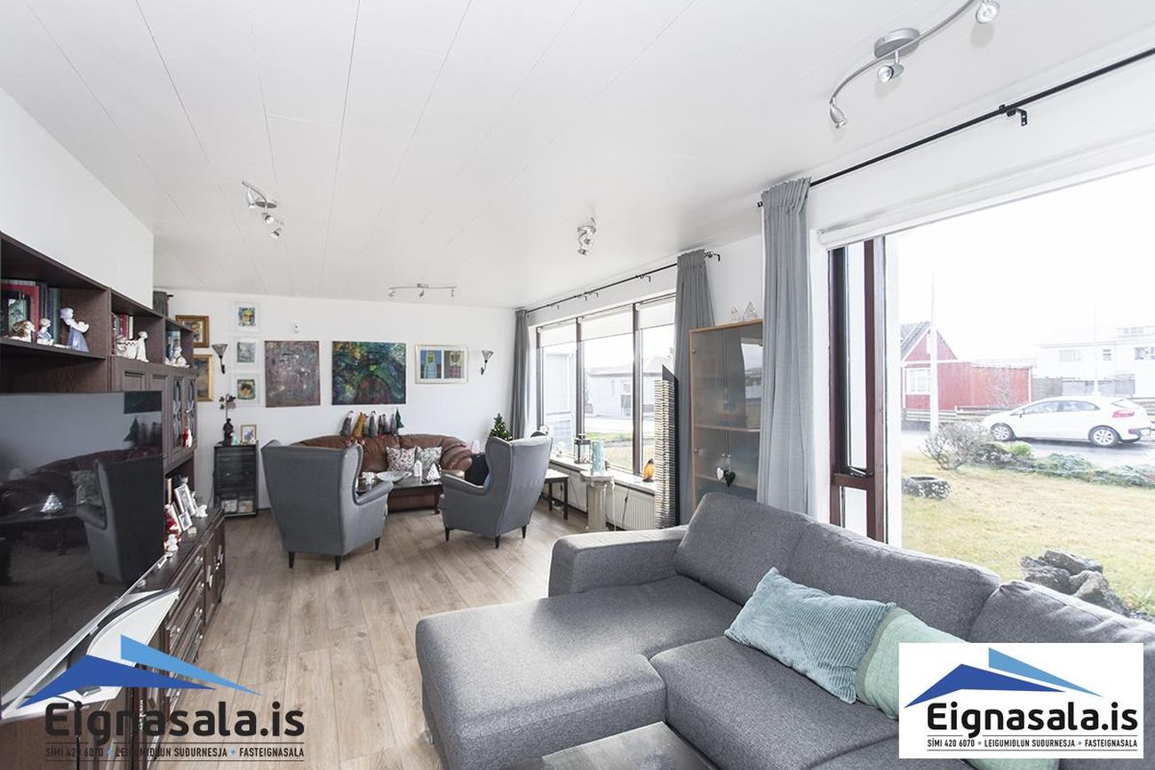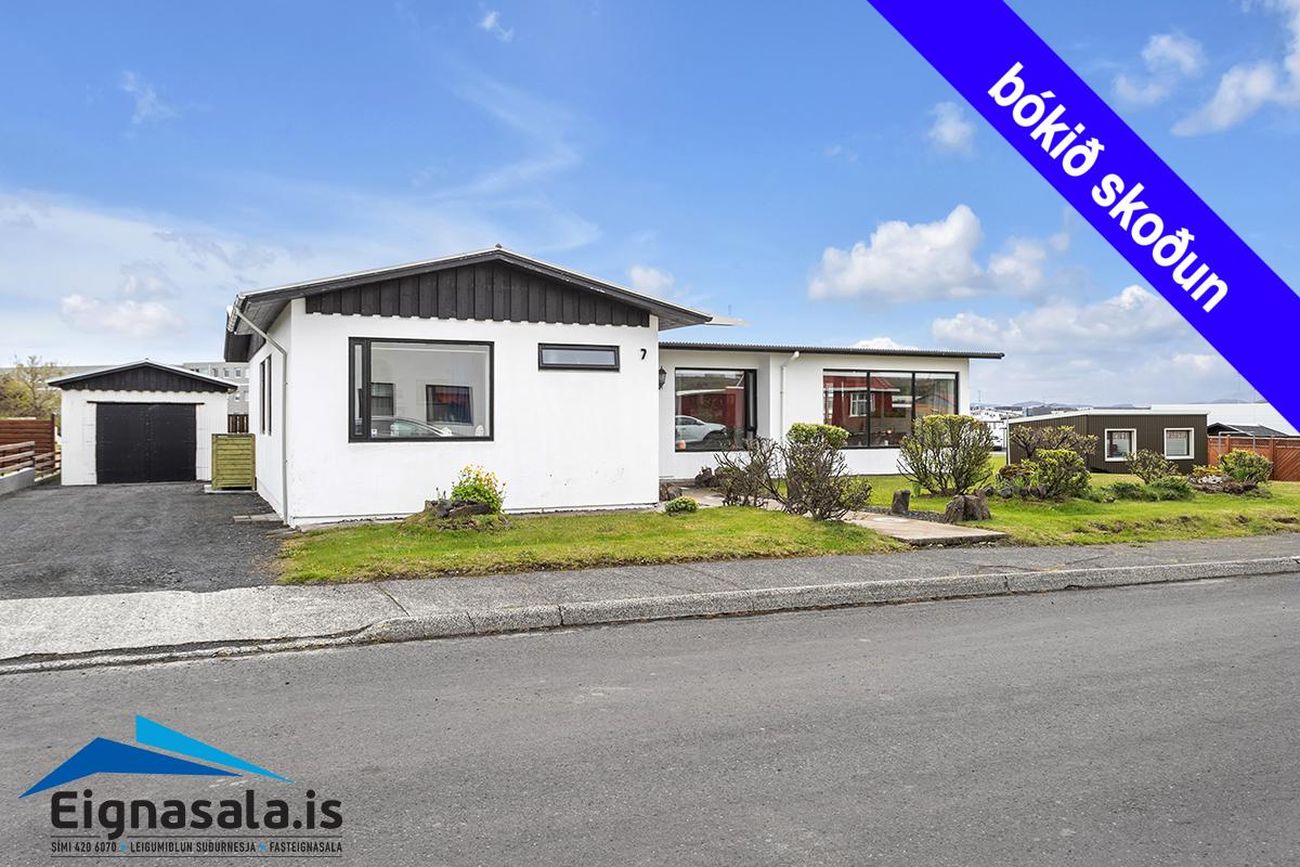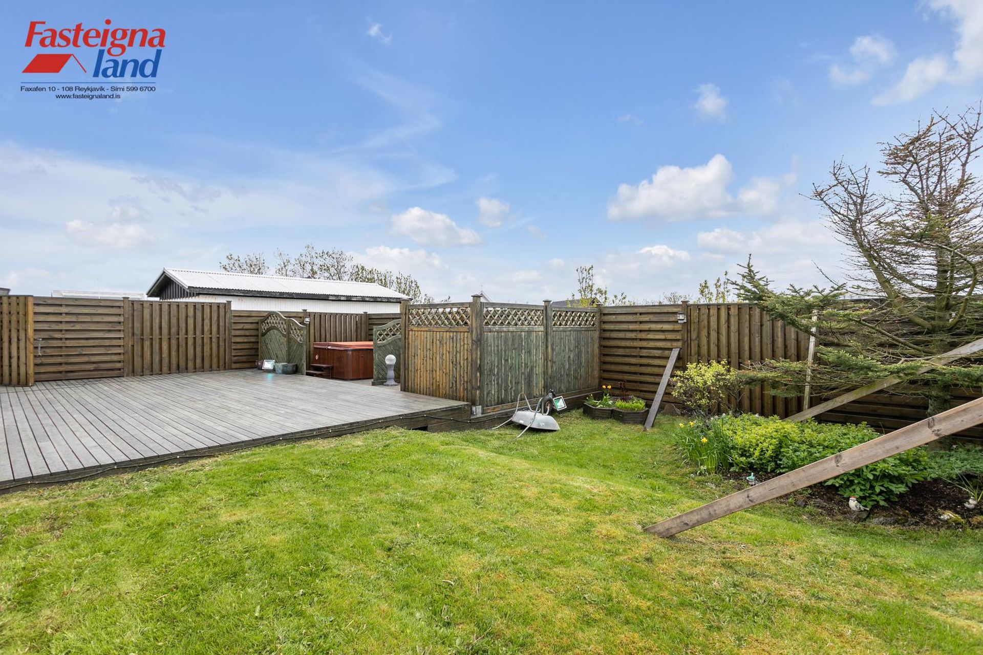 172,3m2 heildarstærð (145,0m2 íbúð, 27,3m2 bílskúr), 5 herbergi, sólpallur með heitum potti, nýlegt harðparket og járnþak.