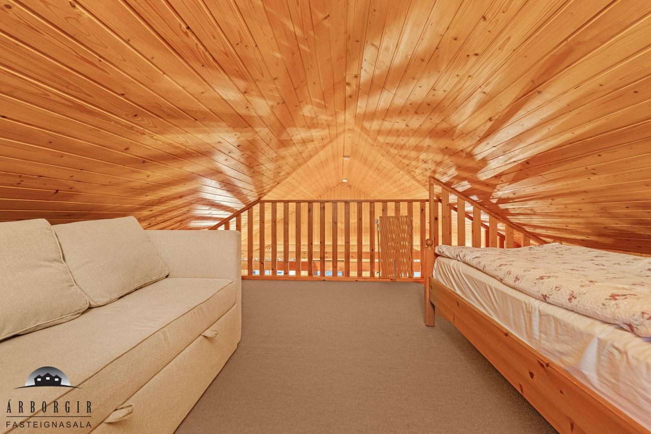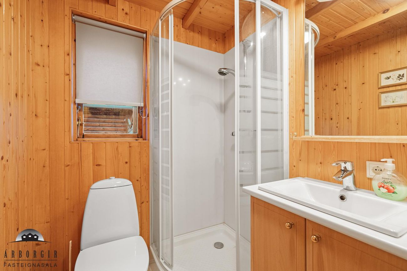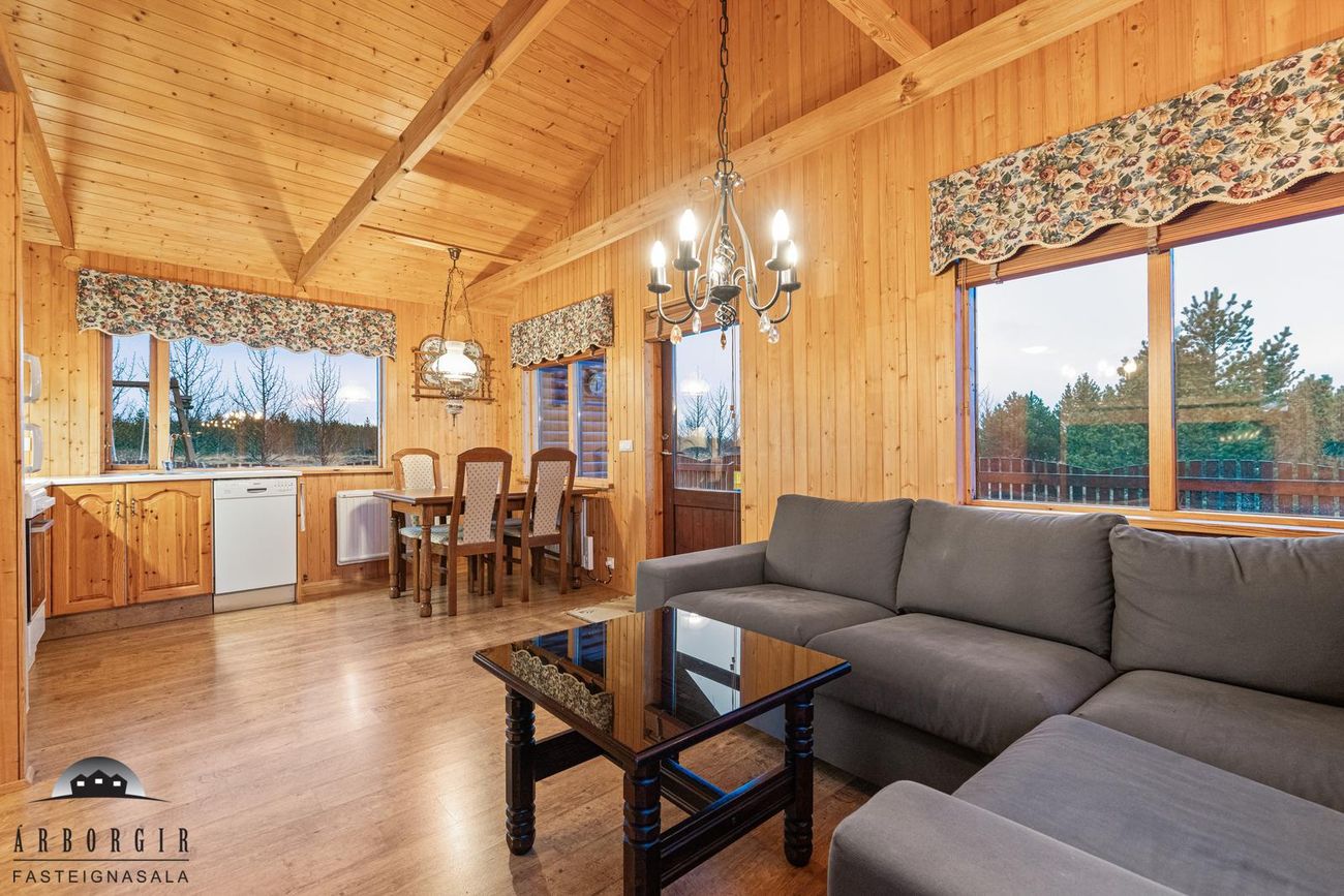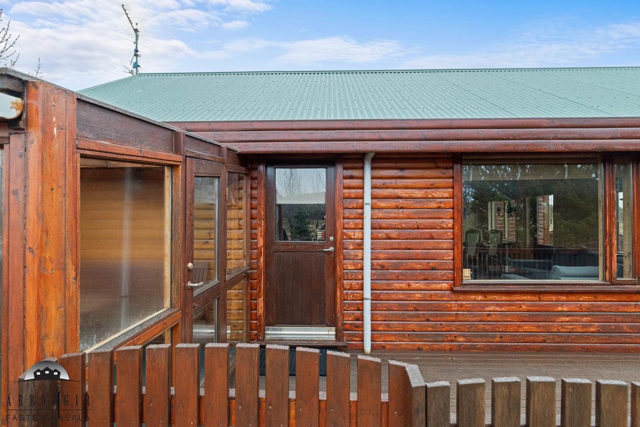 Eignin er skráð 60,4m2 að stærð en að auki er búið að byggja gestahús og þvottahús við eignina sem eru ekki inní heildarstærð eignarinnar.