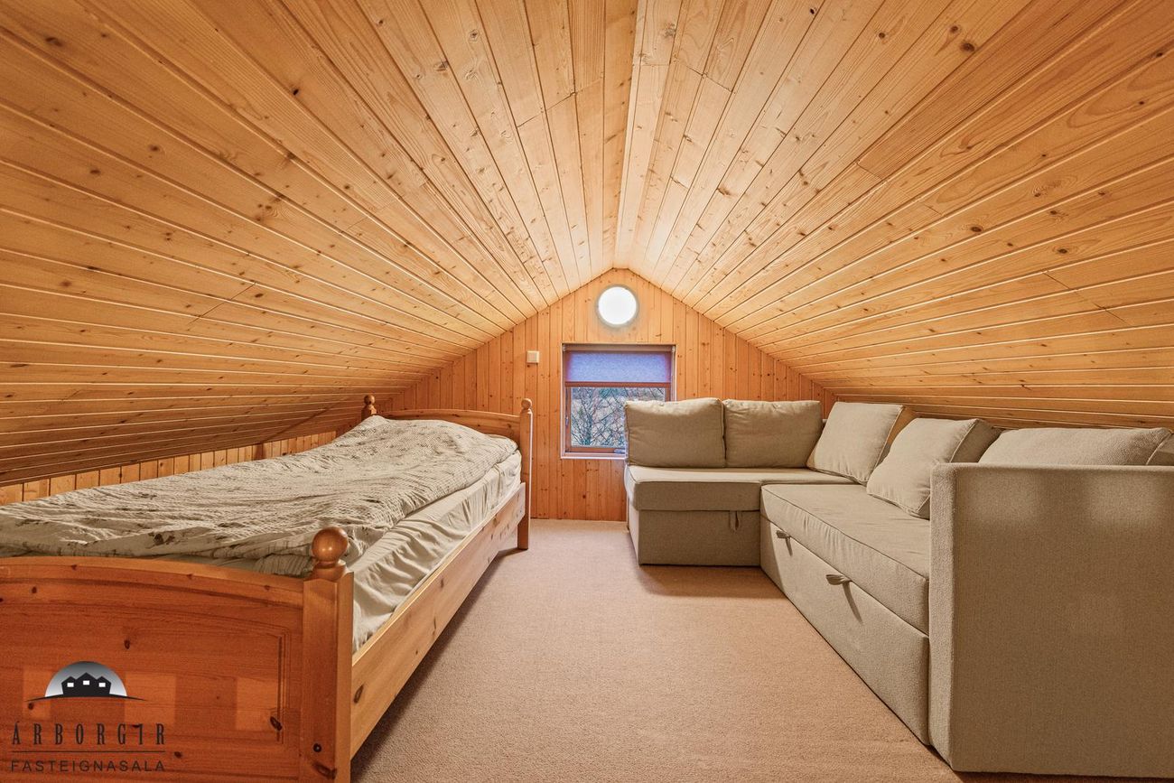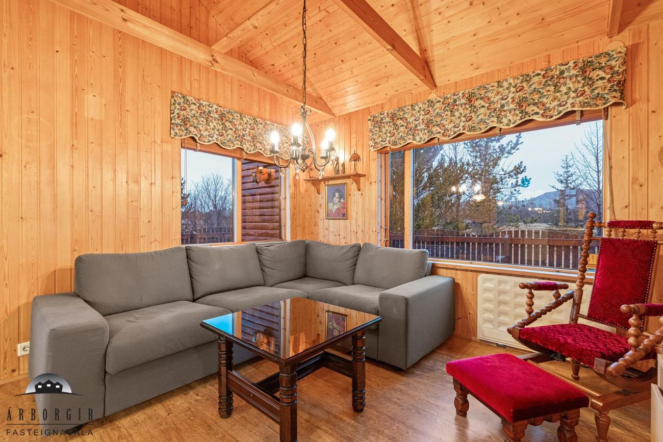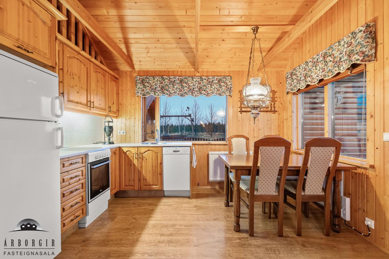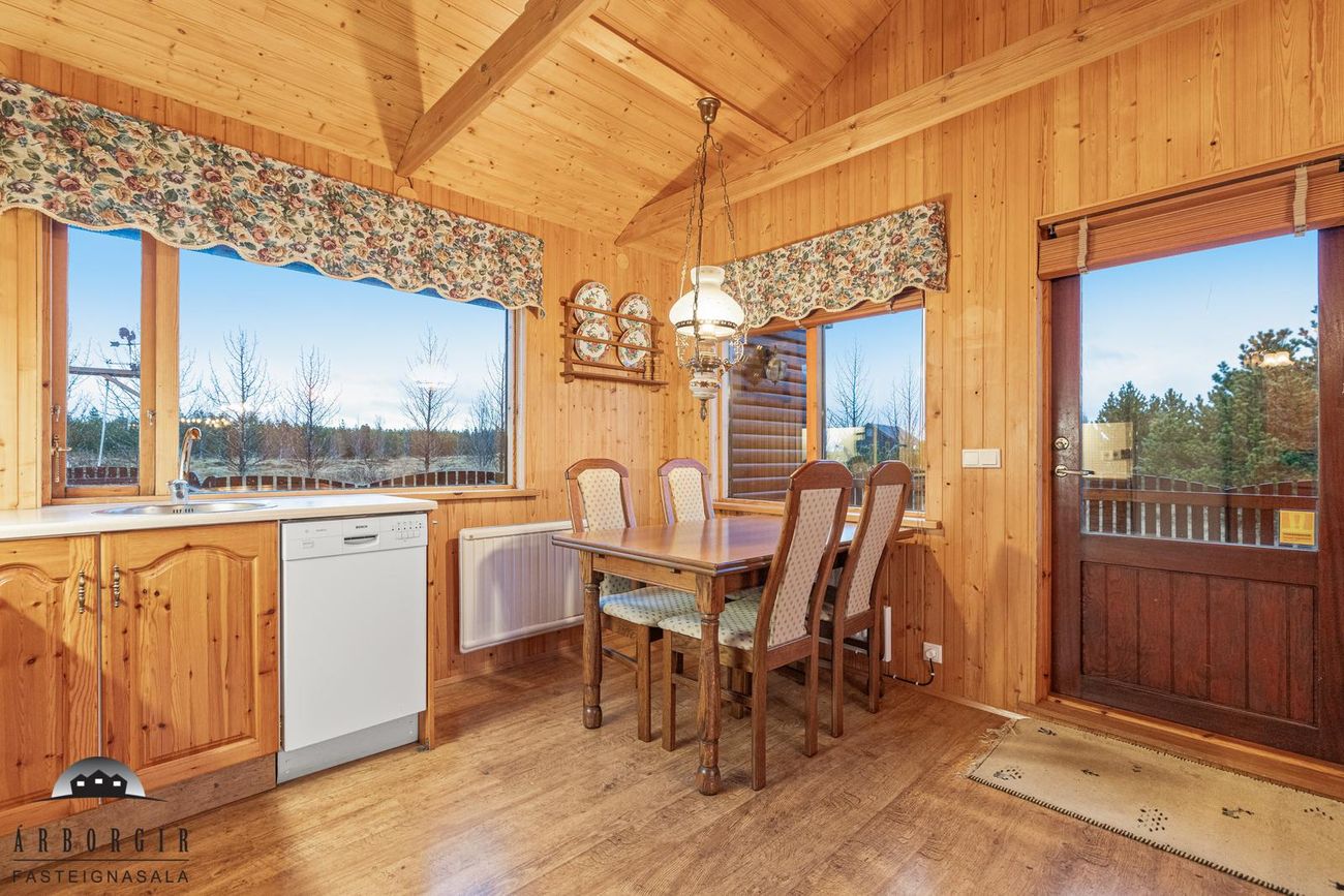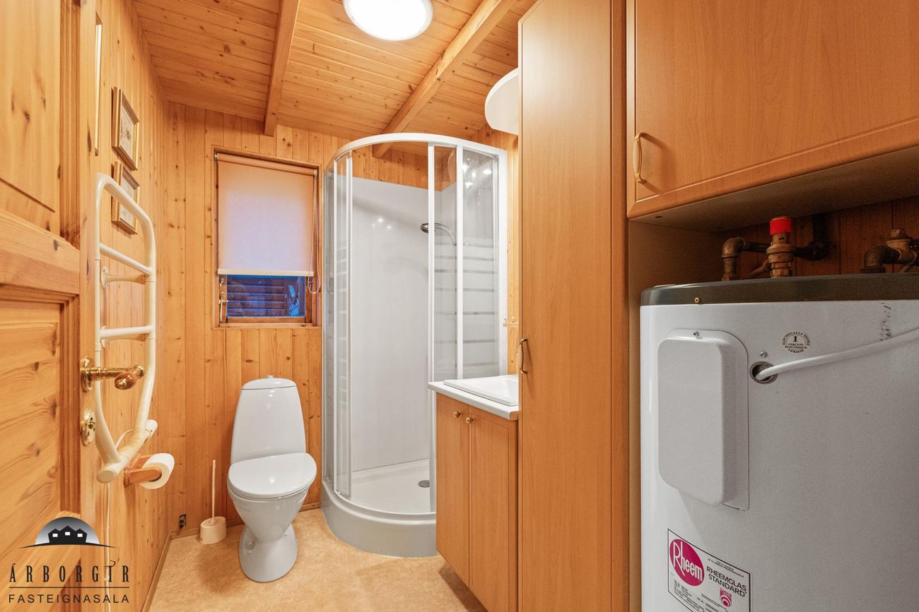Eignin er skráð 60,4m2 að stærð en að auki er búið að byggja gestahús og þvottahús við eignina sem eru ekki inní heildarstærð eignarinnar.