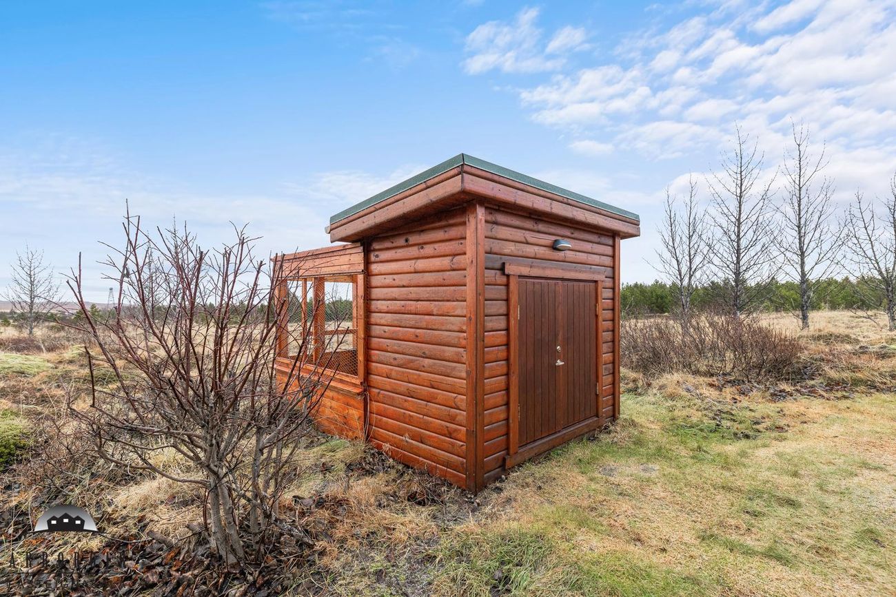 Geymsla er við hlið hússins.
