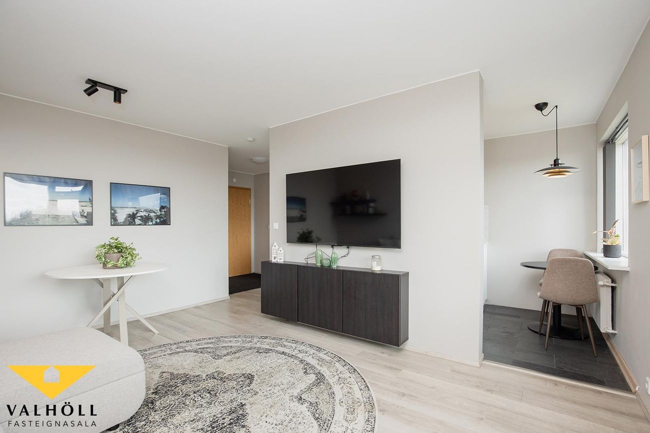 - 2025: Stigagangur málaður og teppalagður.Eignin skiptist í: Forstofu/hol, eldhús, stofu/borðstofu, svefnherbergi, baðherbergi og geymslu í sameign.Nánari lýsing: Gengið er inn um sameiginlegan inngang á framhlið hússins og inn á snyrtilegan stigagang með lyftu.