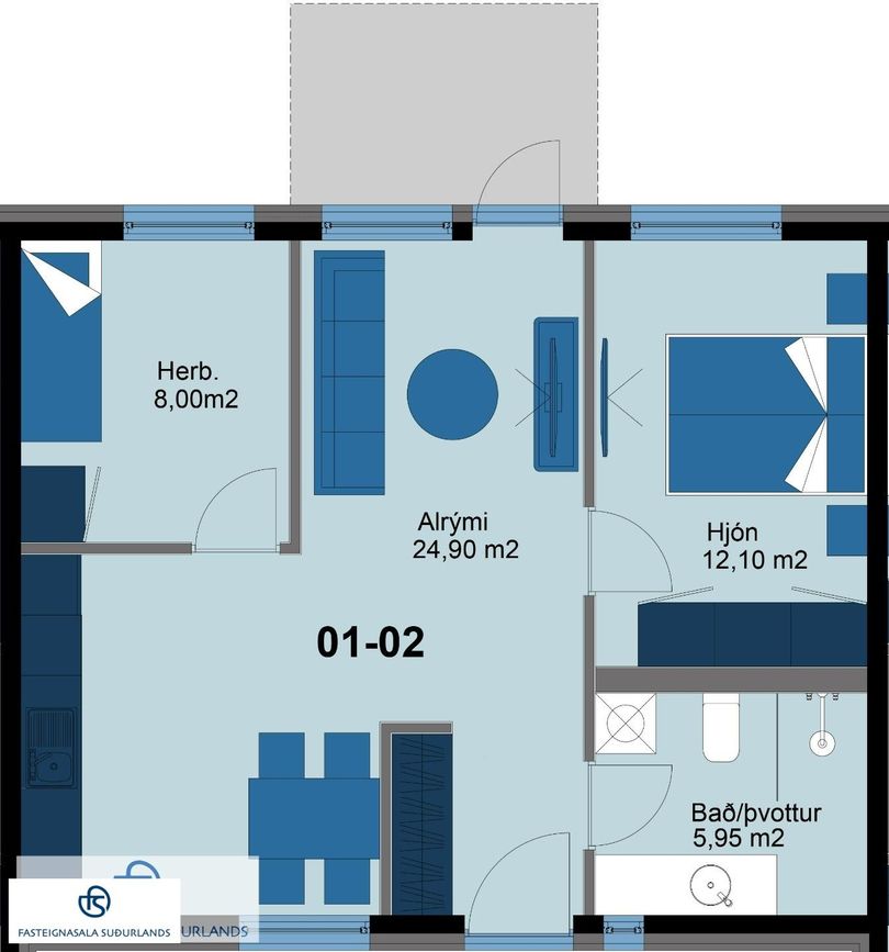 Fasteignasala Suðurlands (s 483 3424 ) kynnir í einkasölu: Klettamói 7, Íbúð 0102. Falleg 3ja herbergja , 63,8m2 íbúð á jarðhæð auk 3,9m2 geymslu. Íbúðin er með sérinngang. Íbúðin skilast með uppþvottavél og ísskáp og ljósum í öllum rýmum. Sérafnotaflötur er í hásuður! Skemmtilegur inngarður er á milli húsanna með leiktækjum ofl. Eignin er laus við kaupsamning. Stutt frá helstu þjónustu, skóla og íþróttasvæðum !** Hægt er að bóka skoðun og fá allar nánari upplýsingar í síma 483 3424 og á **Eignin skiptist svo:* Rúmgott anddyri með fataskáp.* 2 svefnherbergi með góðum fataskápum. * Stofu þaðan sem utangengt er á sérafnotasvæði í há-suður. Stofa og eldhús eru í opnu rými.* Eldhús með innréttingu frá HTH, helluborði, bakaraofn og háf frá AEG ásamt ísskáp og uppþvottavél.* Baðherbergi með flísum á gólfi og veggjum að hluta, upphengdu salerni, snyrtilegri innréttingu og sturtu.* Tengi fyrir þvottavél er á baðherbergi.* Nýtt harðparket er á öllum gólfum og flísar á baði. * Sér geymsla fylgir íbúð. Ekki er sameiginleg hjóla-og vagnageymsla í húsinu.* Lagnaleið að bílastæðum fyrir hleðslustöðvar. Húsið er staðsteypt fjölbýlishús á tveimur hæðum við miðbæ Þorlákshafnar. Í húsinu eru 6 íbúðir ásamt geymslum.Lögð er áhersla á að öll umgjörð hverfisins sé hlý og aðlaðandi með lágstemmdri byggð sem skiptist í nokkra kjarna sem tengjast saman með vistgötum.FASTEIGNASALA SUÐURLANDS HEFUR VEITT VANDAÐA OG GÓÐA ÞJÓNUSTU SÍÐAN 2003 !Fasteignasala Suðurlands, Unubakka 3b, Þorlákshöfn. Heimasíða fasteignasölunnar: https://www.eignin.is/Í Þorlákshöfn er þjónustustig mjög gott - hagnýtar upplýsingar:Við Þorlákshöfn er rómaður golfvöllur sem staðsettur er í jaðri byggðarinnar, rétt við sjávarsíðuna!Hér eru einstaklega góður grunn- og leikskóli þar sem tekin eru inn börn niður í 18 mánaða!Verslun og þjónusta:Hér má m.a. finna:VERSLUN KRÓNUNNARApótekarann.Bakaríið Café Sól (facebook: café sól)Hárgreiðslustofuna Kompuna (facebook: kompan klippistofa)Rakarstofu Kjartans (facebook: kjartan rakari)Vínbúðina.Veitingastaðina:Thai Sakhon veitingahús (facebook: Thai Sakhon Restaurant)Caffe Bristól Bauhaus (facebook: Caffe Bristól)Svarta Sauðinn (facebook: svarti sauðurinn) og Skálann, sem jafnframt er sölustaður Orkunnar. Einnig er Olís hér með ÓB-stöð.Hér er mjög góð heilsugæsla.Hér er tannlæknir.Í Ráðhúsi bæjarins eru, auk skrifstofu sveitarfélagsins: Mjög gott bókasafn (facebook: Bæjarbókasafn Ölfuss)Landsbankinn Tómstundir og afþreying: Íþróttaiðkun í Þorlákshöfn er gríðarlega öflug og þá helst meðal barna og unglinga. Frá fjögurra ára aldri er í boði að iðka fótbolta (aegirfc.is), fimleika (facebook: fimleikadeild Þórs), körfubolta (facebook: Þór Þorlákshöfn) og frjálsar, ásamt því að iðkaður er badminton, motorcrossá braut rétt utan við bæinn, hestamennska (facebook: hestamannafélagið háfeti) með fallegum reiðleiðum allt um kring og golf á rómuðum golfvelli. Hér er svo einnig Litli íþróttaskólinn á vegum fimleikadeildarinnar fyrir börn frá eins árs aldri. Í íþróttamiðstöðinni er mjög góð líkamsræktar-aðstaða þar sem hægt er að komast í einka- þjálfun, spinning, hóptíma, líkamsrækt fyrir eldri borgara o.m.fl. Þar er að finna góða sundaðstöðumeð útilaug, heitum pottum, vaðlaug og skemmtilegri innilaug fyrir fjölskyldufólk.Jógastúdíó (Jógahornið).Öflug sjúkraþjálfun.Afþreying er hér af ýmsum toga:hér má meðal annars finna: Fallegt útivistarsvæði við vitann með útsýnispalli og göngustíg meðfram bjarginu í einstakri náttúrufegurð. Heilsustíg má finna í bænum þar sem líkamsræktartæki eru við göngu/hlaupastíga.Hér er æðisleg strönd sem mikið er mikið notuð til útivistar og þar má oft sjá menn á brimbrettum, en slíkt er gott að stunda hér.Í sjónum við útsýnispallinn er einn vinsælasta staður til brimbrettaiðkunar á Íslandi.Blackbeach tours (www.blackbeachtours.is) er afþreyingar fyrirtæki sem býður upp á fjórhjólaferðir bæði í fjöruna og um hraunið, RIB bátaferðir meðfram bjarginu og adrenalínferðir, snekkjuleigu og sjóstöng og jógaferðir úti í náttúrunni. Einnig er hér:Öflugt leikfélag (facebook: leikfélag ölfuss).Hinir ýmsu kórar (facebook: Tónar og Trix, Kyrjukórinn, ofl.)Einn stærsti Kiwanisklúbbur landsins (facebook: Kiwanisklúbburinn Ölver)O.sfr. o.s.frv. o.s.frv. :)** Allar helstu fréttir úr sveitarfélaginu má finna á: www.hafnarfrettir.is