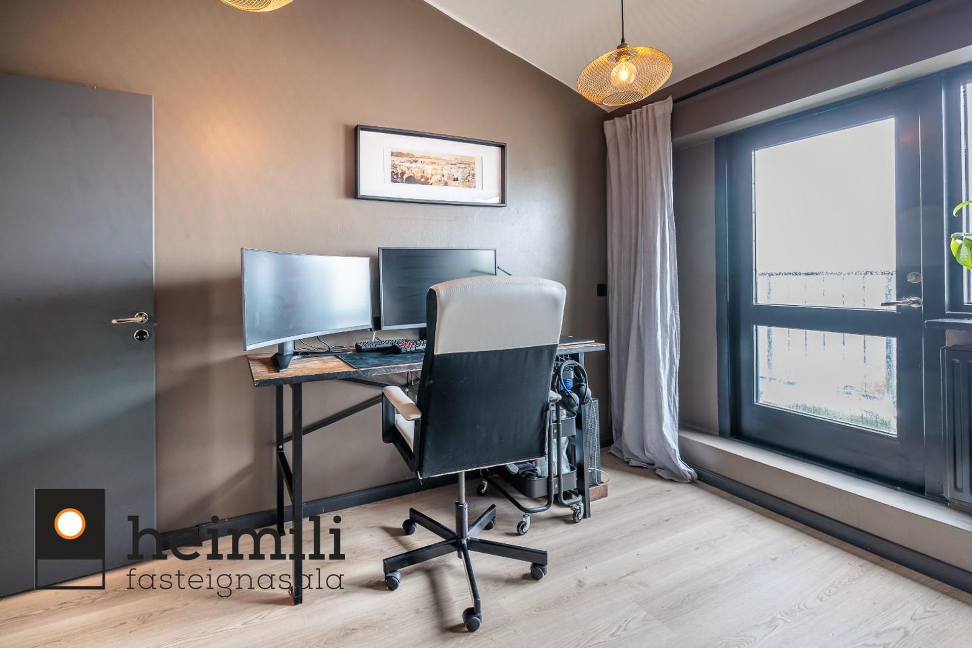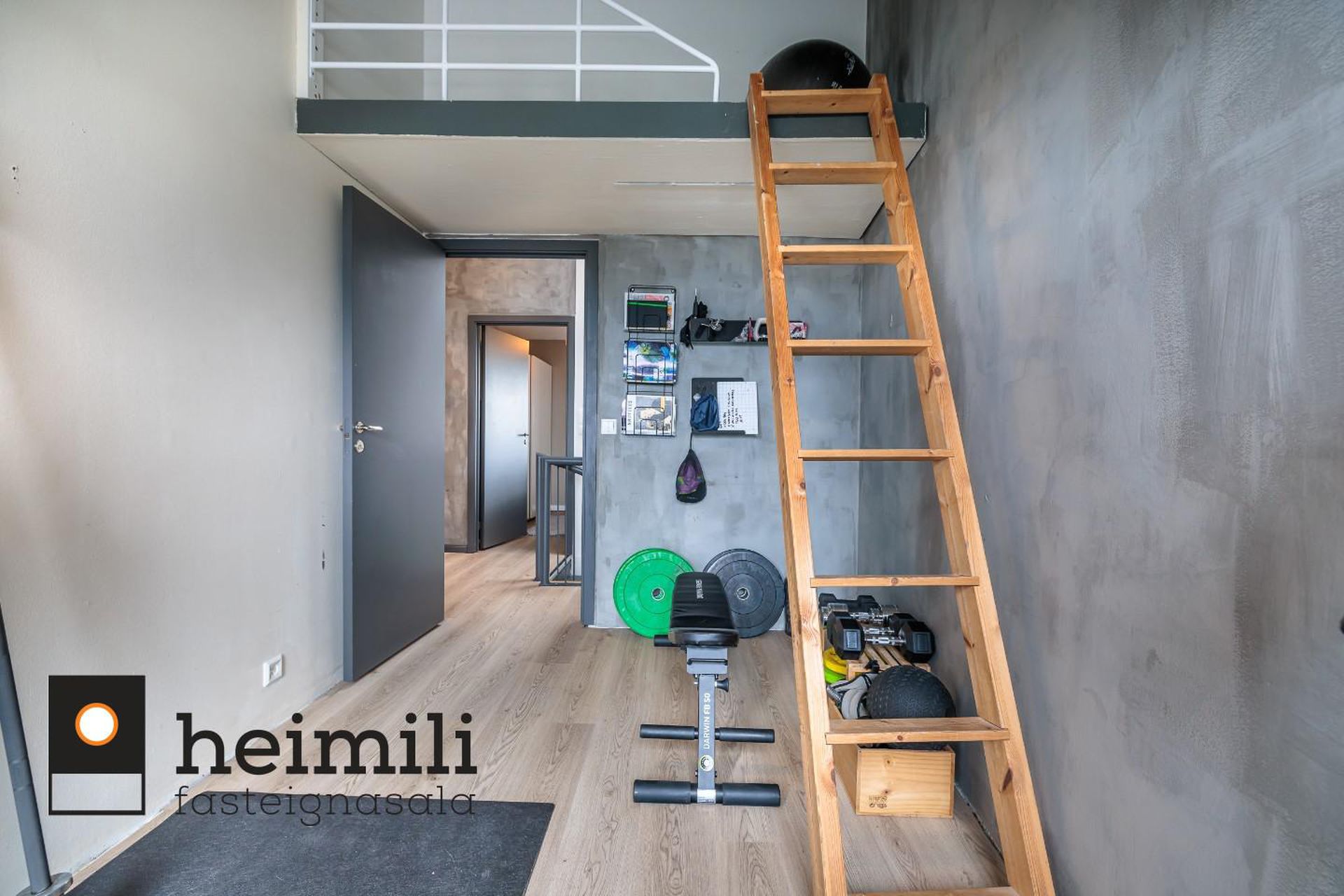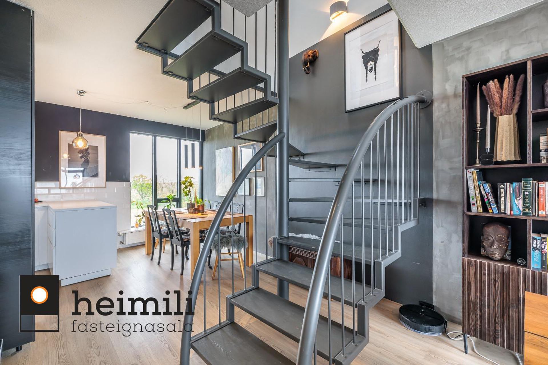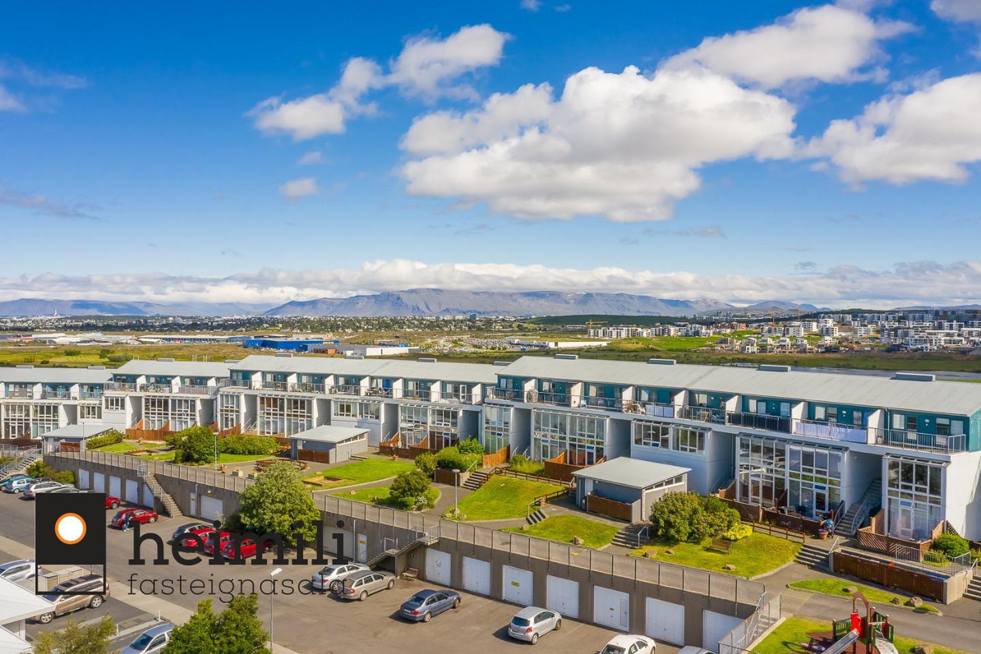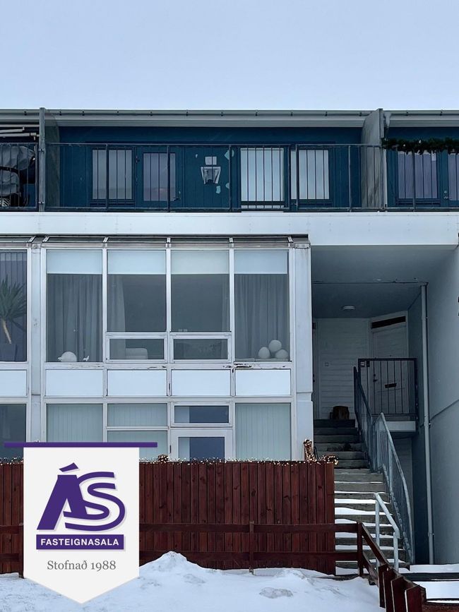 106,1 fm íbúð á tveimur hæðum með 4 herbergjum, sér stæði í lokaðri bílageymslu og sameiginlegri geymslu.