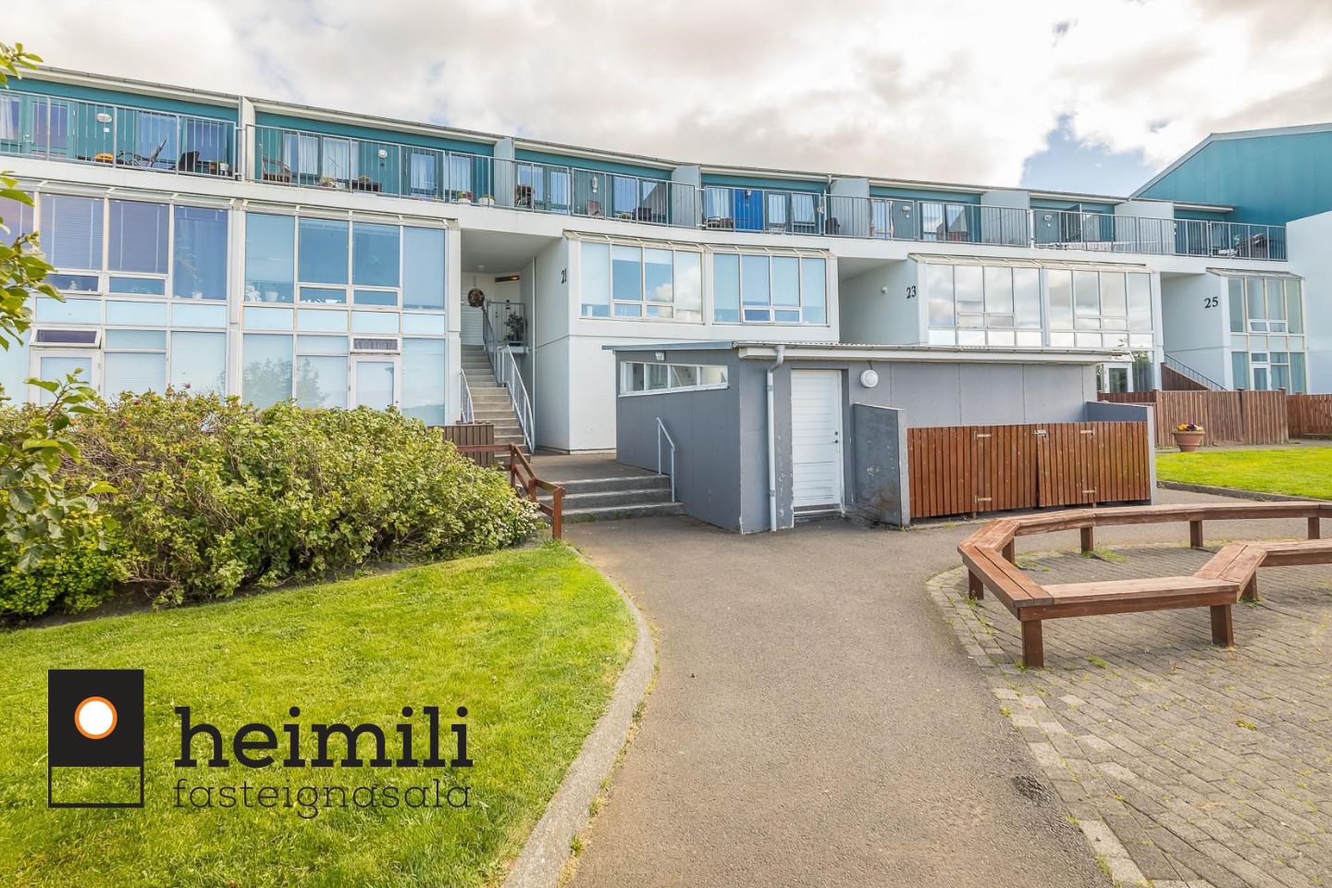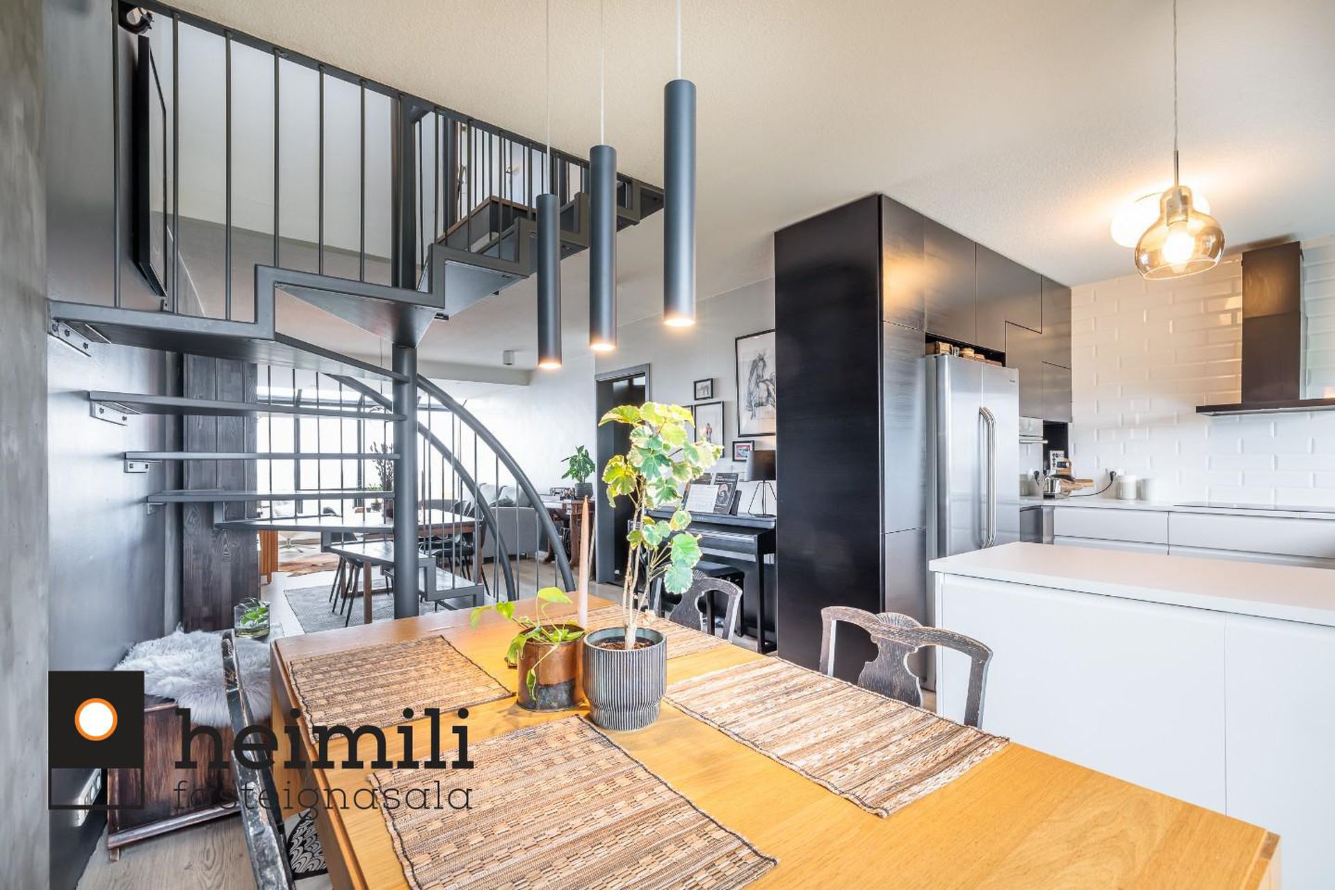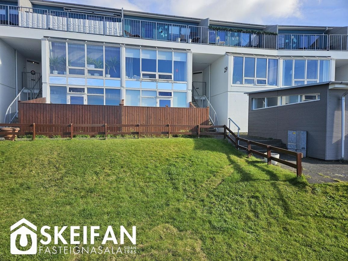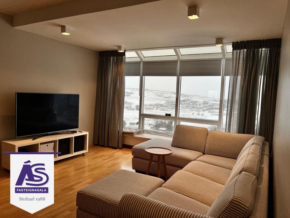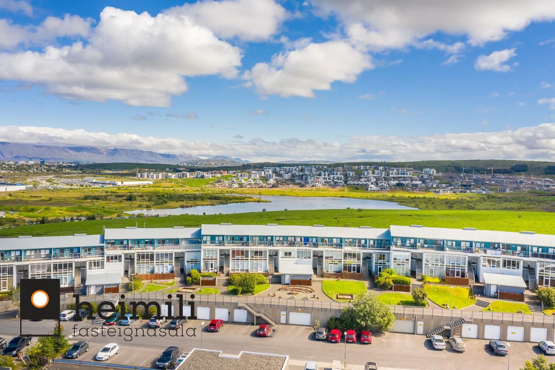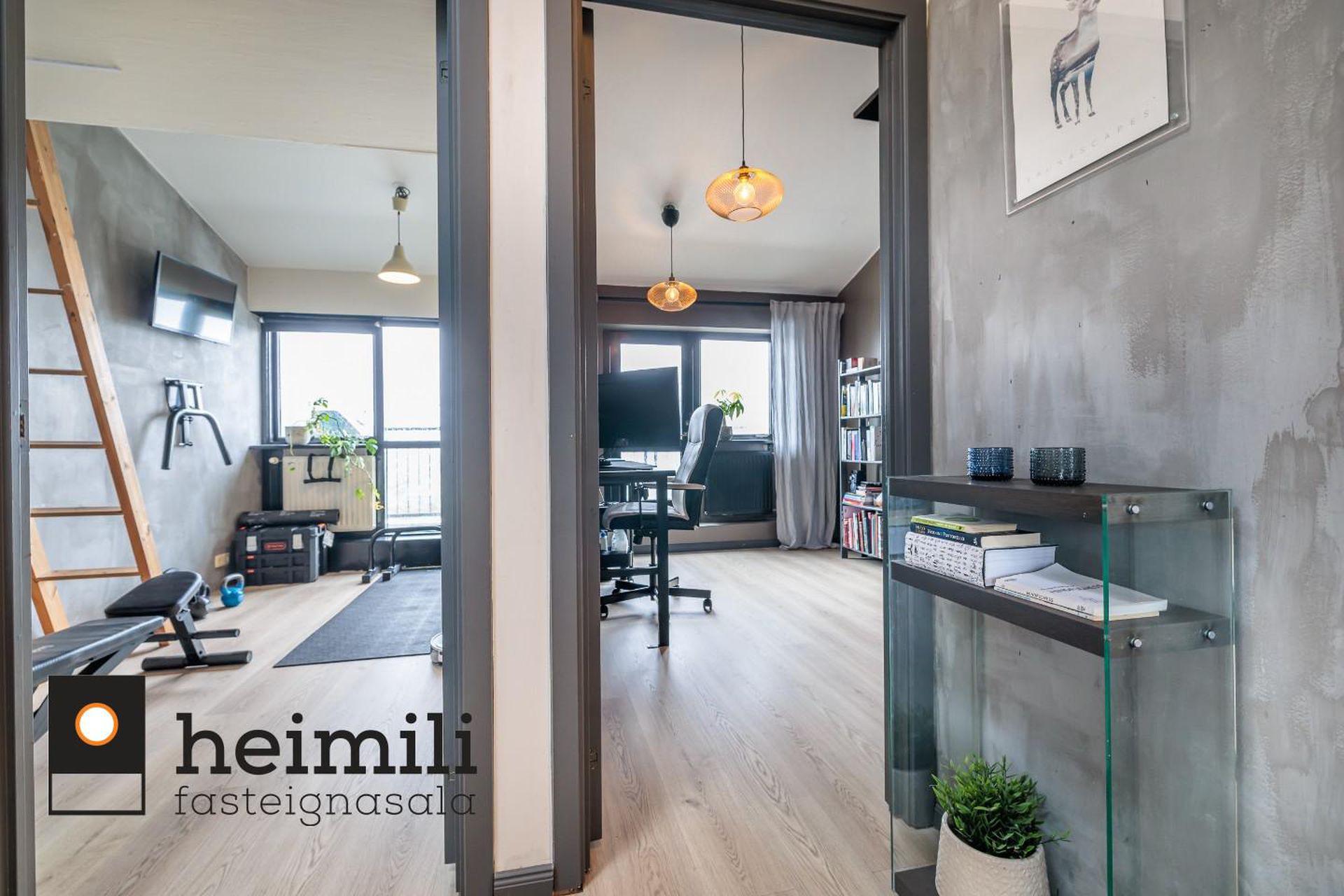 106,1 fm íbúð á tveimur hæðum með 4 herbergjum, sér stæði í lokaðri bílageymslu og sameiginlegri geymslu.