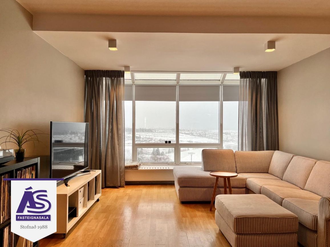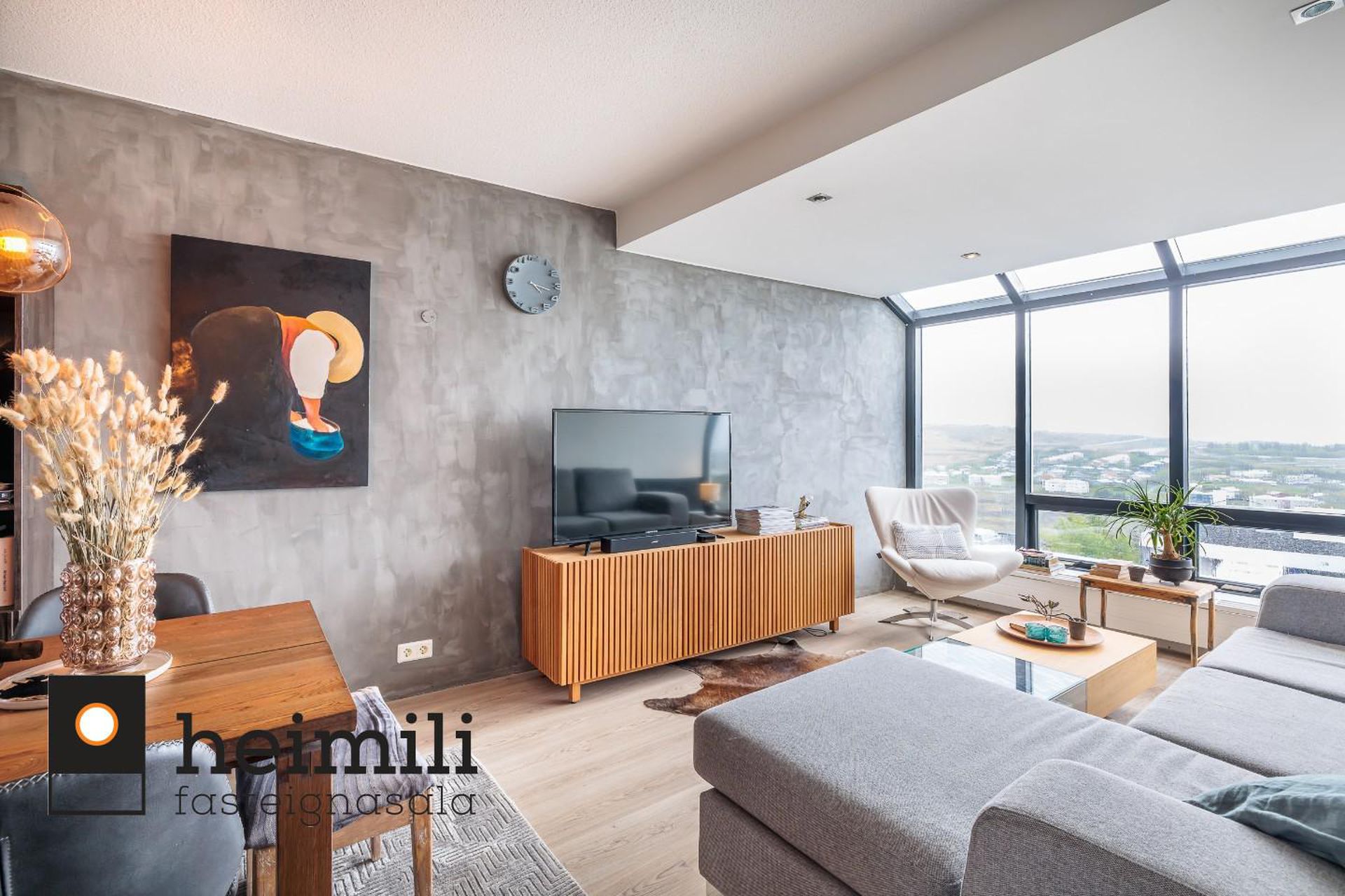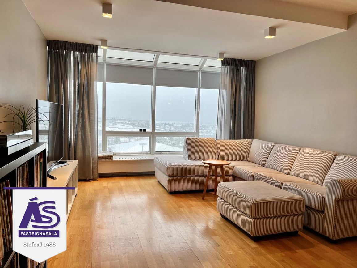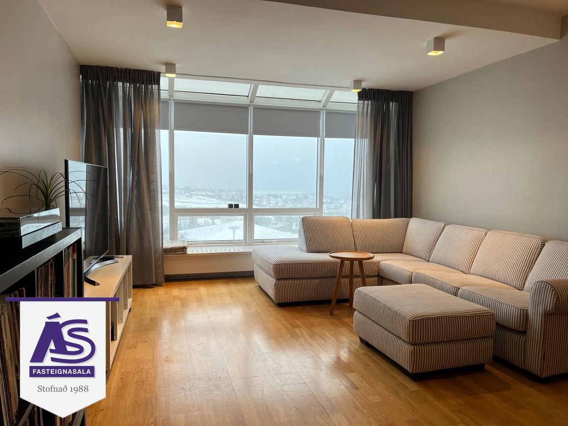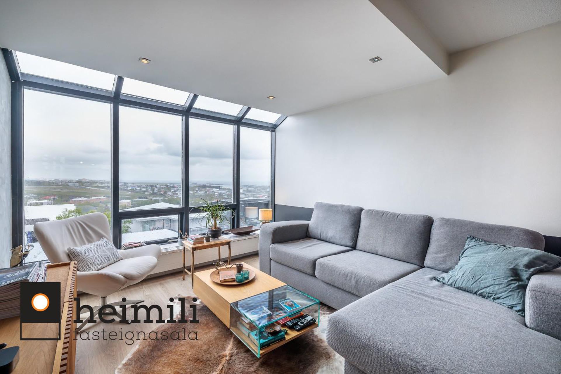 106,1 fm íbúð á tveimur hæðum með 4 herbergjum, sér stæði í lokaðri bílageymslu og sameiginlegri geymslu.