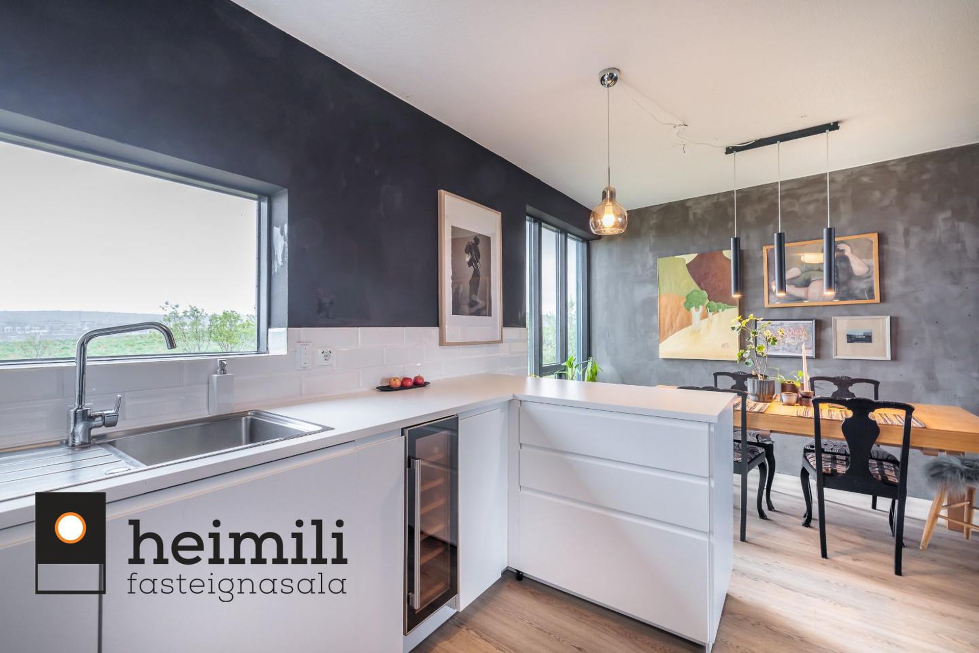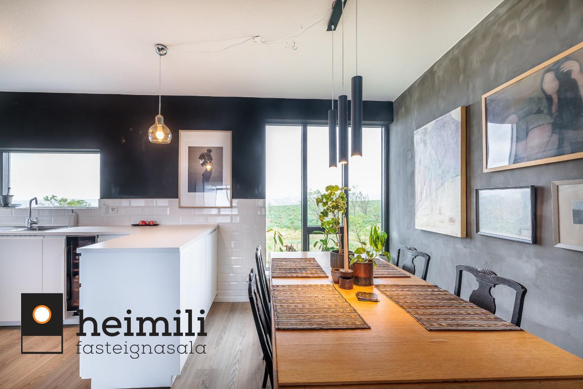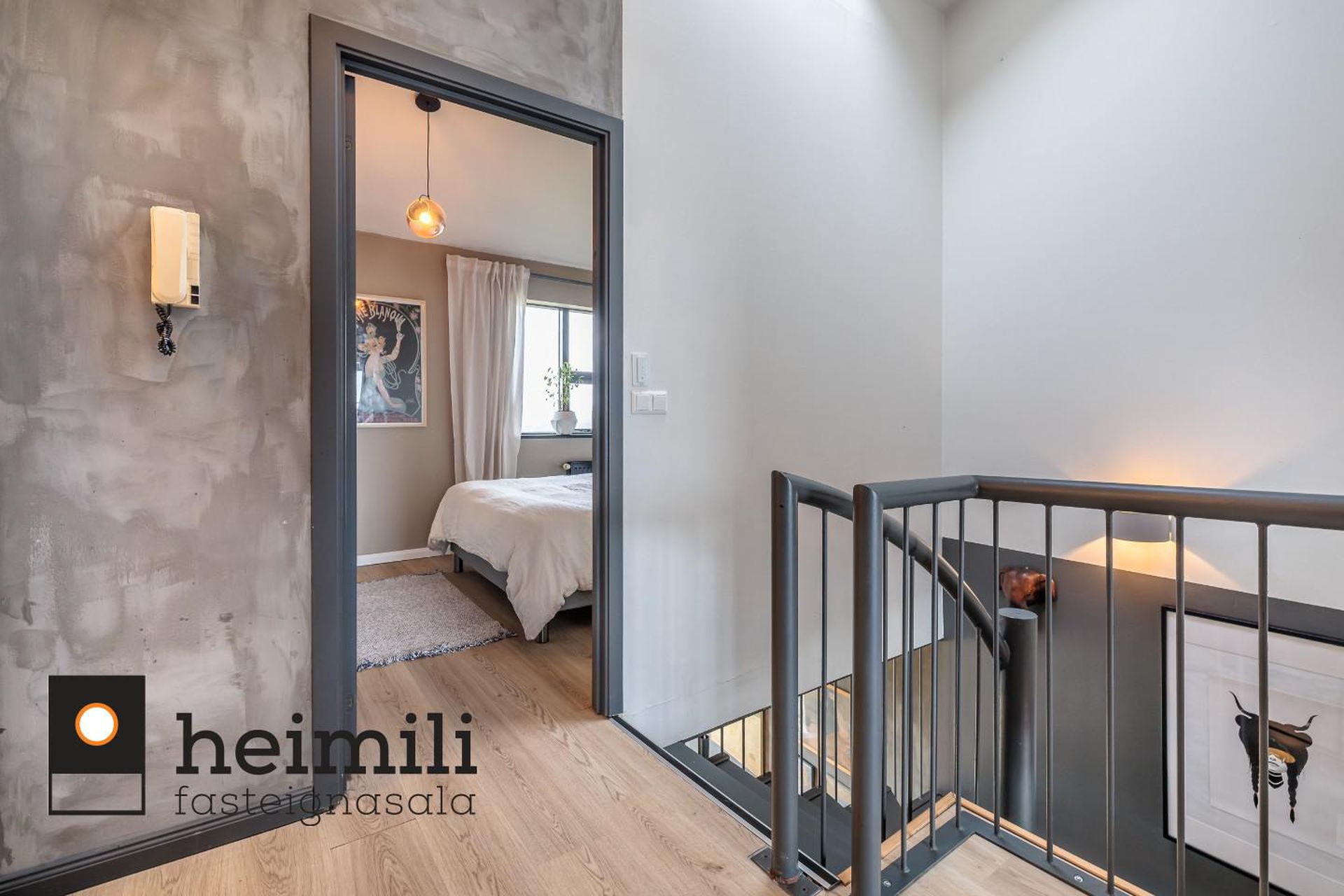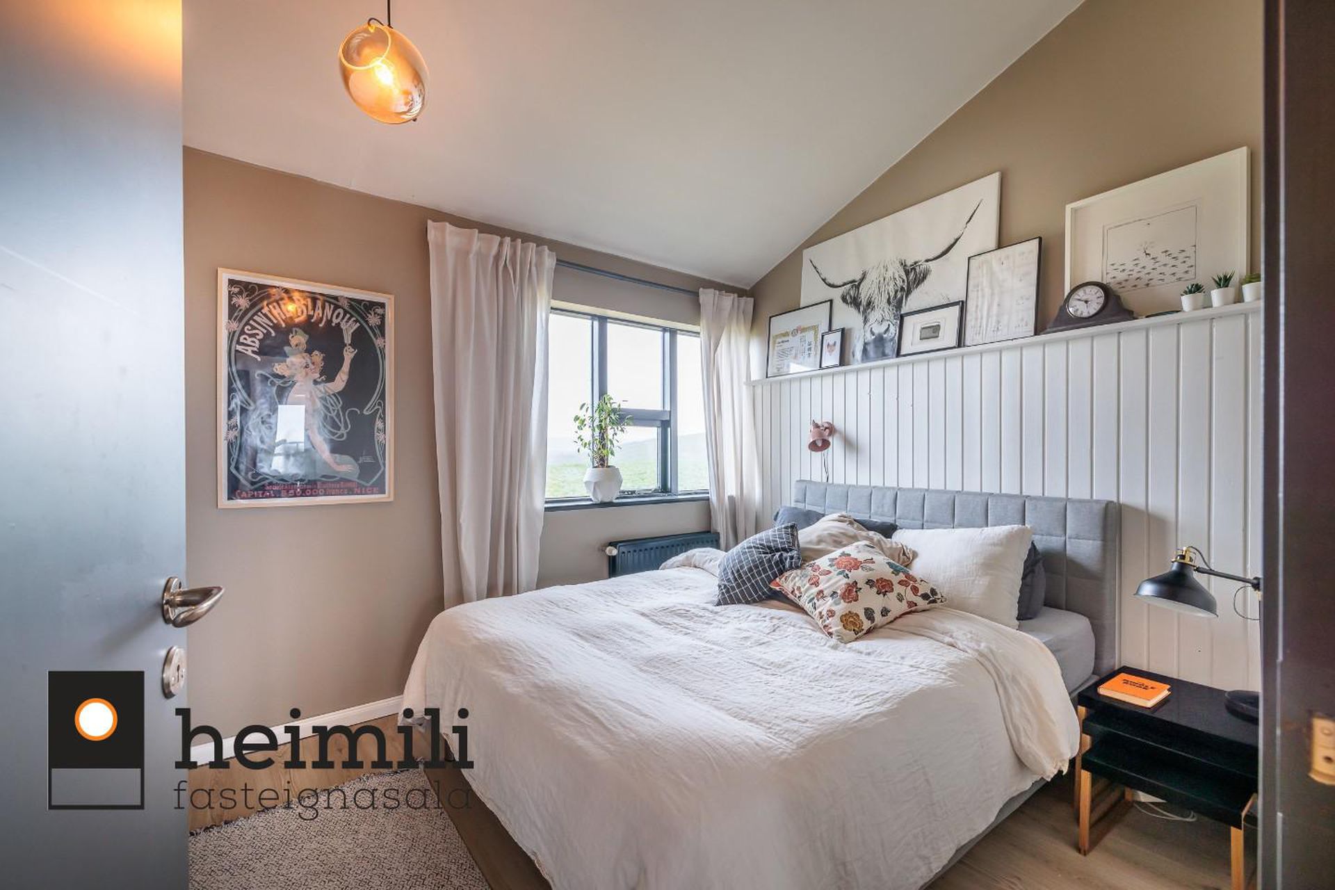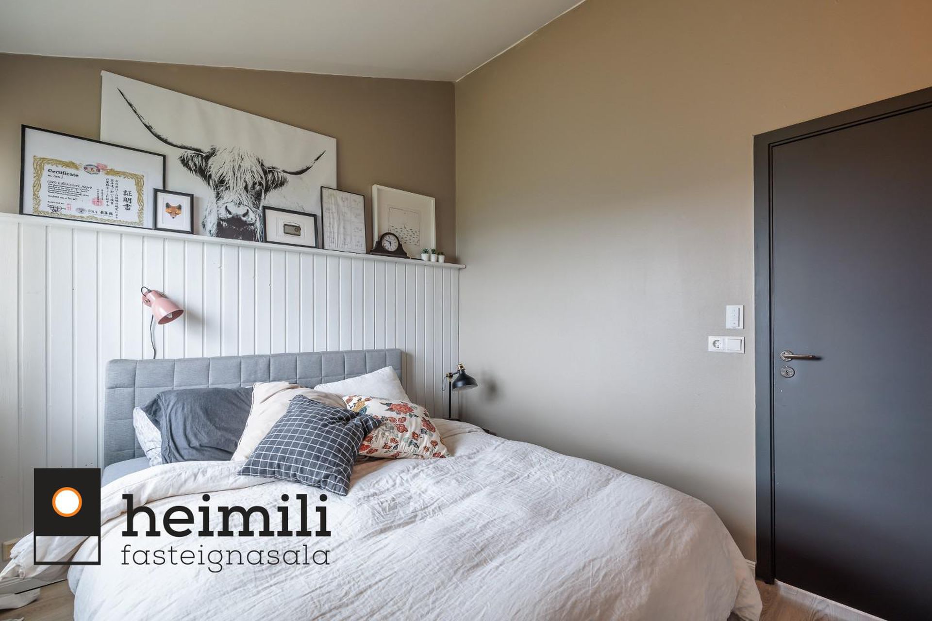 Tveir hæðir með sérinngangi. Neðri hæð með forstofu, geymslu sem hægt er að breyta í gestasnyrtingu, eldhús og stofu. Efri hæð með hol, baðherbergi, þrjú svefnherbergi og suðvestur svalir.