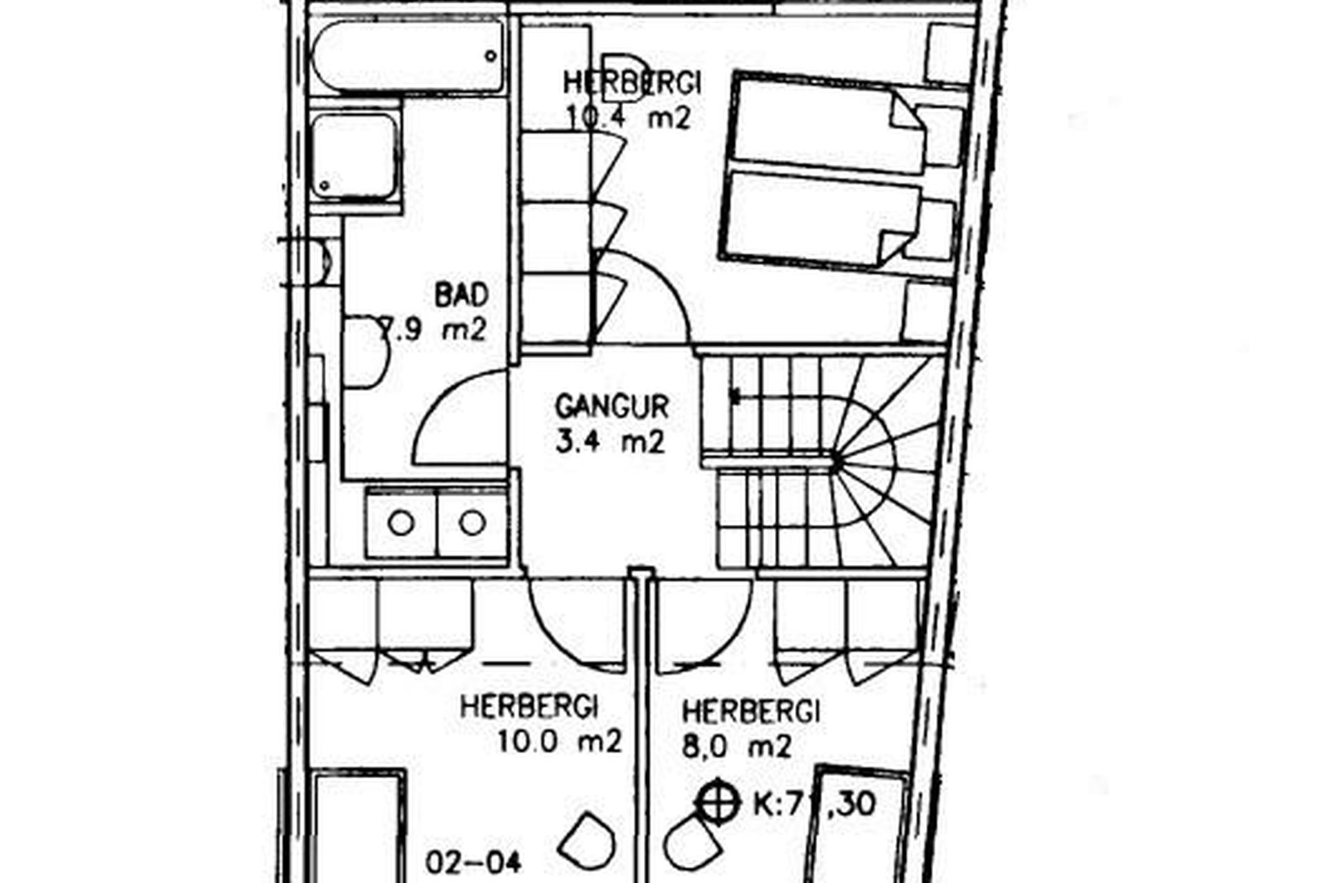 Þrjú svefnherbergi með parketgólf á efri hæð.