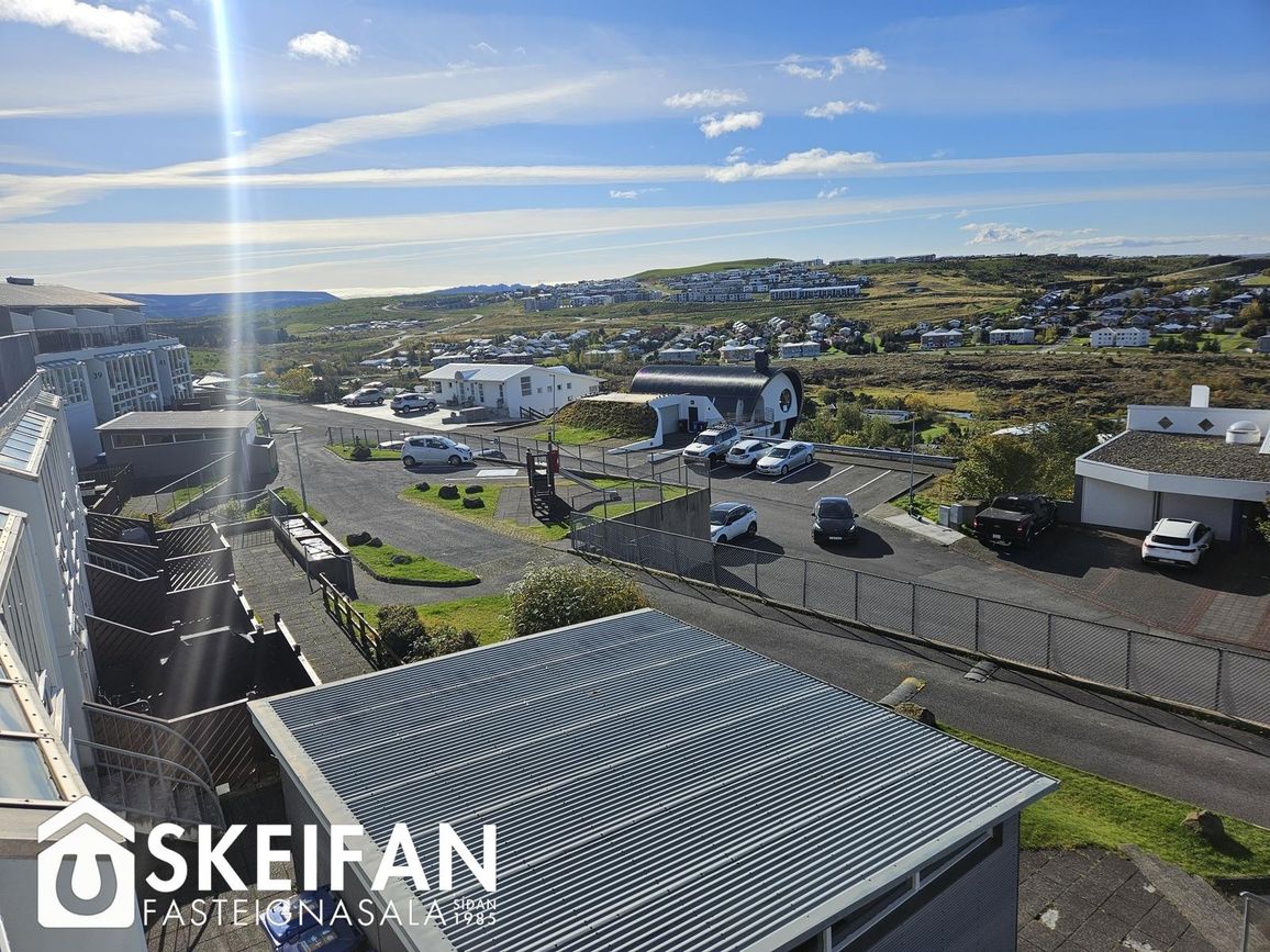 Suðvestur svalir úr hjónaherbergi á efri hæð.