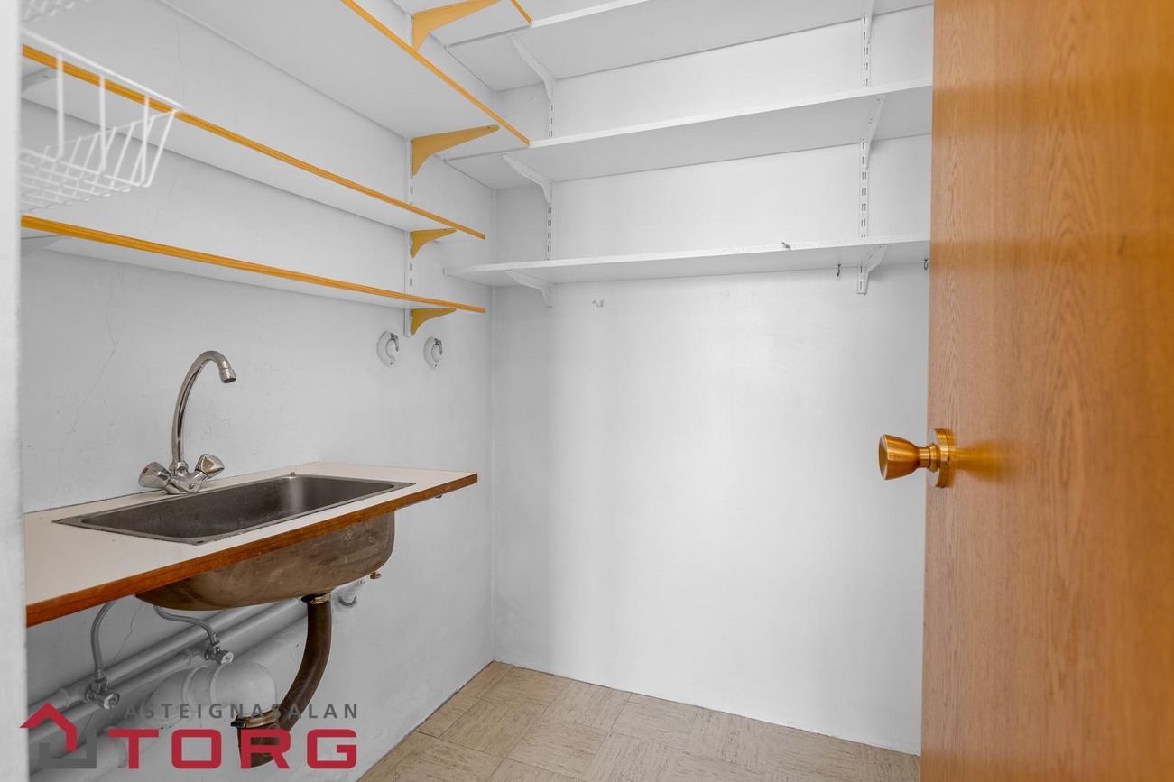Sérgeymsla: Sérgeymsla er í kjallara með glugga, 11,7 fm að stærð, rúmgóð með hillum.