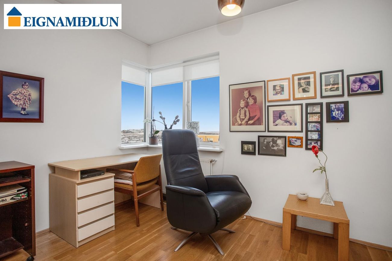 Stofa er rúmgóð, frá stofu er gengið út á rúmgóðar suðvestur svalir með glæsilegu útsýni yfir borgina.
