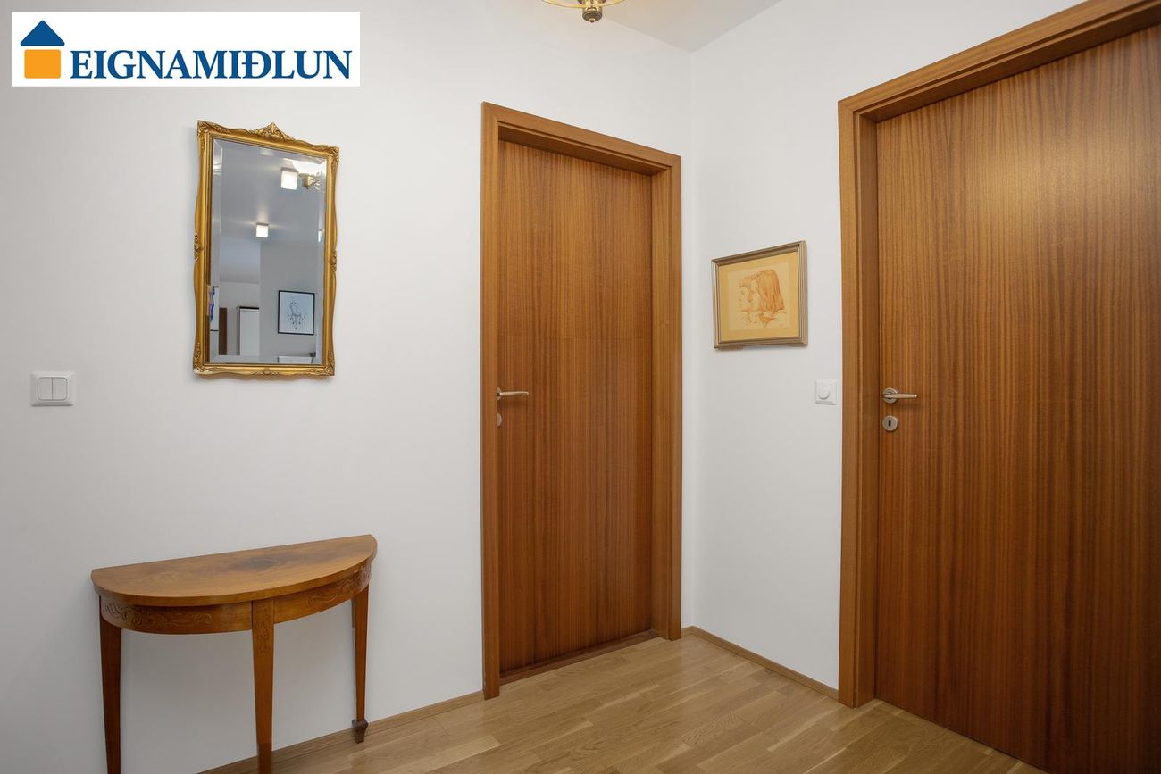 **Bókið einkaskoðun hjá Brynjari í síma 896-1168 eða brynjar@eignamidlun.is**Vel skipulögð þriggja herbergja 106,8m² íbúð á annari hæð með glæsilegu útsýni yfir borgina og til fjalla. Um er að ræða eign með einstöku útsýni og mikla nánd við náttúruna. Í göngufæri eru leik- og grunnskóli sem og náttúruperlur eins og Úlfarsfell og Reynisvatn. Golfvöllur GR við Grafarholtið einnig í göngufæri og örstutt er í flesta þjónustu. Aðeins þrjár íbúðir í stigahúsinu, sameign er snyrtileg og teppalögð. Smellið hér til að fá söluyfirlit sent straxSamkvæmt skráningu HMS er birt stærð eignarinnar 106,8m², þar af er geymsla skráð 7m².