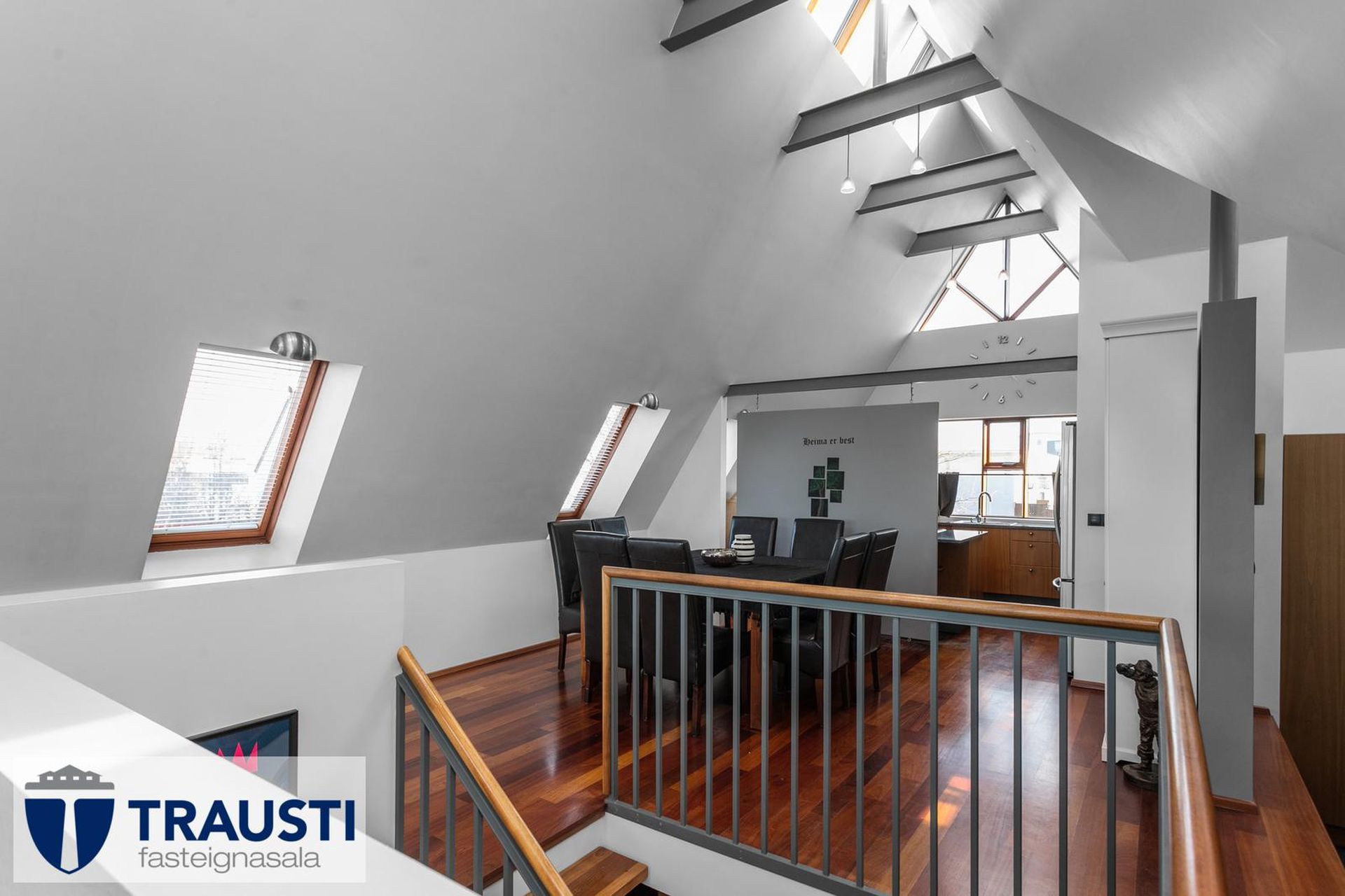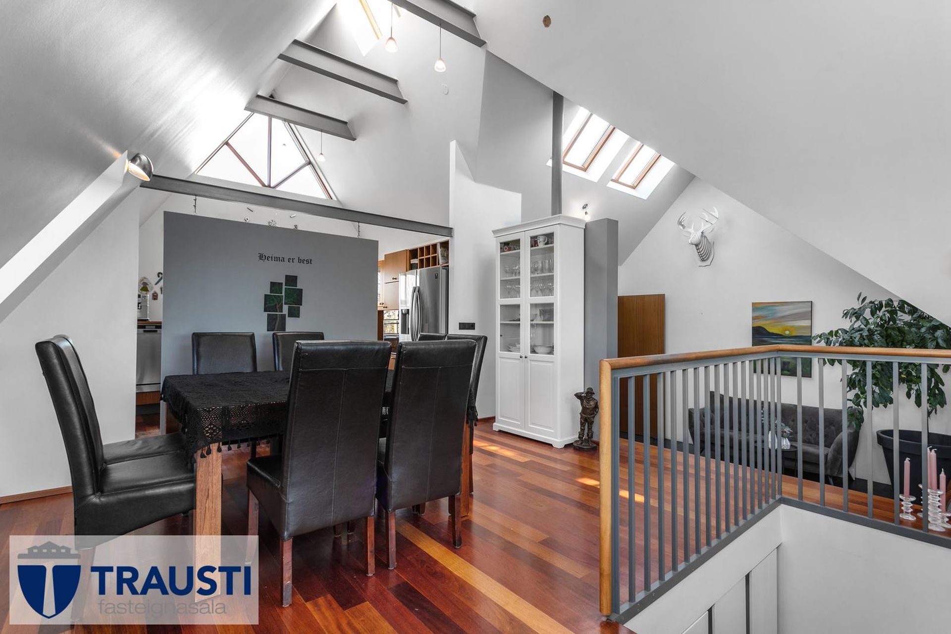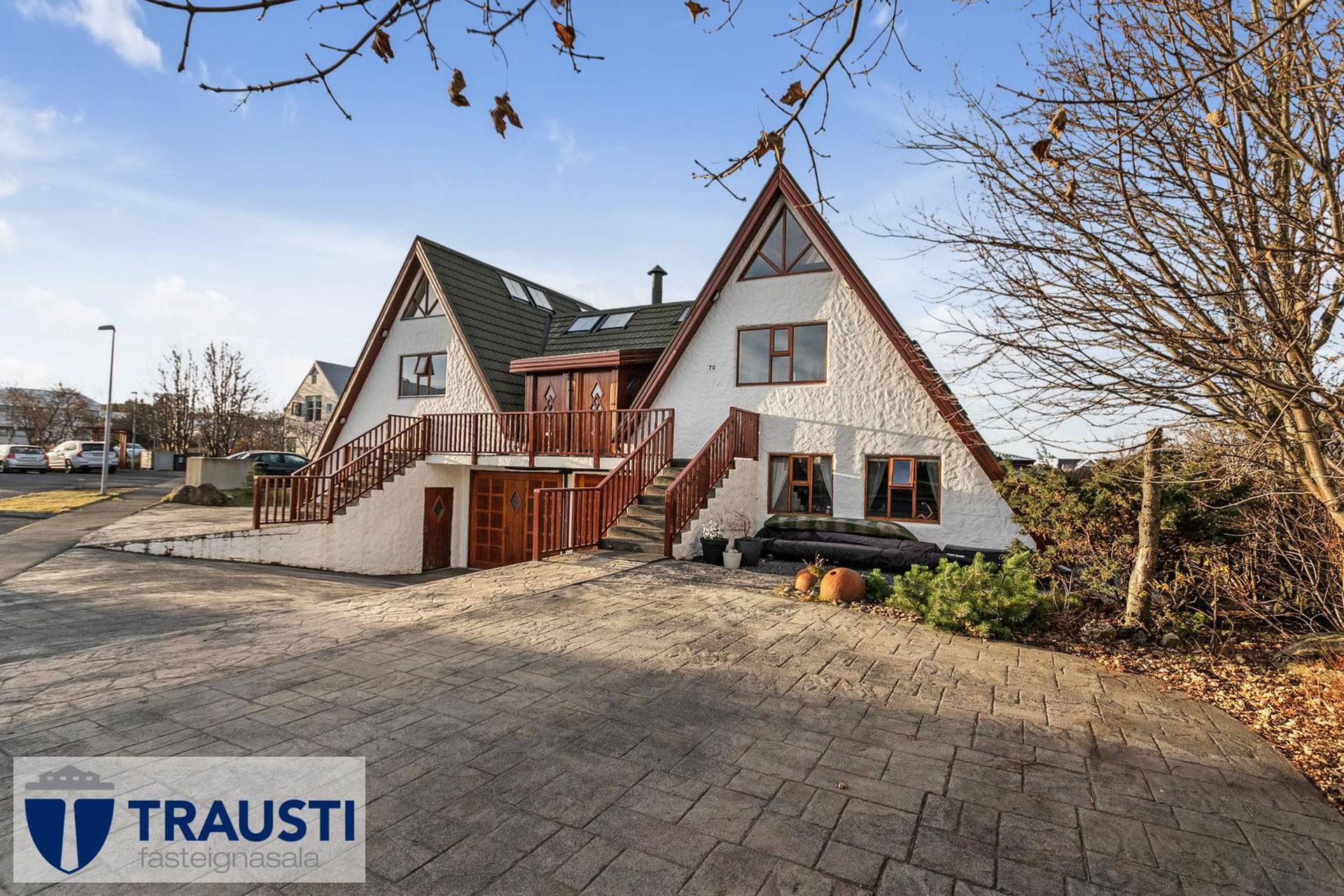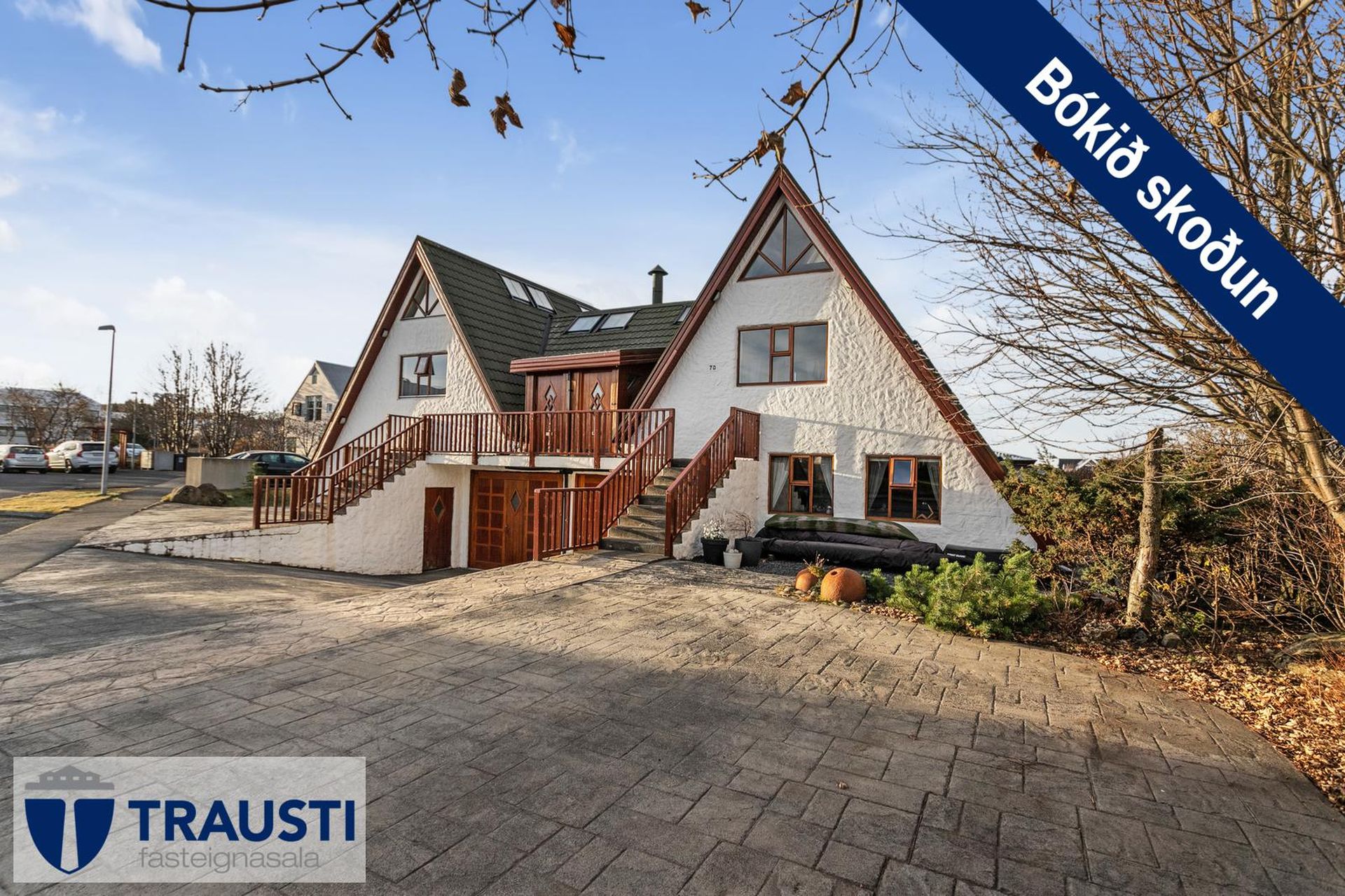 Fallegt 6 herbergja parhús teiknað af Vífil Magnússyni með aukinni lofthæð og innbyggðum bílskúr á mjög góðum stað í botnlangagötu við Krókamýri 70 í Garðabæ. Virkilega flott eign með sólríkum palli, heitur pottur og hiti er í stétt og tröppum. Göngustígar að grunnskóla, leikskóla, íþróttaaðstöðu, leiksvæði og sundlaug, þarf ekki að fara yfir umferðargötu. Seljendur skoðar skipti á minni eign í Garðabæ.Eignin er skráð skv. Þjóðskrá Íslands alls 183,6fm og þar af er innbyggður bílskúr 42fm. Gólfflötur eiganrinnar er stærri en uppgefnir fermetrar eru.Nánari lýsing:Efri hæð:Anddyri rúmgott með flísum á gólfi.Gestasalerni með upphengdu salerni, vask og flísar á gólfi.Hol rúmgott með flísum á gólfi. Útgengt er út á steyptar svalir sem vísa út í garð og stigi liggur niður á pallinn. Eldhús með eyju, granít borðplötur, helluborð, innbyggð uppþvottavél, pláss fyrir tvöfaldan ísskáp, ofn í vinnuhæð og parket á gólfi. Upphengd veggplata skilur að eldhús og stofu og því auðvelt að opna á milli.Stofa/borðstofa björt og rúmgóð með aukinni lofthæð með parketi á gólfi. Stigi liggur niður á neðri hæð hússins úr stofunni. Neðri hæðSjónvarpshol rúmgott með flísum á gólfi.Baðherbergi með innangengdri sturtu, glugga, upphengdu salerni og flísar í hólf og gólf. Útgegni út á rúmgóðan og sólríkan pall með heitum potti.Hjónaherbergi rúmgott með fataherbergi og parketi á gólfi.Svefnherbergi 1 rúmgott með parketi á gólfi.Svefnherbergi 2 rúmgott með parketi á gólfi.Herbergi 3 með glugga og teppi á gólfi. Skv. teiknginum á að vera þar þvottahús og eru lagnir og niðurfall til staðar. Bílskúr er mjög rúmgóður og skráður 42 fm. Hluti af honum hefur verið nýttur sem þvottahús og geymsla. Þvottahús með glugga með opnanlegu fagi, tengi fyrir þvottavél og þurrkara og flotað gólf.Frábær staðsetning þar sem göngufæri er í skóla og stutt í alla þjónustu. Allar nánari upplýsingar veitir Guðbjörg G. Sveinbjörnsdóttir löggiltur fasteignasali í síma 889-5949 eða á netfanginu . Forsendur söluyfirlits: Söluyfirlit er samið af fasteignasala í samræmi við ákvæði laga nr. 70/2015. Þær upplýsingar sem fram koma í söluyfirliti þessu eru sóttar í opinberar skrár, til seljanda sjálfs og eftir atvikum til húsfélags. Seljandi veitir upplýsingar um eign í samræmi við upplýsingaskyldu laga um fasteignakaup nr. 40/2002. Fasteignasali sannreynir að þær upplýsingar séu réttar með sjónskoðun á eigninni. Fasteignasali getur ekki fullyrt um ástand og eiginleika þeirra hluta fasteigna sem ekki eru aðgengilegir og sjást ekki berum augum, t.d. lagnir, dren, skólp og þak. Skoðunarskylda: Í lögum um fasteignakaup nr. 40/2002 er kveðið á um ríka skoðunarskyldu kaupenda á fasteignum. Vill Trausti fasteignasala því benda væntanlegum kaupendum á að kynna sér vel ástand fasteigna fyrir kauptilboðsgerð og leita til þar til bærra sérfræðinga um nánari skoðun ef þurfa þykir.Gjöld sem kaupandi þarf að standa straum af vegna kaupanna:1. Stimpilgjald af kaupsamningi, fyrstu kaup (0,4%), almenn kaup (0,8%), lögaðilar (1,6%) af heildarfasteignamati.2. Þinglýsingargjald af kaupsamningi, veðskuldabréfi, mögulegu veðleyfi o.fl. - kr. 2.700 af hverju skjali.3. Lántökugjald lánastofnunar er skv. verðskrá viðkomandi lánastofnunar. Nánari upplýsingar á t.d. heimasíðu lánastofnana.4. Umsýslugjald til fasteignasölu skv. kauptilboði.