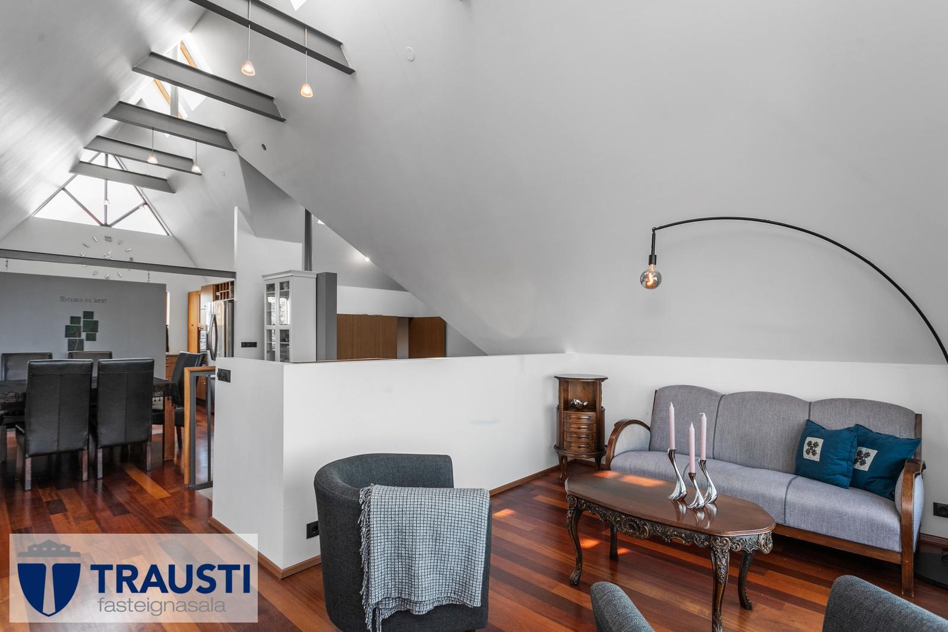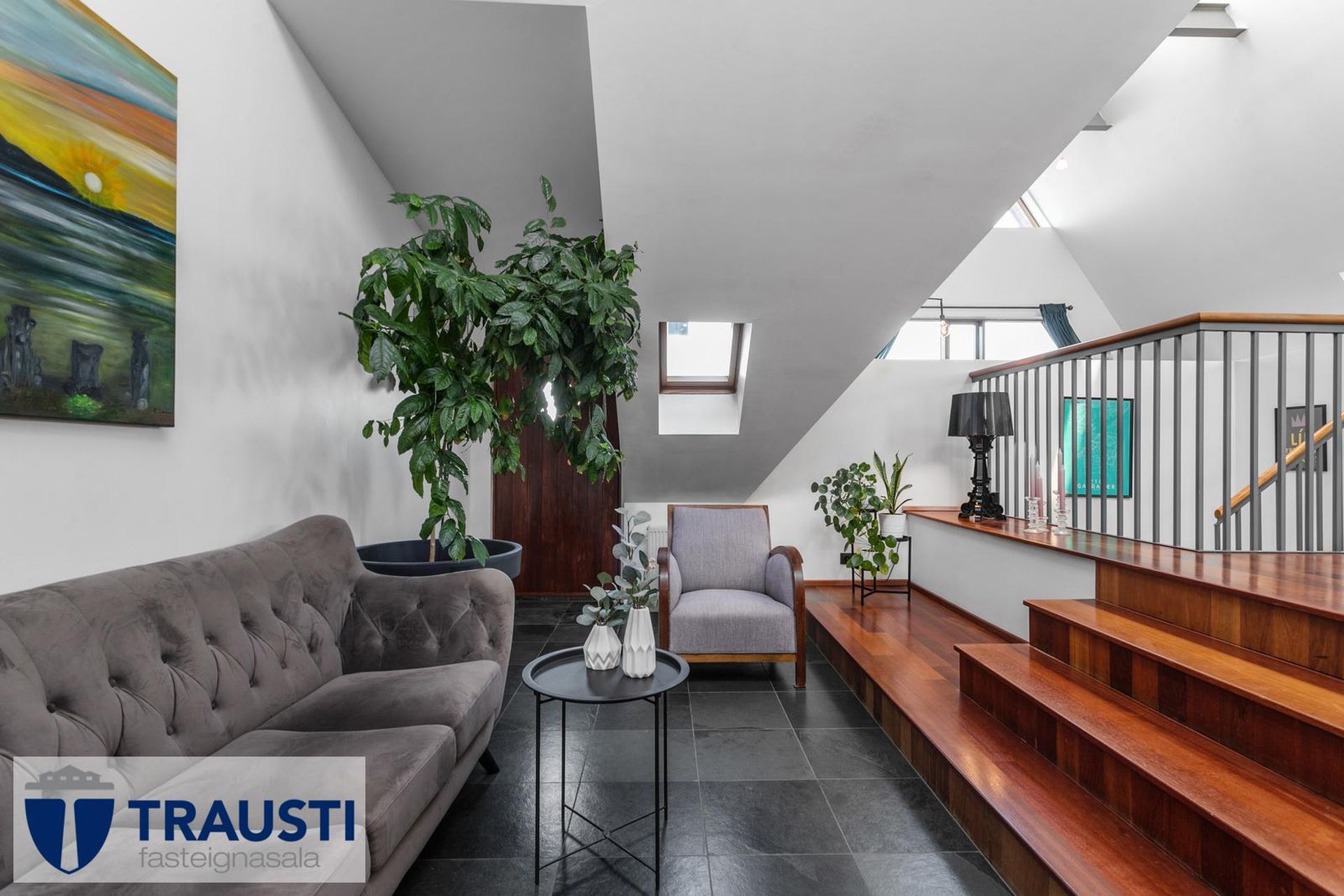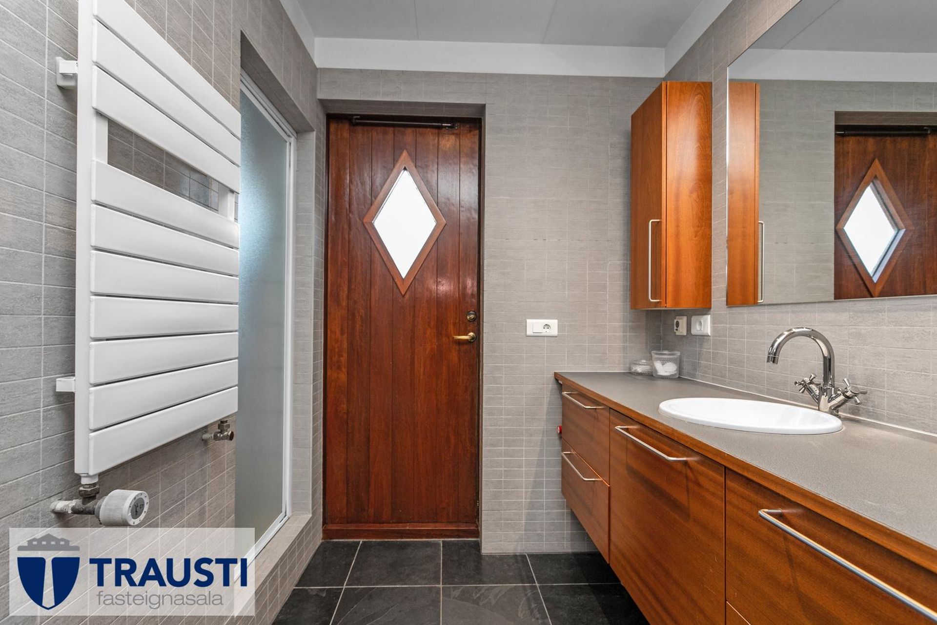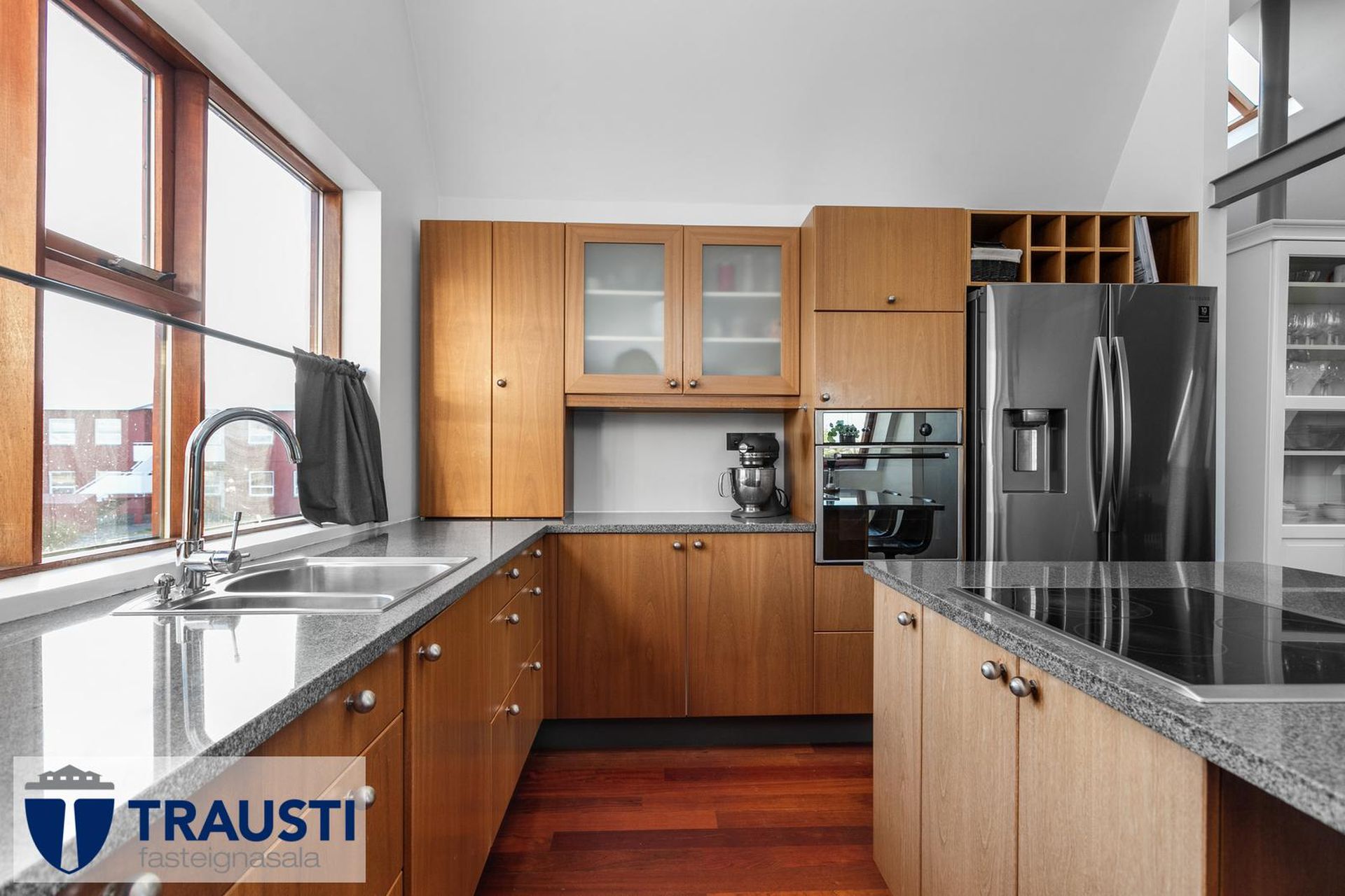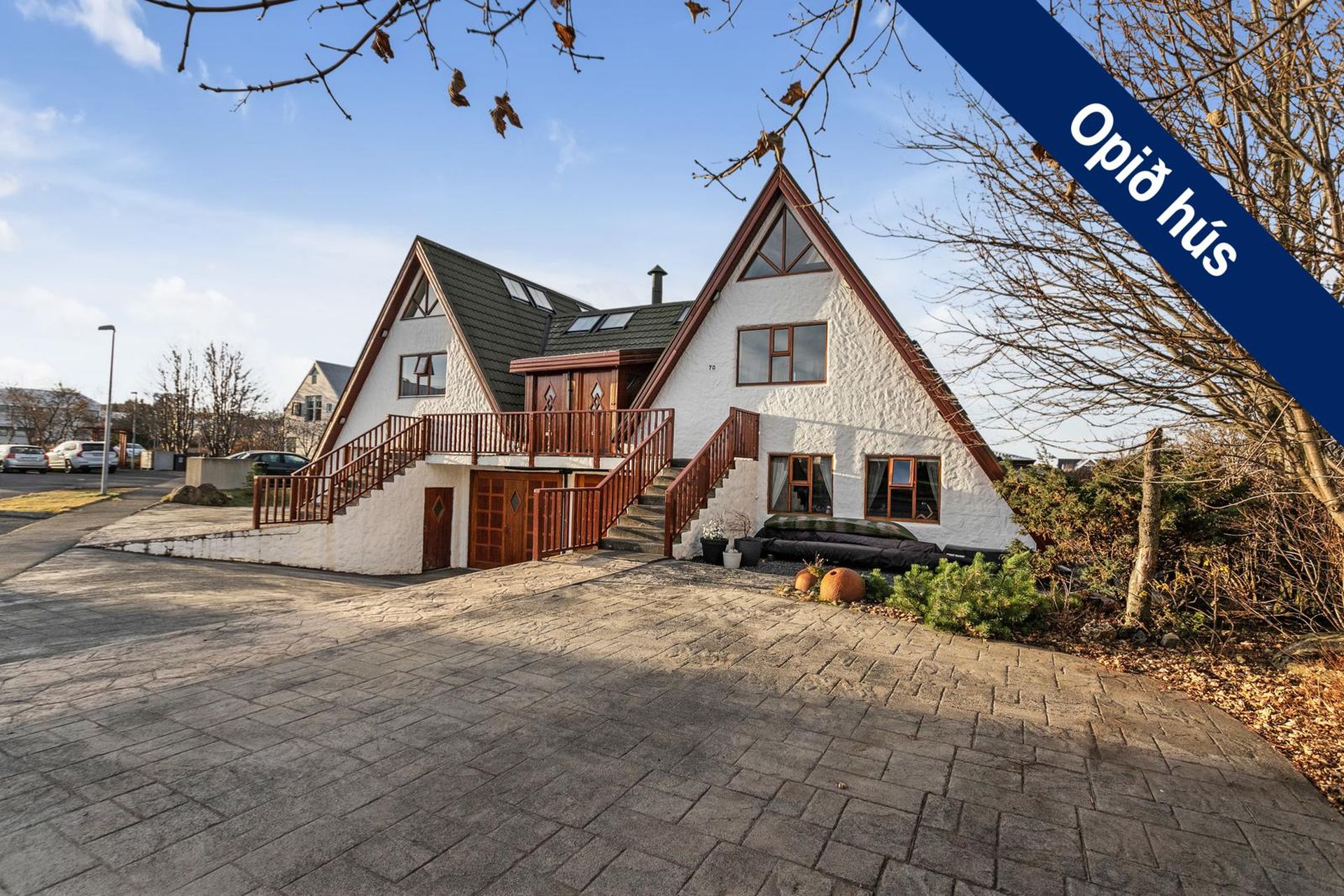 Fallegt 6 herbergja parhús teiknað af Vífil Magnússyni með aukinni lofthæð og innbyggðum bílskúr á mjög góðum stað í botnlangagötu við Krókamýri 70 í Garðabæ. Virkilega flott eign með sólríkum palli, heitur pottur og hiti er í stétt og tröppum. Göngustígar að grunnskóla, leikskóla, íþróttaaðstöðu, leiksvæði og sundlaug, þarf ekki að fara yfir umferðargötu. Seljendur skoðar skipti á minni eign í Garðabæ.Eignin er skráð skv. Þjóðskrá Íslands alls 183,6fm og þar af er innbyggður bílskúr 42fm. Gólfflötur eiganrinnar er stærri en uppgefnir fermetrar eru.Nánari lýsing:Efri hæð:Anddyri rúmgott með flísum á gólfi.Gestasalerni með upphengdu salerni, vask og flísar á gólfi.Hol rúmgott með flísum á gólfi. Útgengt er út á steyptar svalir sem vísa út í garð og stigi liggur niður á pallinn. Eldhús með eyju, granít borðplötur, helluborð, innbyggð uppþvottavél, pláss fyrir tvöfaldan ísskáp, ofn í vinnuhæð og parket á gólfi. Upphengd veggplata skilur að eldhús og stofu og því auðvelt að opna á milli.Stofa/borðstofa björt og rúmgóð með aukinni lofthæð með parketi á gólfi. Stigi liggur niður á neðri hæð hússins úr stofunni. Neðri hæðSjónvarpshol rúmgott með flísum á gólfi.Baðherbergi með innangengdri sturtu, glugga, upphengdu salerni og flísar í hólf og gólf. Útgegni út á rúmgóðan og sólríkan pall með heitum potti.Hjónaherbergi rúmgott með fataherbergi og parketi á gólfi.Svefnherbergi 1 rúmgott með parketi á gólfi.Svefnherbergi 2 rúmgott með parketi á gólfi.Herbergi 3 með glugga og teppi á gólfi. Skv. teiknginum á að vera þar þvottahús og eru lagnir og niðurfall til staðar. Bílskúr er mjög rúmgóður og skráður 42 fm. Hluti af honum hefur verið nýttur sem þvottahús og geymsla. Þvottahús með glugga með opnanlegu fagi, tengi fyrir þvottavél og þurrkara og flotað gólf.Frábær staðsetning þar sem göngufæri er í skóla og stutt í alla þjónustu. Allar nánari upplýsingar veitir Guðbjörg G. Sveinbjörnsdóttir löggiltur fasteignasali í síma 889-5949 eða á netfanginu . Forsendur söluyfirlits: Söluyfirlit er samið af fasteignasala í samræmi við ákvæði laga nr. 70/2015. Þær upplýsingar sem fram koma í söluyfirliti þessu eru sóttar í opinberar skrár, til seljanda sjálfs og eftir atvikum til húsfélags. Seljandi veitir upplýsingar um eign í samræmi við upplýsingaskyldu laga um fasteignakaup nr. 40/2002. Fasteignasali sannreynir að þær upplýsingar séu réttar með sjónskoðun á eigninni. Fasteignasali getur ekki fullyrt um ástand og eiginleika þeirra hluta fasteigna sem ekki eru aðgengilegir og sjást ekki berum augum, t.d. lagnir, dren, skólp og þak. Skoðunarskylda: Í lögum um fasteignakaup nr. 40/2002 er kveðið á um ríka skoðunarskyldu kaupenda á fasteignum. Vill Trausti fasteignasala því benda væntanlegum kaupendum á að kynna sér vel ástand fasteigna fyrir kauptilboðsgerð og leita til þar til bærra sérfræðinga um nánari skoðun ef þurfa þykir.Gjöld sem kaupandi þarf að standa straum af vegna kaupanna:1. Stimpilgjald af kaupsamningi, fyrstu kaup (0,4%), almenn kaup (0,8%), lögaðilar (1,6%) af heildarfasteignamati.2. Þinglýsingargjald af kaupsamningi, veðskuldabréfi, mögulegu veðleyfi o.fl. - kr. 2.700 af hverju skjali.3. Lántökugjald lánastofnunar er skv. verðskrá viðkomandi lánastofnunar. Nánari upplýsingar á t.d. heimasíðu lánastofnana.4. Umsýslugjald til fasteignasölu skv. kauptilboði.
