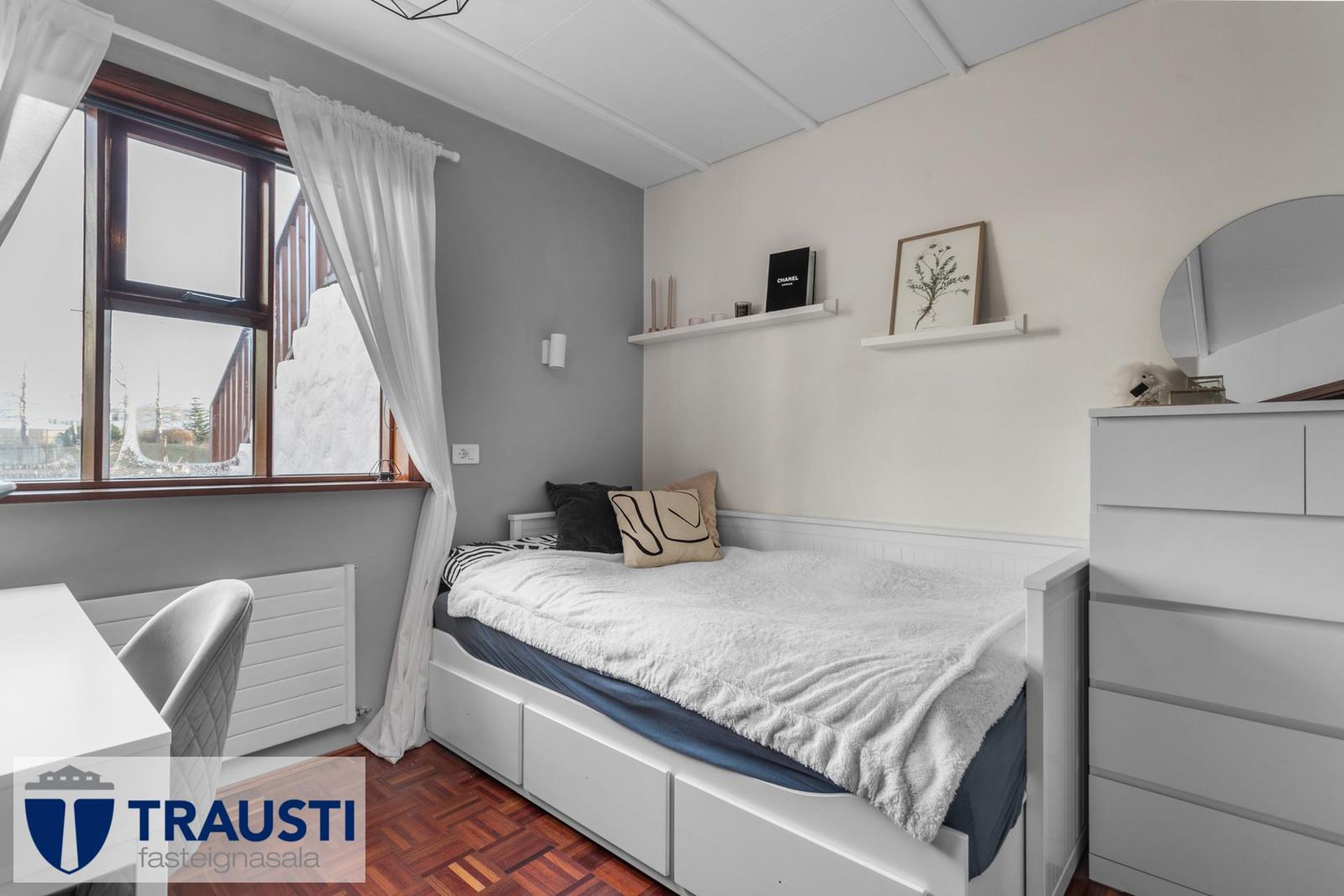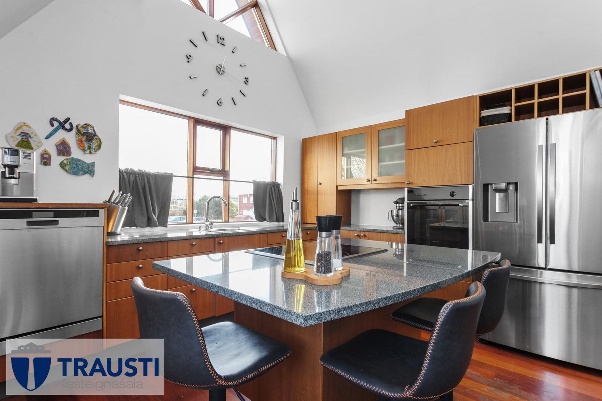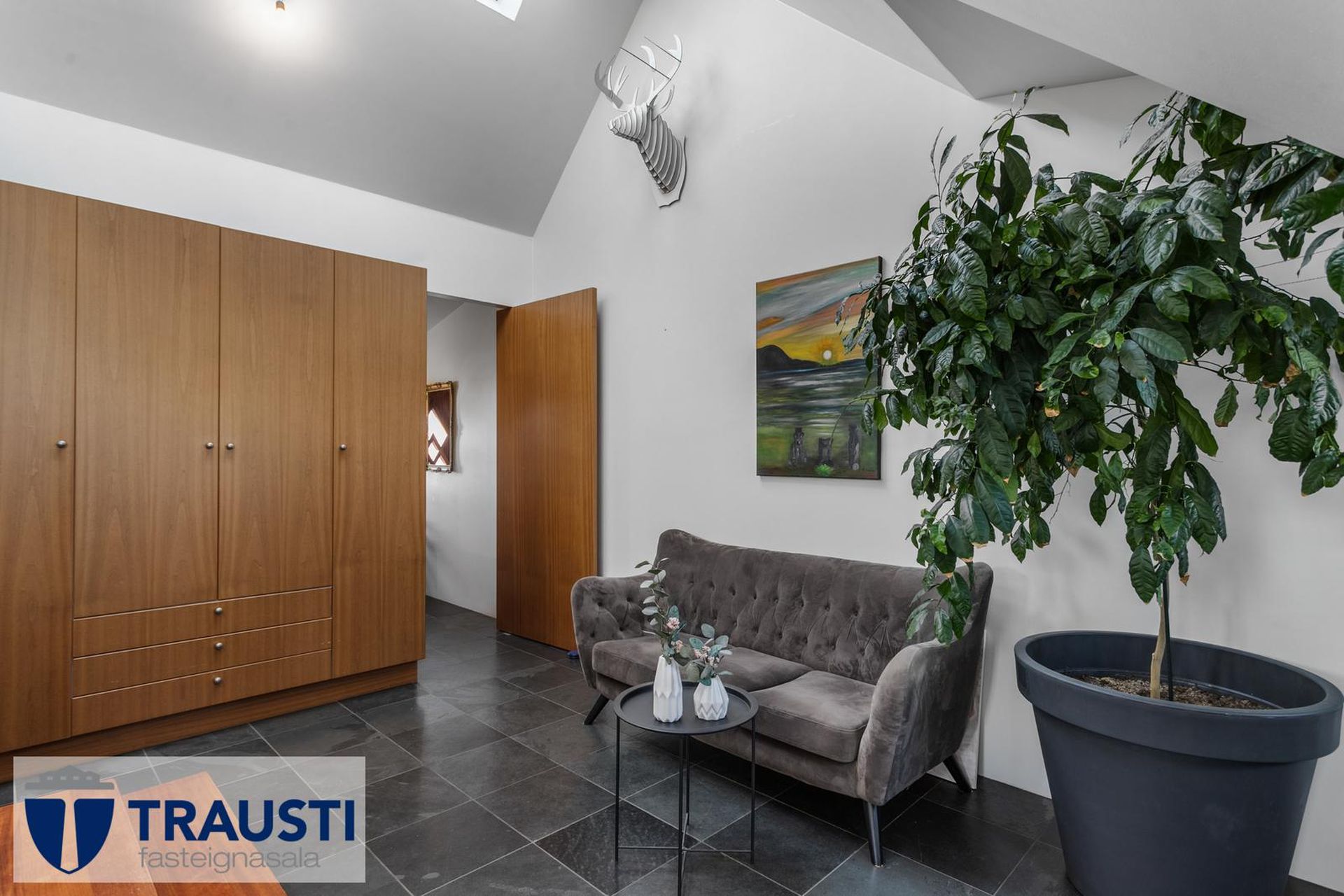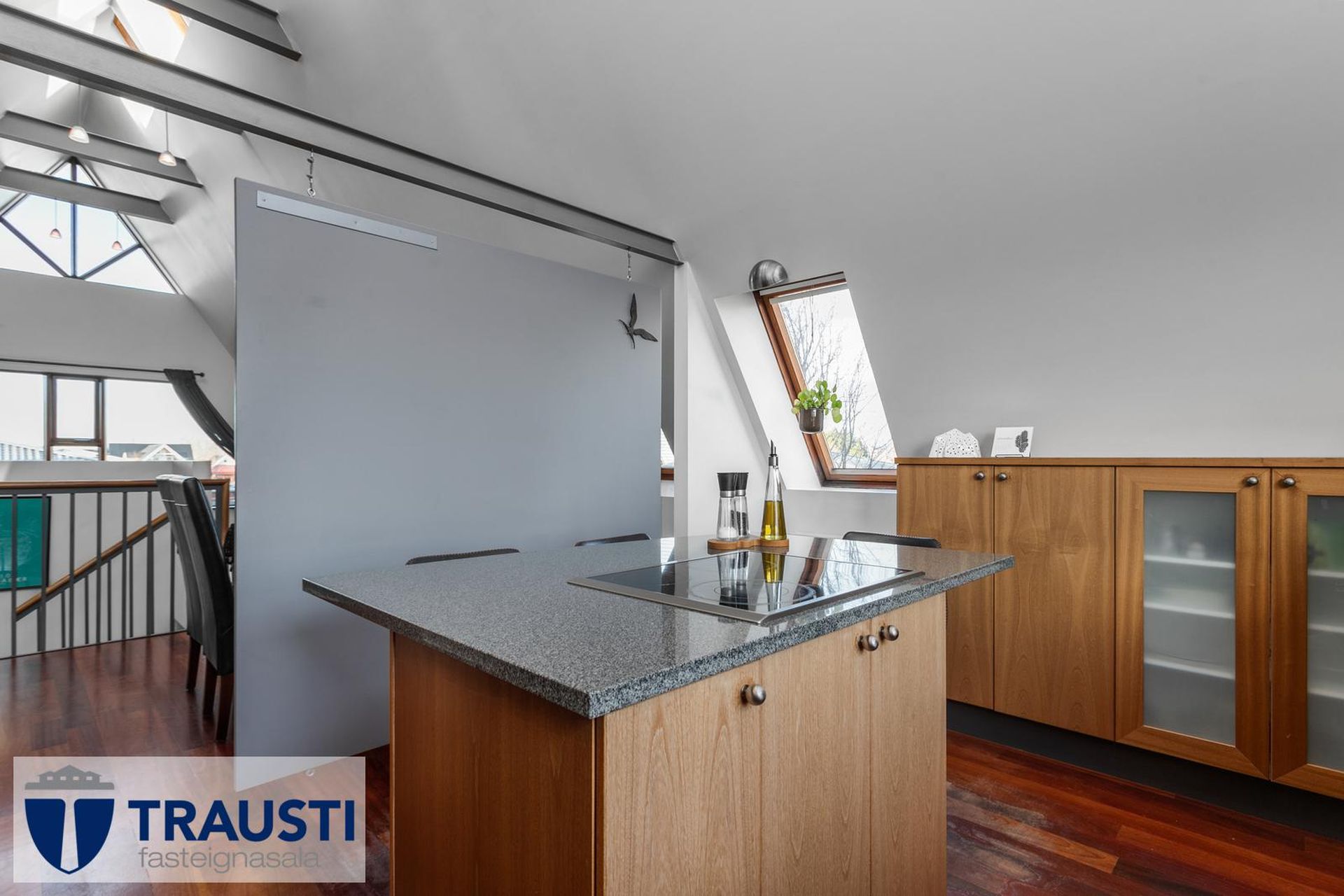 Fallegt 6 herbergja parhús teiknað af Vífil Magnússyni með aukinni lofthæð og innbyggðum bílskúr á mjög góðum stað í botnlangagötu við Krókamýri 70 í Garðabæ. Virkilega flott eign með sólríkum palli, heitur pottur og hiti er í stétt og tröppum. Göngustígar að grunnskóla, leikskóla, íþróttaaðstöðu, leiksvæði og sundlaug, þarf ekki að fara yfir umferðargötu. Seljendur skoðar skipti á minni eign í Garðabæ.Eignin er skráð skv. Þjóðskrá Íslands alls 183,6fm og þar af er innbyggður bílskúr 42fm. Gólfflötur eiganrinnar er stærri en uppgefnir fermetrar eru.Nánari lýsing:Efri hæð:Anddyri rúmgott með flísum á gólfi.Gestasalerni með upphengdu salerni, vask og flísar á gólfi.Hol rúmgott með flísum á gólfi. Útgengt er út á steyptar svalir sem vísa út í garð og stigi liggur niður á pallinn. Eldhús með eyju, granít borðplötur, helluborð, innbyggð uppþvottavél, pláss fyrir tvöfaldan ísskáp, ofn í vinnuhæð og parket á gólfi. Upphengd veggplata skilur að eldhús og stofu og því auðvelt að opna á milli.Stofa/borðstofa björt og rúmgóð með aukinni lofthæð með parketi á gólfi. Stigi liggur niður á neðri hæð hússins úr stofunni. Neðri hæðSjónvarpshol rúmgott með flísum á gólfi.Baðherbergi með innangengdri sturtu, glugga, upphengdu salerni og flísar í hólf og gólf. Útgegni út á rúmgóðan og sólríkan pall með heitum potti.Hjónaherbergi rúmgott með fataherbergi og parketi á gólfi.Svefnherbergi 1 rúmgott með parketi á gólfi.Svefnherbergi 2 rúmgott með parketi á gólfi.Herbergi 3 með glugga og teppi á gólfi. Skv. teiknginum á að vera þar þvottahús og eru lagnir og niðurfall til staðar. Bílskúr er mjög rúmgóður og skráður 42 fm. Hluti af honum hefur verið nýttur sem þvottahús og geymsla. Þvottahús með glugga með opnanlegu fagi, tengi fyrir þvottavél og þurrkara og flotað gólf.Frábær staðsetning þar sem göngufæri er í skóla og stutt í alla þjónustu. Allar nánari upplýsingar veitir Guðbjörg G. Sveinbjörnsdóttir löggiltur fasteignasali í síma 889-5949 eða á netfanginu . Forsendur söluyfirlits: Söluyfirlit er samið af fasteignasala í samræmi við ákvæði laga nr. 70/2015. Þær upplýsingar sem fram koma í söluyfirliti þessu eru sóttar í opinberar skrár, til seljanda sjálfs og eftir atvikum til húsfélags. Seljandi veitir upplýsingar um eign í samræmi við upplýsingaskyldu laga um fasteignakaup nr. 40/2002. Fasteignasali sannreynir að þær upplýsingar séu réttar með sjónskoðun á eigninni. Fasteignasali getur ekki fullyrt um ástand og eiginleika þeirra hluta fasteigna sem ekki eru aðgengilegir og sjást ekki berum augum, t.d. lagnir, dren, skólp og þak. Skoðunarskylda: Í lögum um fasteignakaup nr. 40/2002 er kveðið á um ríka skoðunarskyldu kaupenda á fasteignum. Vill Trausti fasteignasala því benda væntanlegum kaupendum á að kynna sér vel ástand fasteigna fyrir kauptilboðsgerð og leita til þar til bærra sérfræðinga um nánari skoðun ef þurfa þykir.Gjöld sem kaupandi þarf að standa straum af vegna kaupanna:1. Stimpilgjald af kaupsamningi, fyrstu kaup (0,4%), almenn kaup (0,8%), lögaðilar (1,6%) af heildarfasteignamati.2. Þinglýsingargjald af kaupsamningi, veðskuldabréfi, mögulegu veðleyfi o.fl. - kr. 2.700 af hverju skjali.3. Lántökugjald lánastofnunar er skv. verðskrá viðkomandi lánastofnunar. Nánari upplýsingar á t.d. heimasíðu lánastofnana.4. Umsýslugjald til fasteignasölu skv. kauptilboði.
