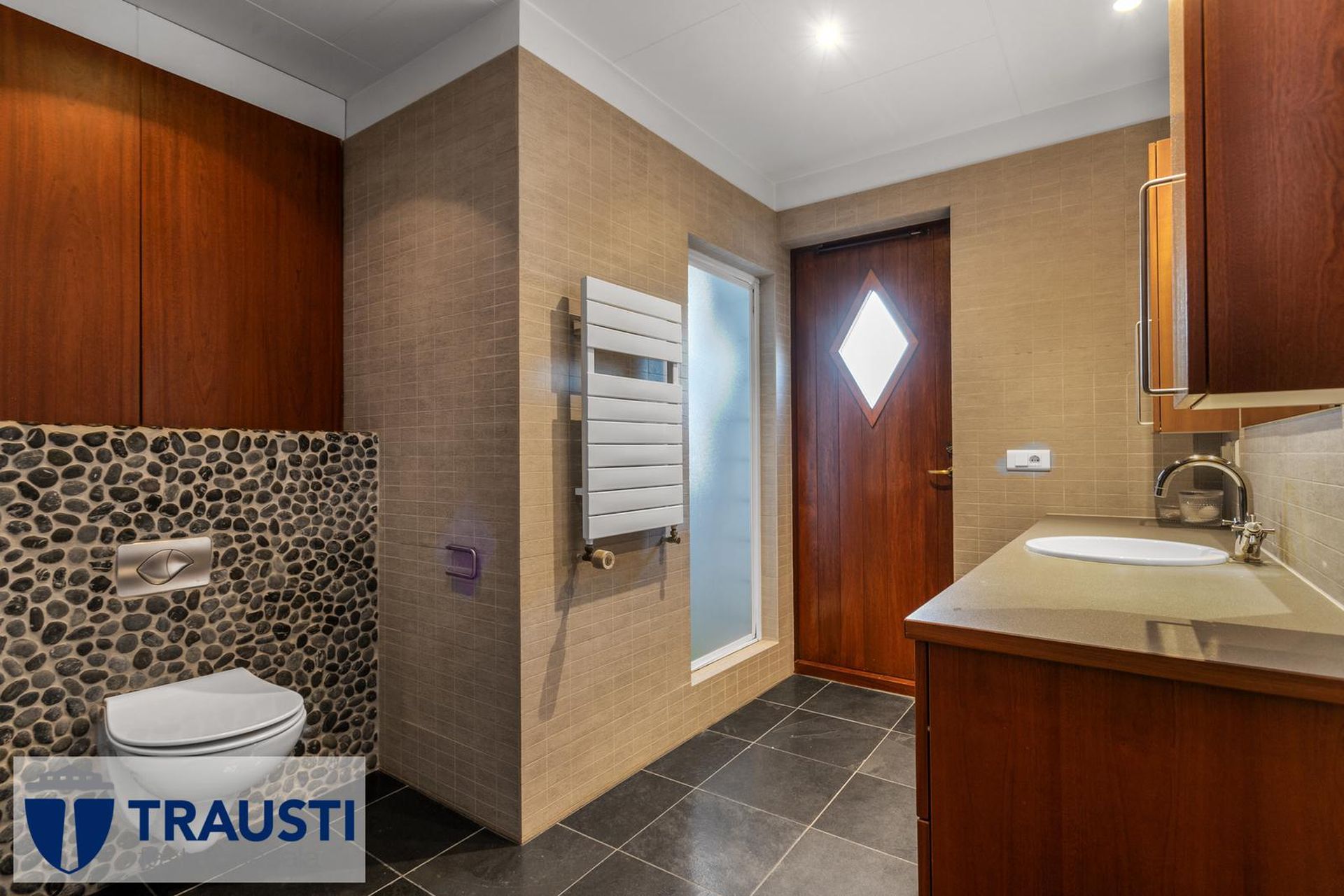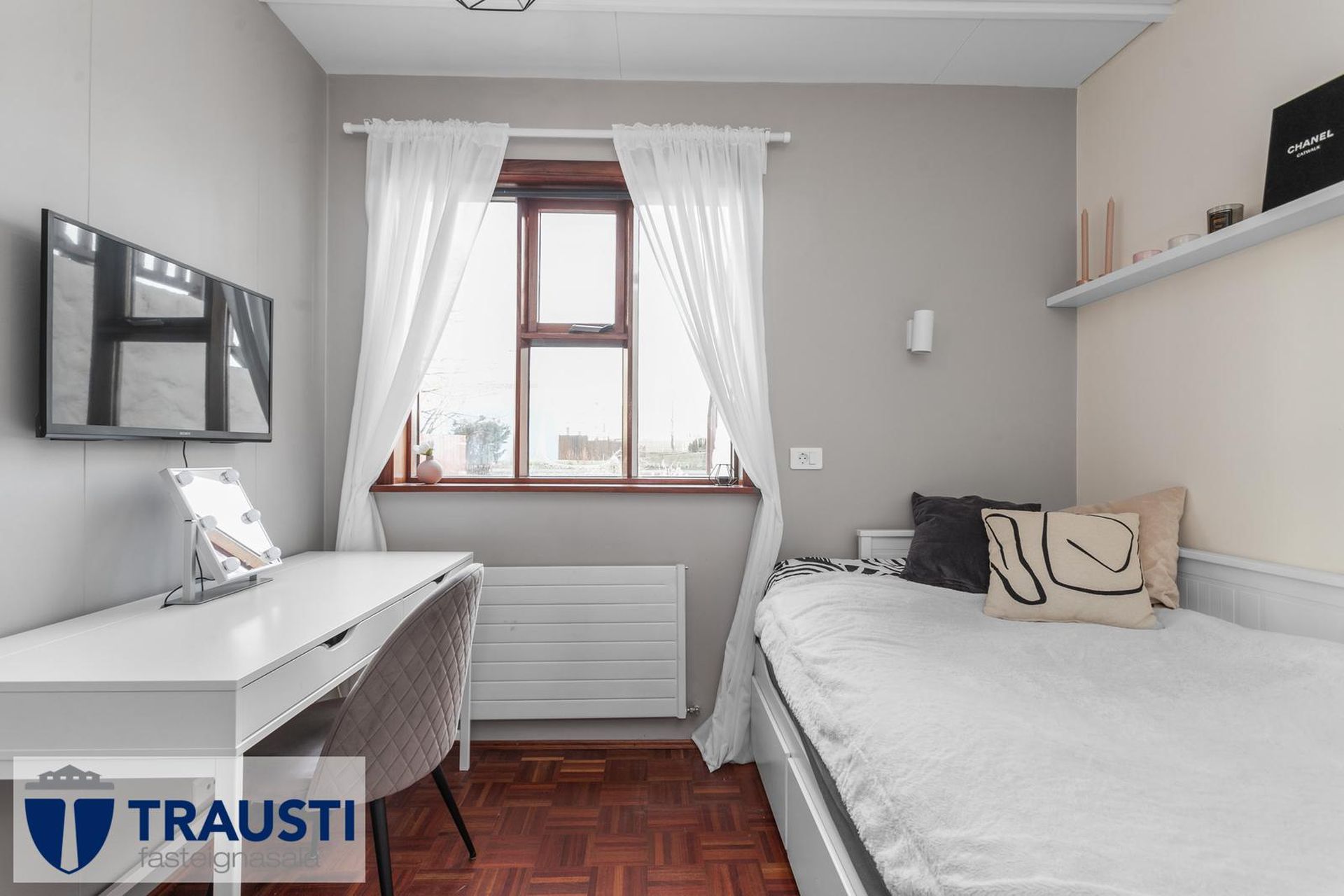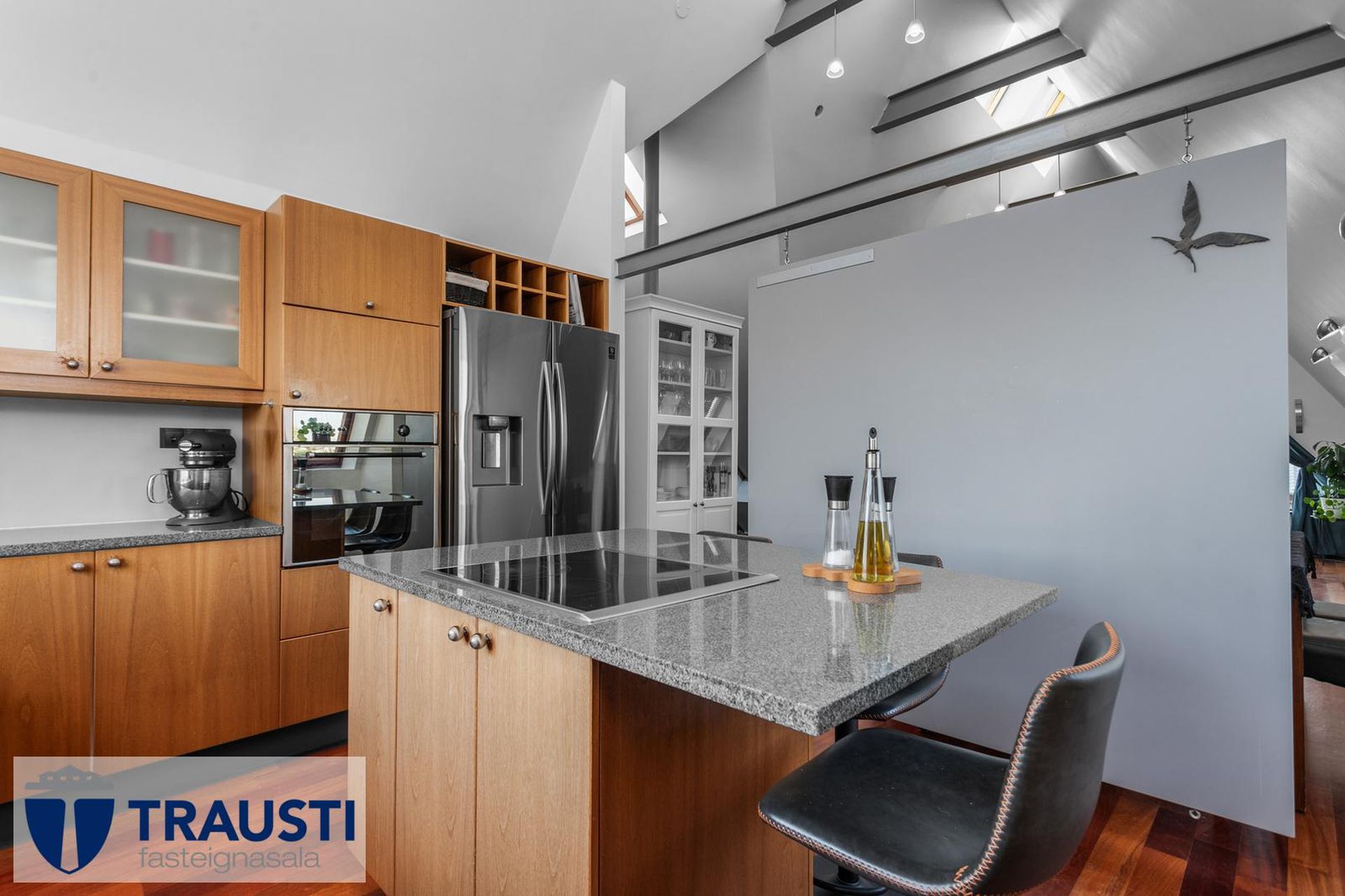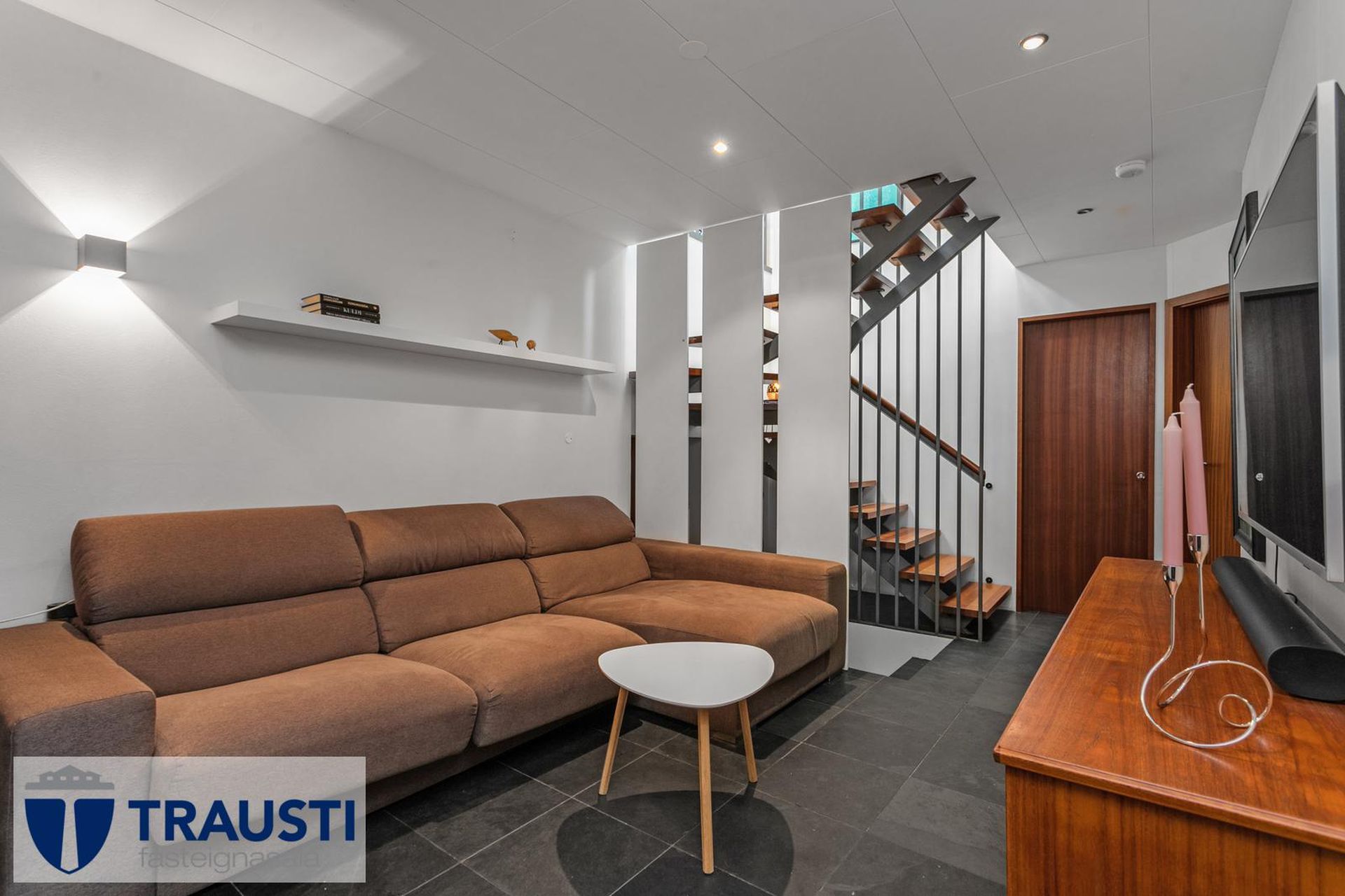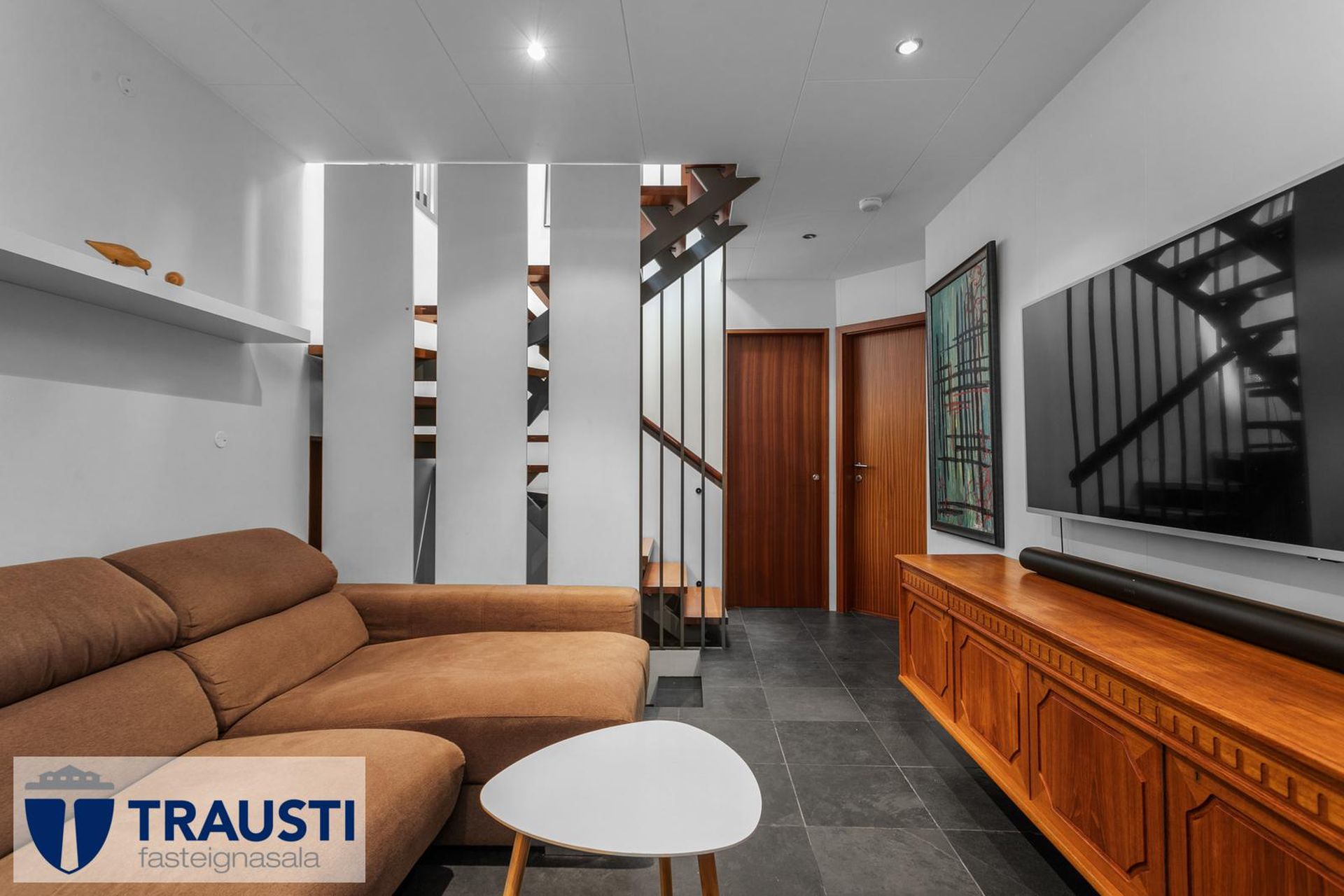 Fallegt 6 herbergja parhús teiknað af Vífil Magnússyni með aukinni lofthæð og innbyggðum bílskúr á mjög góðum stað í botnlangagötu við Krókamýri 70 í Garðabæ. Virkilega flott eign með sólríkum palli, heitur pottur og hiti er í stétt og tröppum. Göngustígar að grunnskóla, leikskóla, íþróttaaðstöðu, leiksvæði og sundlaug, þarf ekki að fara yfir umferðargötu. Seljendur skoðar skipti á minni eign í Garðabæ.Eignin er skráð skv. Þjóðskrá Íslands alls 183,6fm og þar af er innbyggður bílskúr 42fm. Gólfflötur eiganrinnar er stærri en uppgefnir fermetrar eru.Nánari lýsing:Efri hæð:Anddyri rúmgott með flísum á gólfi.Gestasalerni með upphengdu salerni, vask og flísar á gólfi.Hol rúmgott með flísum á gólfi. Útgengt er út á steyptar svalir sem vísa út í garð og stigi liggur niður á pallinn. Eldhús með eyju, granít borðplötur, helluborð, innbyggð uppþvottavél, pláss fyrir tvöfaldan ísskáp, ofn í vinnuhæð og parket á gólfi. Upphengd veggplata skilur að eldhús og stofu og því auðvelt að opna á milli.Stofa/borðstofa björt og rúmgóð með aukinni lofthæð með parketi á gólfi. Stigi liggur niður á neðri hæð hússins úr stofunni. Neðri hæðSjónvarpshol rúmgott með flísum á gólfi.Baðherbergi með innangengdri sturtu, glugga, upphengdu salerni og flísar í hólf og gólf. Útgegni út á rúmgóðan og sólríkan pall með heitum potti.Hjónaherbergi rúmgott með fataherbergi og parketi á gólfi.Svefnherbergi 1 rúmgott með parketi á gólfi.Svefnherbergi 2 rúmgott með parketi á gólfi.Herbergi 3 með glugga og teppi á gólfi. Skv. teiknginum á að vera þar þvottahús og eru lagnir og niðurfall til staðar. Bílskúr er mjög rúmgóður og skráður 42 fm. Hluti af honum hefur verið nýttur sem þvottahús og geymsla. Þvottahús með glugga með opnanlegu fagi, tengi fyrir þvottavél og þurrkara og flotað gólf.Frábær staðsetning þar sem göngufæri er í skóla og stutt í alla þjónustu. Allar nánari upplýsingar veitir Guðbjörg G. Sveinbjörnsdóttir löggiltur fasteignasali í síma 889-5949 eða á netfanginu . Forsendur söluyfirlits: Söluyfirlit er samið af fasteignasala í samræmi við ákvæði laga nr. 70/2015. Þær upplýsingar sem fram koma í söluyfirliti þessu eru sóttar í opinberar skrár, til seljanda sjálfs og eftir atvikum til húsfélags. Seljandi veitir upplýsingar um eign í samræmi við upplýsingaskyldu laga um fasteignakaup nr. 40/2002. Fasteignasali sannreynir að þær upplýsingar séu réttar með sjónskoðun á eigninni. Fasteignasali getur ekki fullyrt um ástand og eiginleika þeirra hluta fasteigna sem ekki eru aðgengilegir og sjást ekki berum augum, t.d. lagnir, dren, skólp og þak. Skoðunarskylda: Í lögum um fasteignakaup nr. 40/2002 er kveðið á um ríka skoðunarskyldu kaupenda á fasteignum. Vill Trausti fasteignasala því benda væntanlegum kaupendum á að kynna sér vel ástand fasteigna fyrir kauptilboðsgerð og leita til þar til bærra sérfræðinga um nánari skoðun ef þurfa þykir.Gjöld sem kaupandi þarf að standa straum af vegna kaupanna:1. Stimpilgjald af kaupsamningi, fyrstu kaup (0,4%), almenn kaup (0,8%), lögaðilar (1,6%) af heildarfasteignamati.2. Þinglýsingargjald af kaupsamningi, veðskuldabréfi, mögulegu veðleyfi o.fl. - kr. 2.700 af hverju skjali.3. Lántökugjald lánastofnunar er skv. verðskrá viðkomandi lánastofnunar. Nánari upplýsingar á t.d. heimasíðu lánastofnana.4. Umsýslugjald til fasteignasölu skv. kauptilboði.