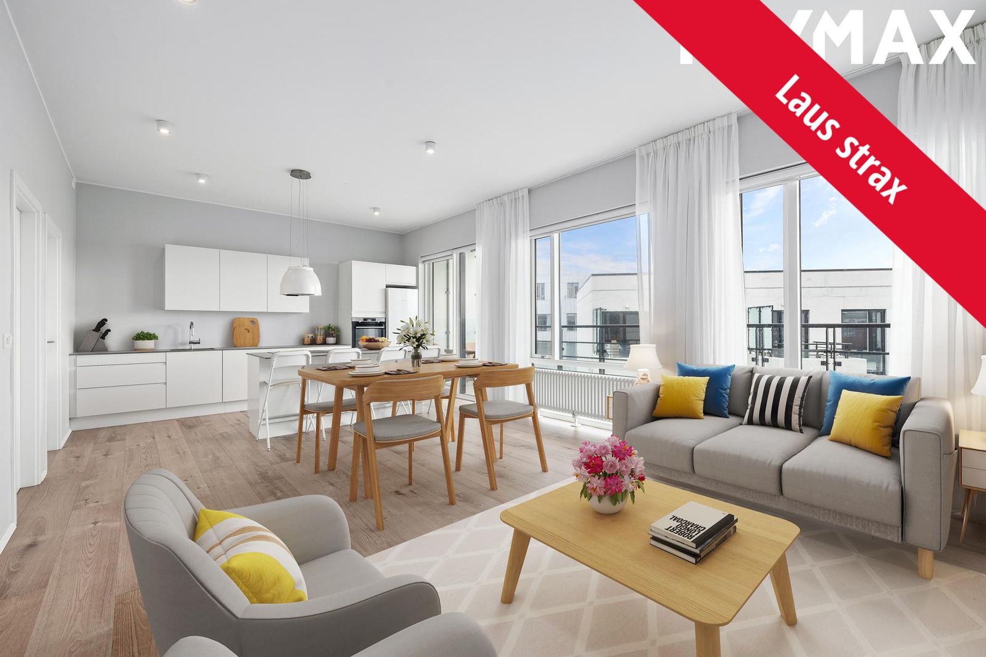 Stofa/borðstofa: Eru í samliggjandi opnu rými með eldhúsi með útgengi út á svalir í suðaustur sem eru 8 fm og útsýni í þrjár áttir þ.á.m. yfir Elliðárdalinn.