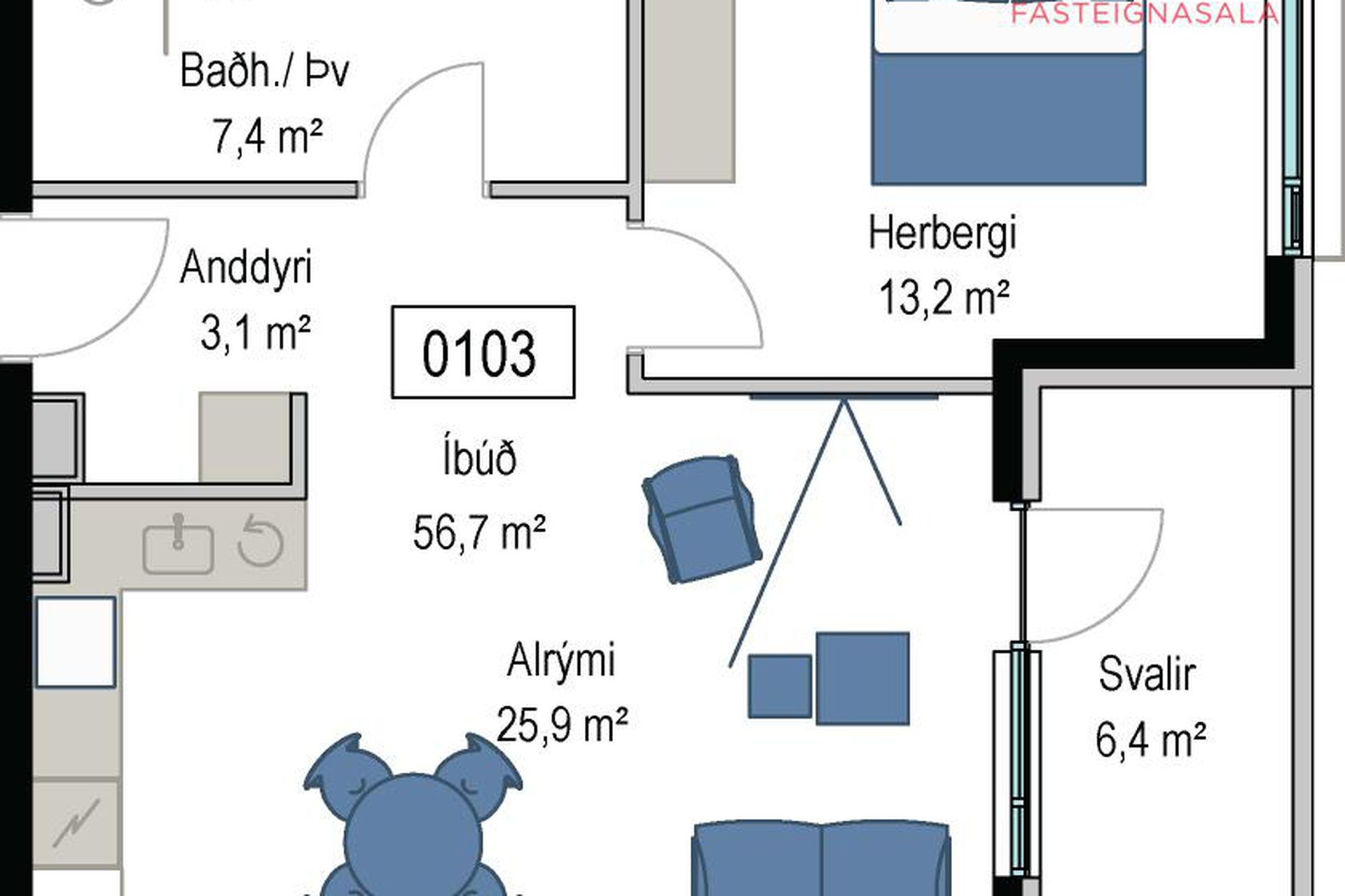 0104 | 4 | 123,70 m² | 89.900.000 kr. 20. febrúar 2025 | 89.900.000 kr. 28. apríl 2025 |