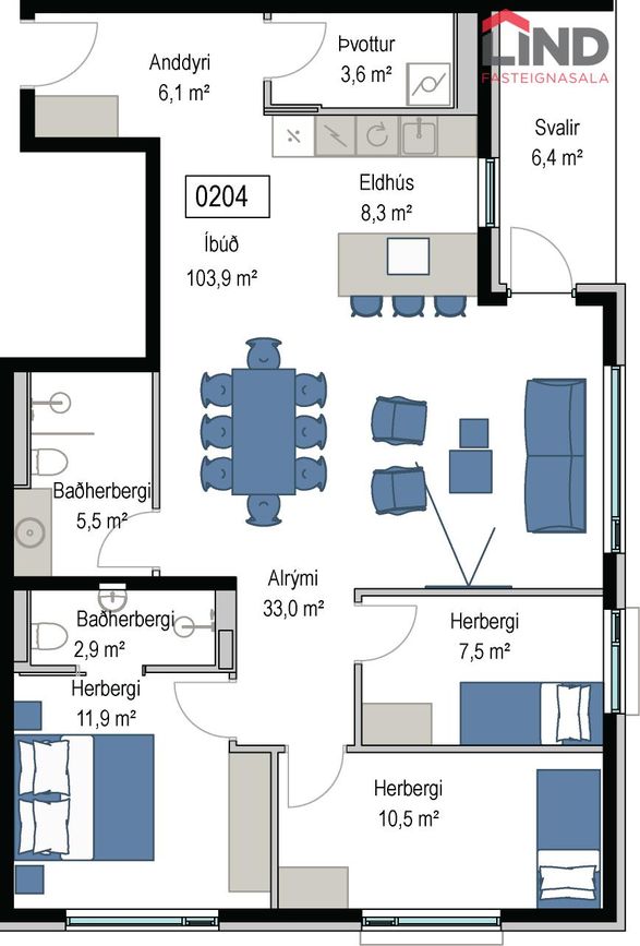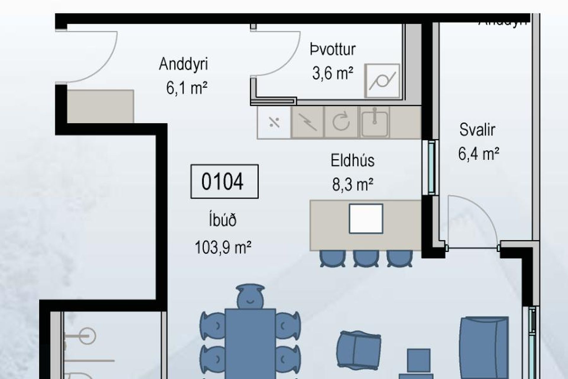 0104 | 4 | 123,70 m² | 89.900.000 kr. 20. febrúar 2025 | 89.900.000 kr. 28. apríl 2025 |