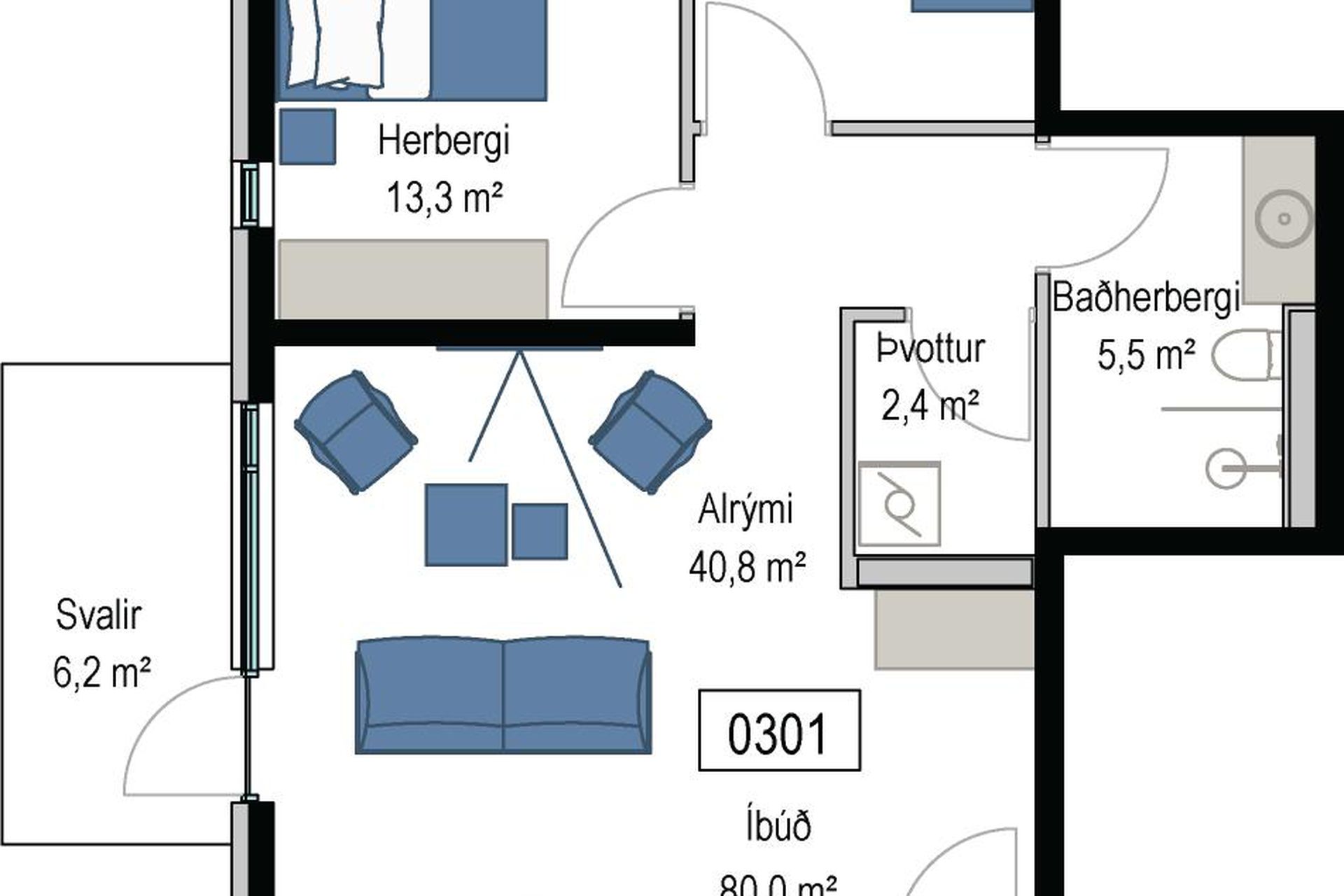 | 2 | 77,30 m² | 64.900.000 kr. 7. apríl 2026 | 62.500.000 kr. 7. desember 2023 |
