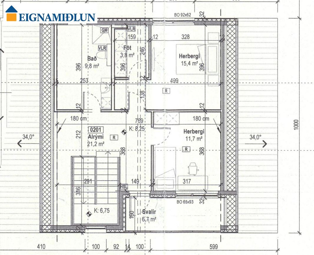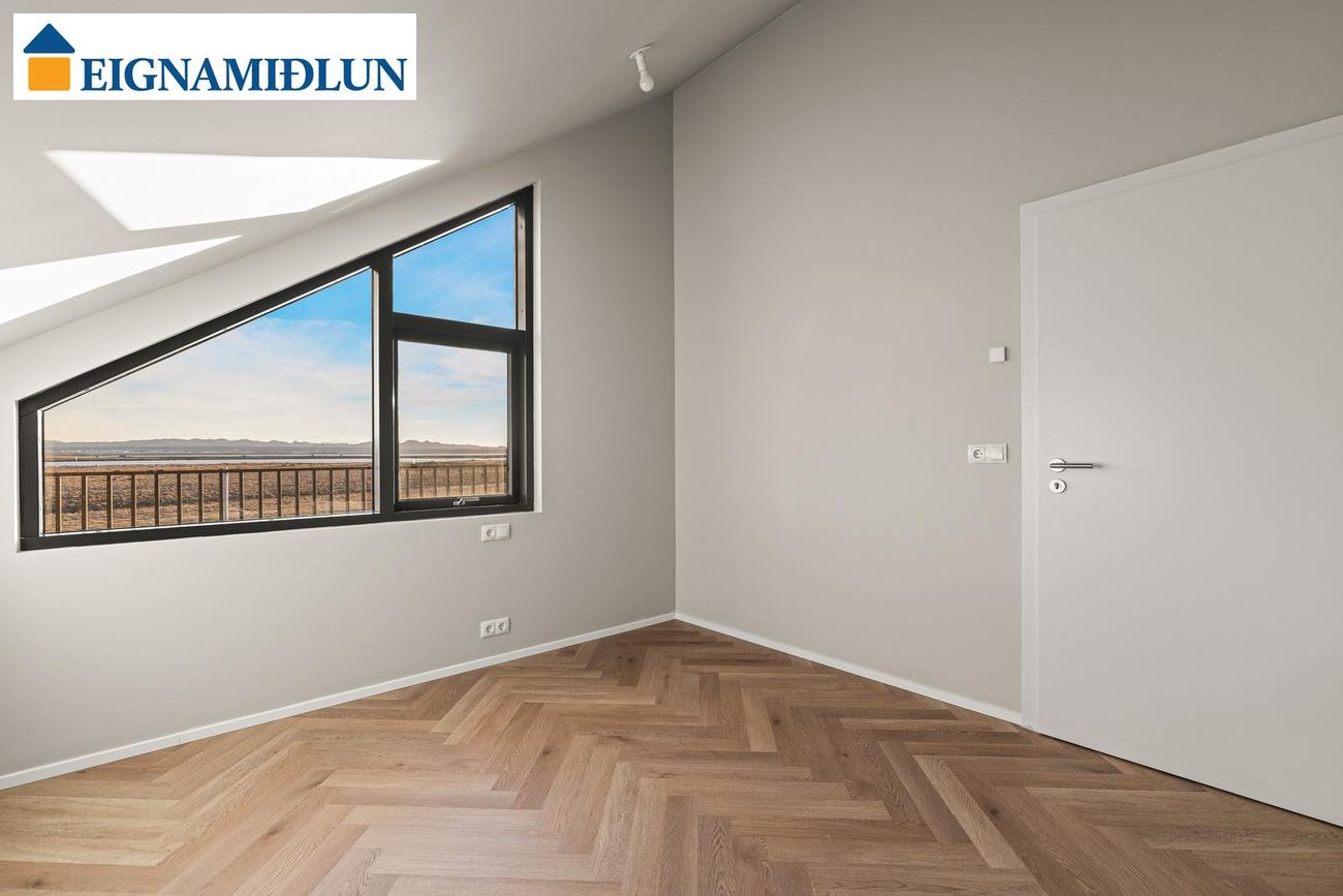 Neðri hæð: Tveir svefnherbergi (11 fm og 10,8 fm) með opnanlegum gluggum og fataskápum. Efri hæð: Svefnherbergi (11,7 fm) með opnanlegum glugga, fataskáp og fjallasýni. Hjónaherbergi (15,4 fm) með fataherbergi og opnanlegum glugga.