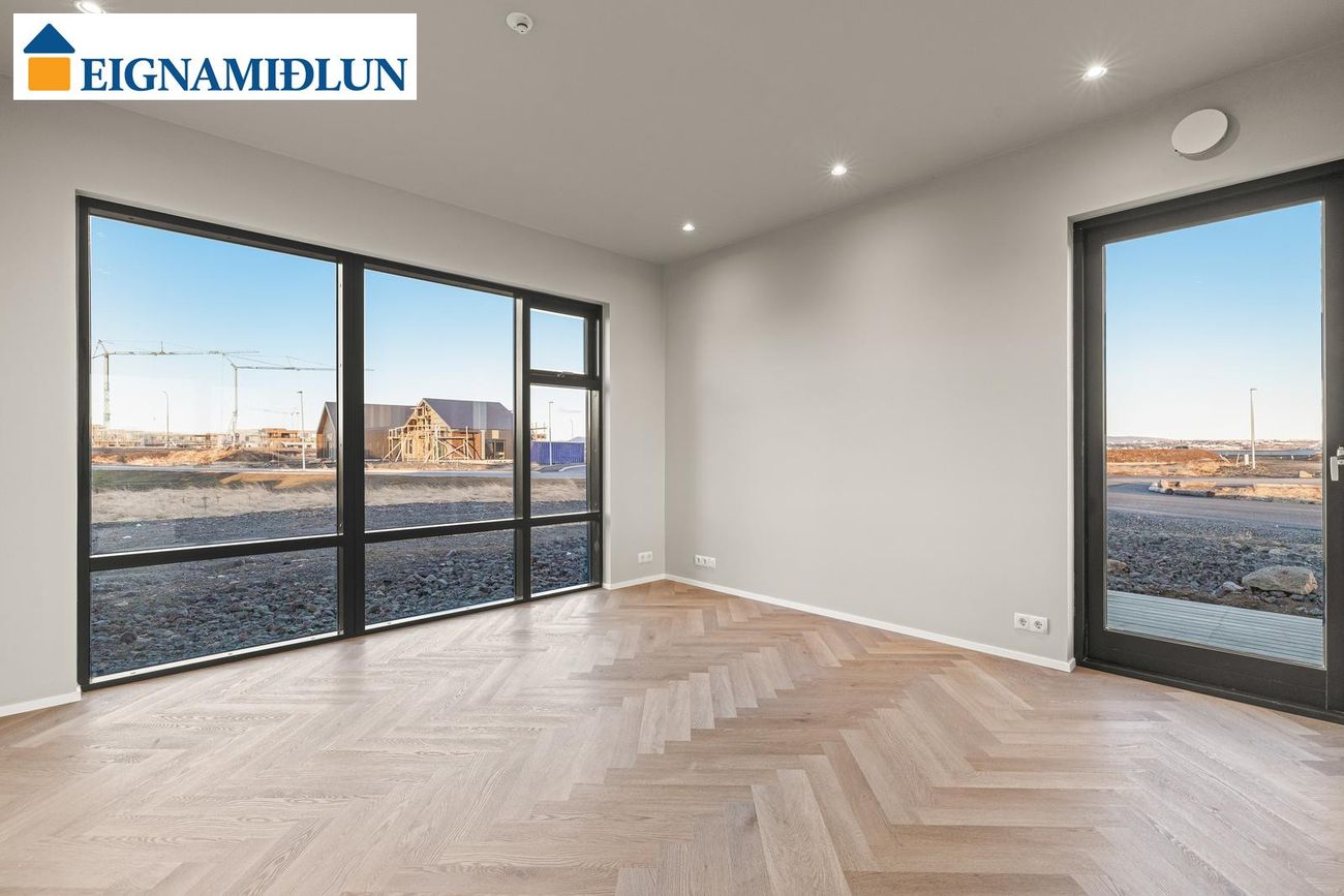 Útveggir: Staðsteypt, einangrað að innan. Gólfefni: Parket og flísar. Gluggar: Ál/tré kerfi með K-gleri. Þak: Báruklætt timburvirki.
