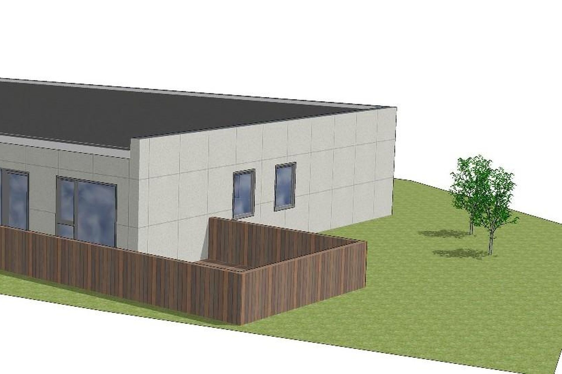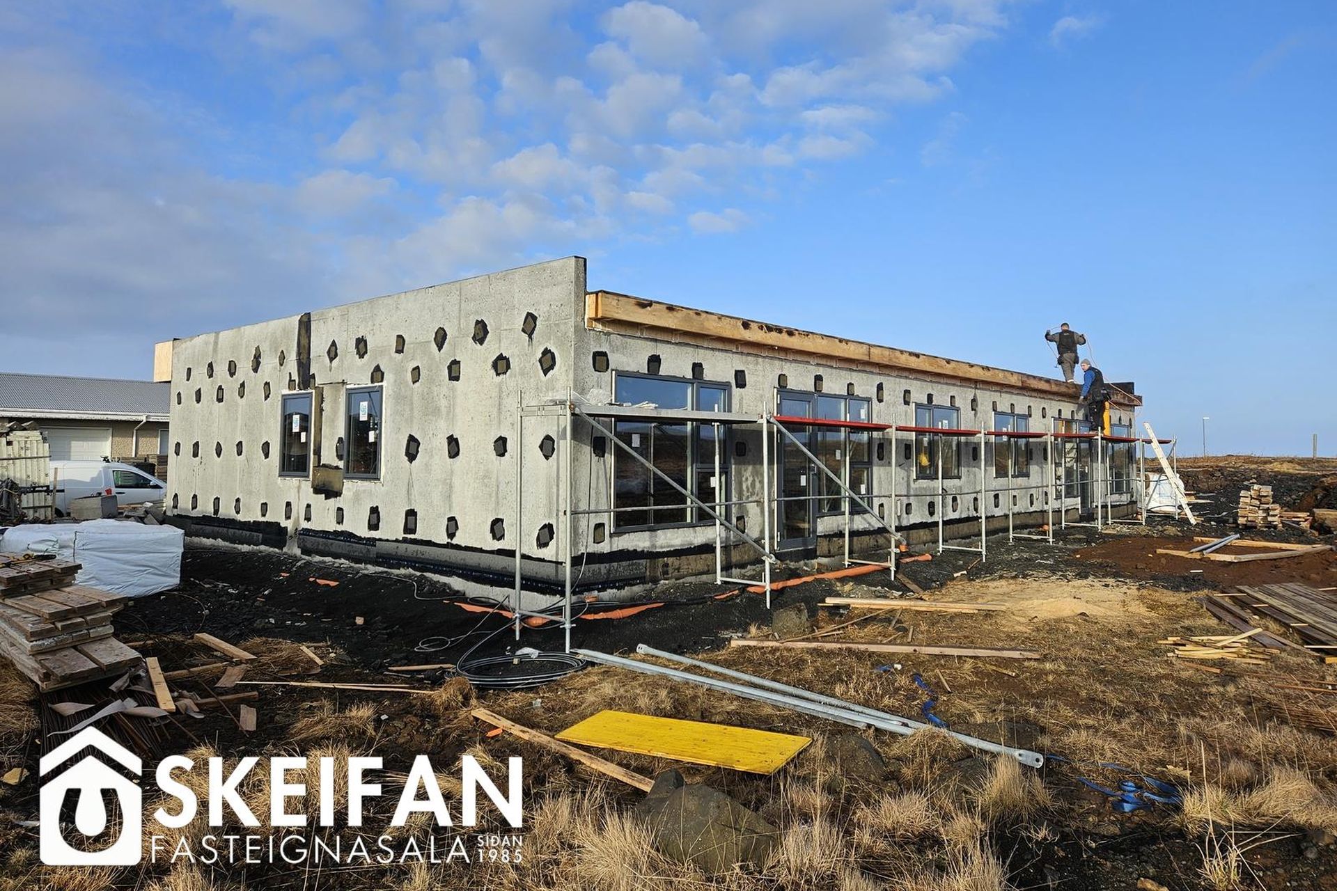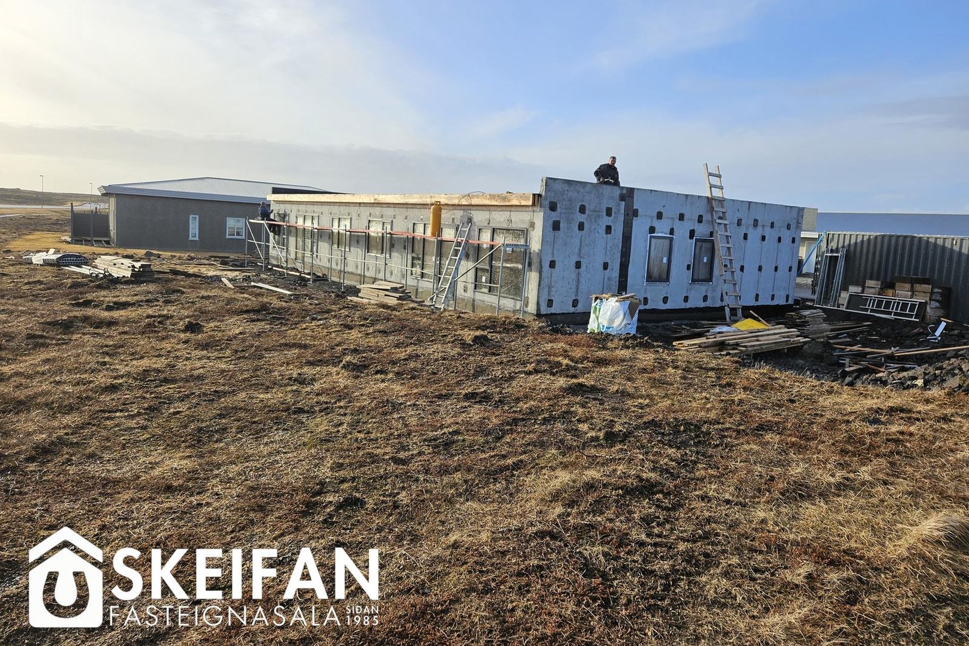 Ytra byrði og lóð:Húsið er einangrað að utan með 100 mm steinull og klætt með blöndu af steinfíberplötum og panelvið.