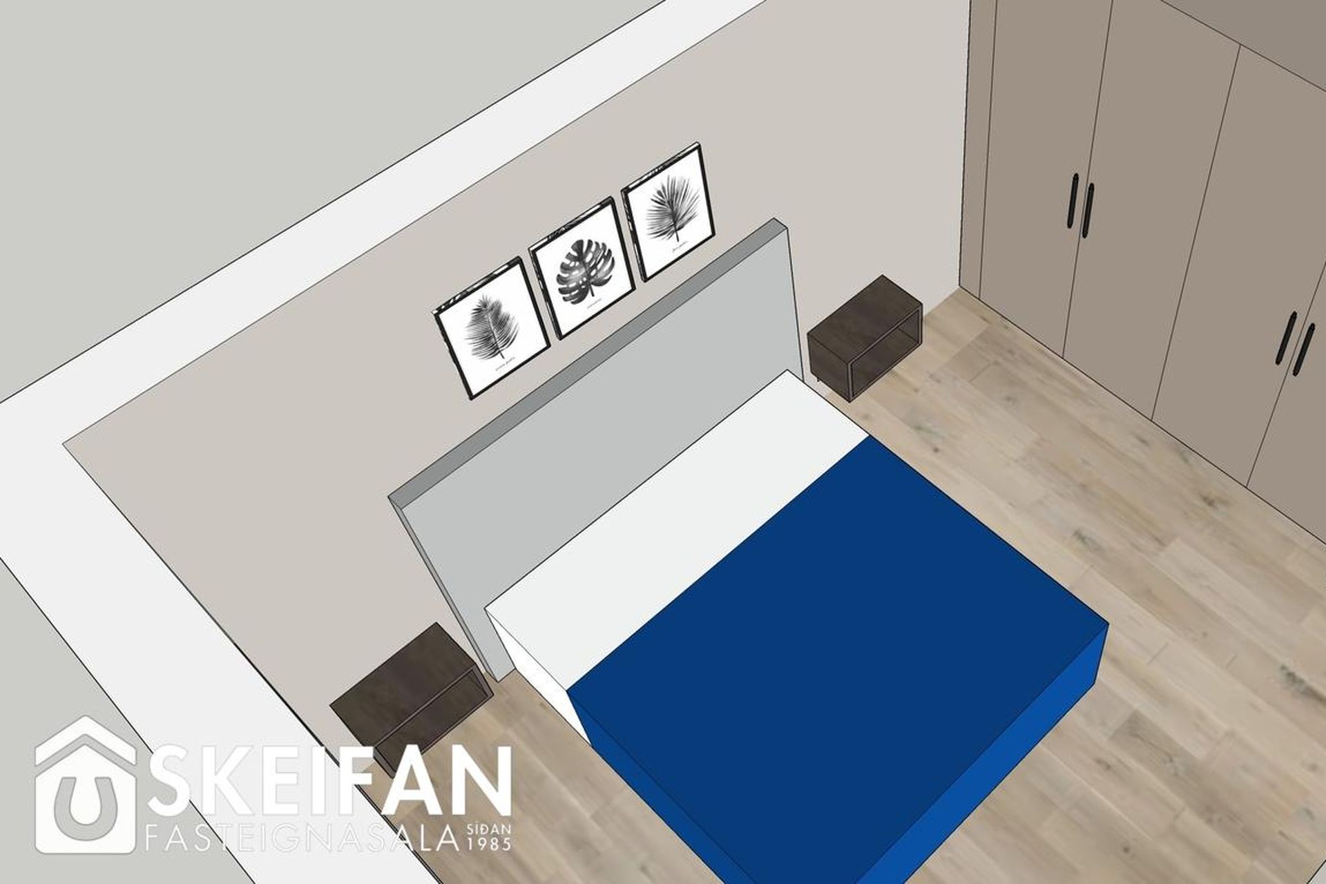 Svefnherbergi: Þrjú rúmgóð svefnherbergi, öll með fataskápum.