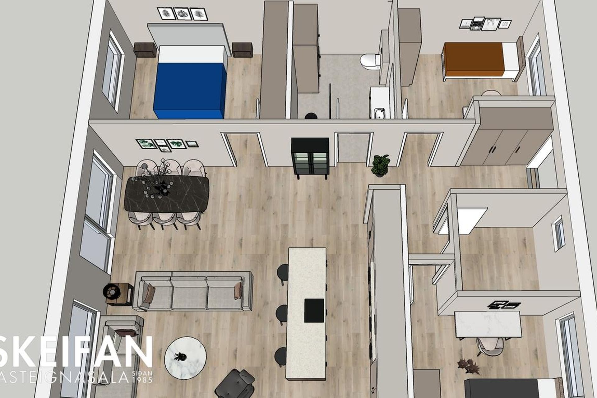 **Glæsilegt efnisval og stórt alrými.