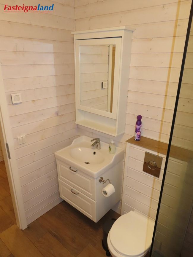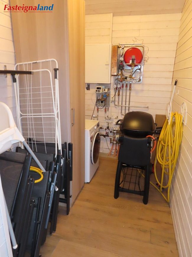 Geymsla: Gengið inn af sólpalli. Flísalögð með góðu skápaplássi.