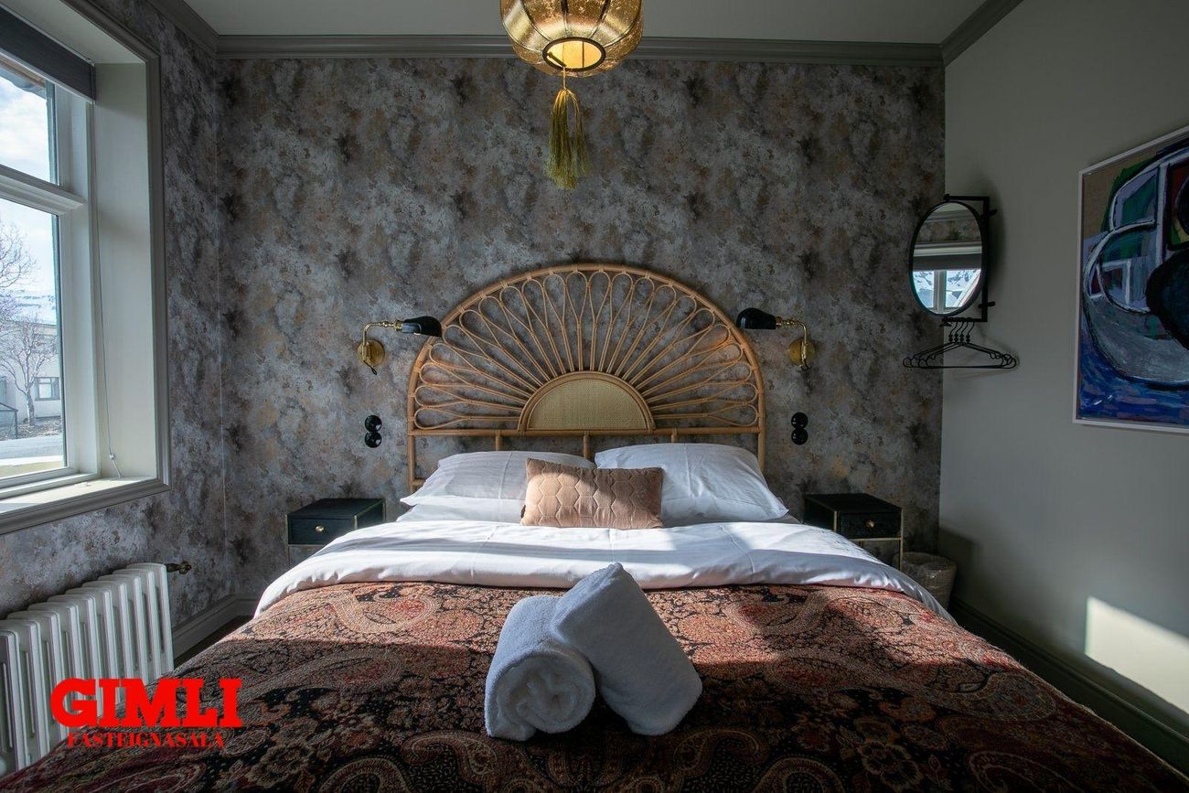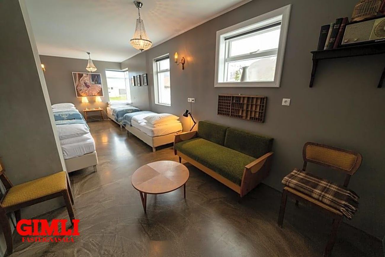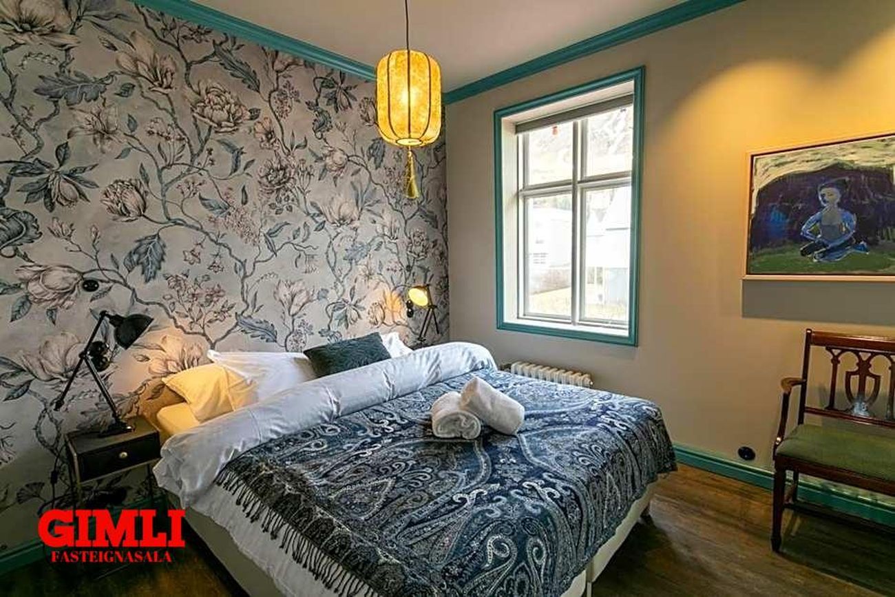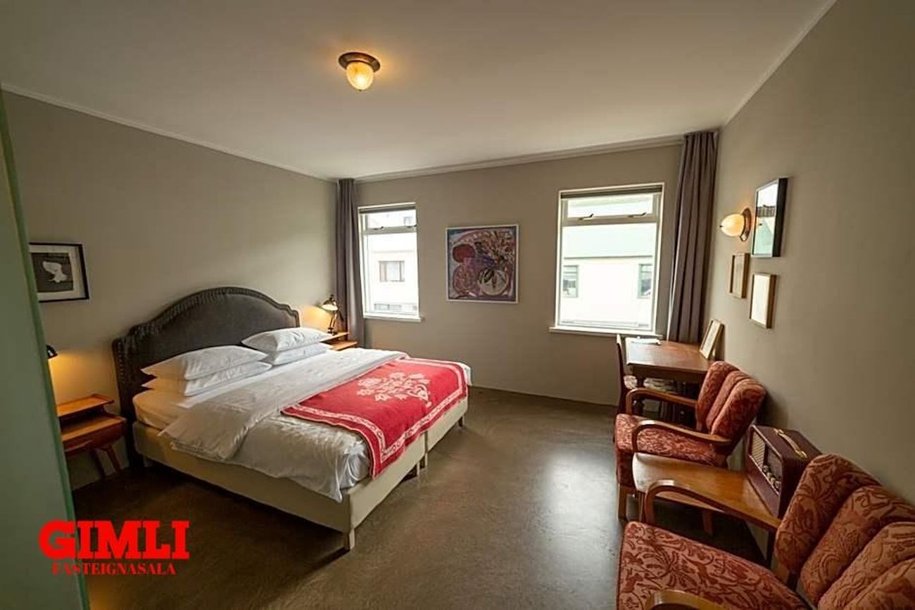 NÁNARI LÝSING:Í hótelinu eru 17 herbergi, fyrir samtals 38 manns. Einnig eru 2 starfsmannaíbúðir fyrir alls 5 starfsmenn og 70 fm rými sem hægt er að nýta sem geymslu/skrifstofu. Einstök lúxusíbúð hefur verið innréttuð í hluta hótelhúsnæðisins, stórt alrými með eldhúsi, setu- og borðstofu. Tvö svefnherbergi, bæði með baðherbergi m.m. Margir nýtingarmöguleikar.