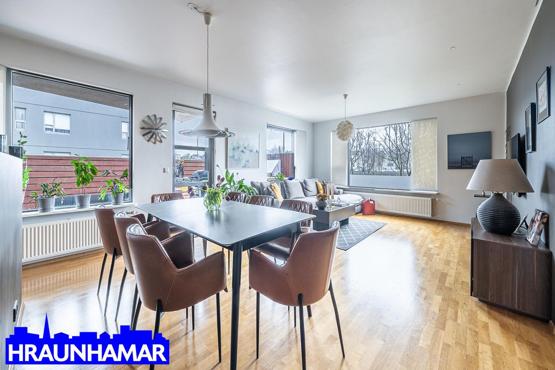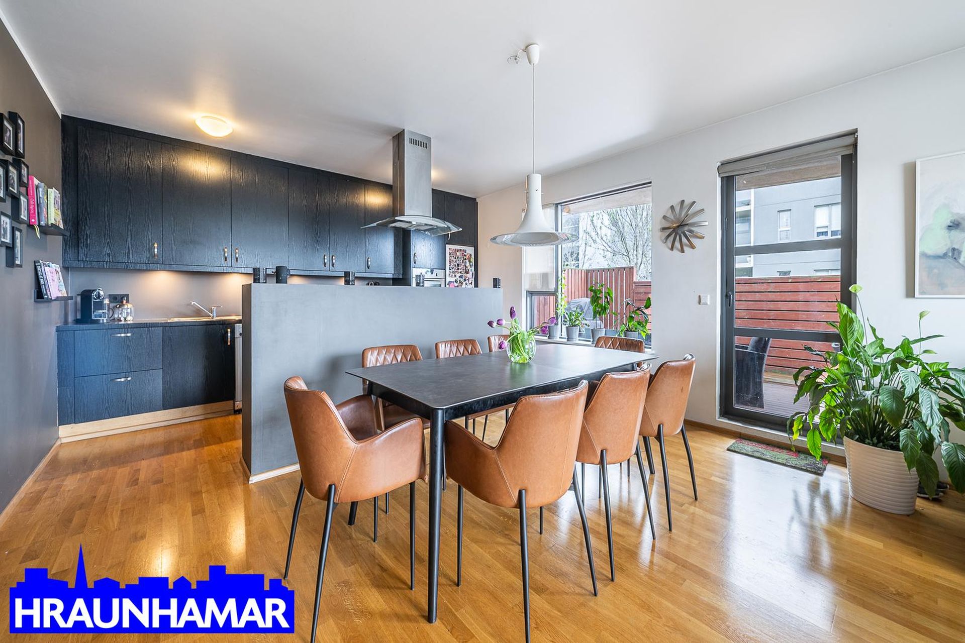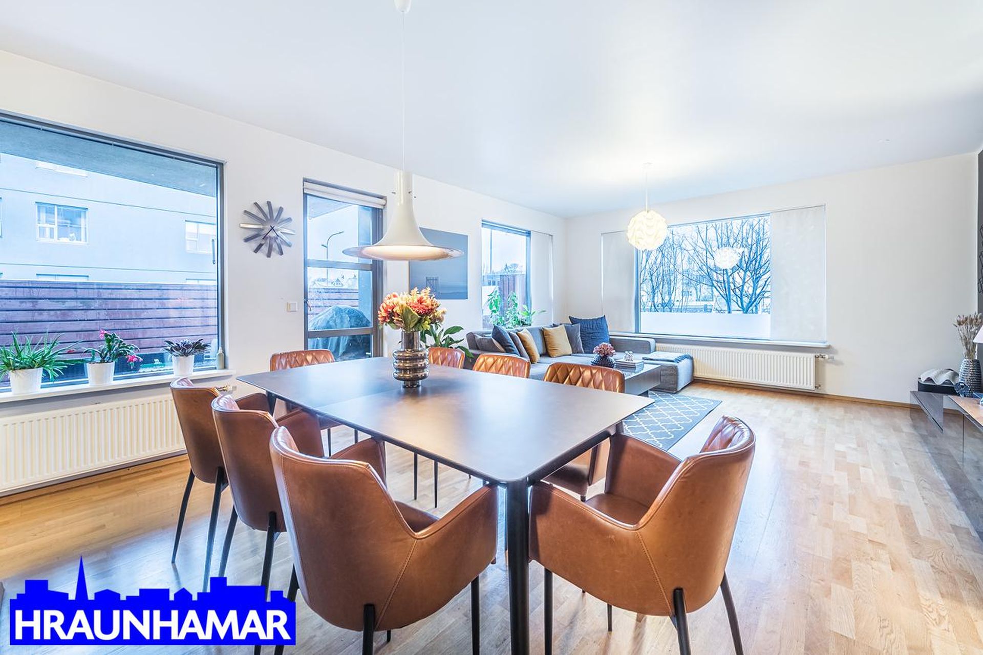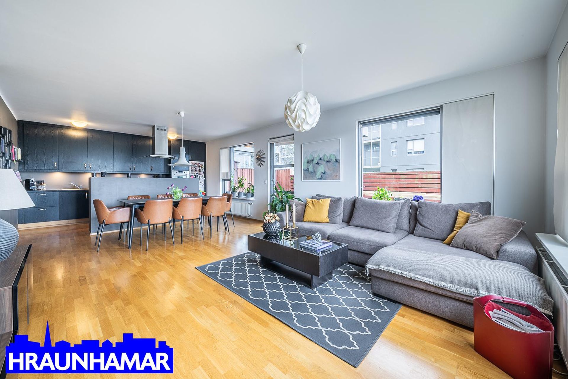 Hraunhamar kynnir fallega endaíbúð með sérinngangi á fyrstu hæð í þessu vinsæla fjölbýlishúsi við Lækinn í Hafnarfirði. Fallegt útsýni yfir Lækinn. Íbúðin er 126,6 fm auk, gott aðgengi.Glæsilegt útsýniGott aðgengiFrábær staðsetningSkipting eignarinnar: Forstofa, hol, 3 svefnherbergi, (eitt herbergið er opið að hluta), stofa, borðstofa, eldhús, baðherbergi, geymsla og verönd, auk reglubundinnar sameignar.Nánari lýsing: Forstofa með fataskápum, innaf forstofunni er þvottahús með innréttingu. Fínt svefnherbergi með fataskáp.Annað herbergi opið til að hluta. Rúmgott hjónaherbergi með fataskápum,Baðherbergi nýlega uppgert flísalagt í hólf og gólf, með innréttingu, upphengt salerni, og rúmgóðri sturtu. Opið eldhús með fallegri innréttingu,Gengið frá stofu út á sérlega rúmgóða verönd með skjólgirðingu.Fallegt útsýni yfir lækinn.Gólfefni eru eikarparket og flísar.Auk þess er fín geymsla í jarðhæðinni, auk reglubundinnar sameignar.Þetta falleg eign sem vert er að skoða.Frábært útsýni yfir lækinn og miðbæ Hafnarfjarðar. Nánari upplýsingar veitir Hlynur Halldórsson löggiltur fasteignasali í síma 698-2603 eða í gegnum tölvupóst á Skoðunarskylda: Í lögum um fasteignakaup nr. 40/2002 er kveðið á um ríka skoðunarskyldu kaupenda á fasteignum. Hraunhamar fasteignasala vill benda væntanlegum kaupendum á að kynna sér vel ástand fasteigna fyrir kauptilboðsgerð og ef þurfa þykir að leita til sérfræðinga fyrir nánari ástandsskoðun.Gjöld sem kaupandi þarf að standa straum af vegna kaupanna:1. Stimpilgjald af kaupsamningi, fyrstu kaup (0,4%), almenn kaup (0,8%), lögaðilar (1,6%) af heildarfasteignamati.2. Þinglýsingargjald af kaupsamningi, veðskuldabréfi, mögulegu veðleyfi o.fl. – kr. 2.700 kr. af hverju skjali.3. Lántökugjald lánastofnunar er skv. verðskrá viðkomandi lánastofnunar.4. Umsýslugjald til fasteignasölu skv. þjónustusamningi Hraunhamar er elsta fasteignasala Hafnarfjarðar, stofnuð 1983 og fagnar því 40 ára afmæli á árinu 2023. Hraunhamar, í fararbroddi í 40 ár. – Hraunhamar.isSmelltu hér til að fá frítt söluverðmat fyrir þína eign.