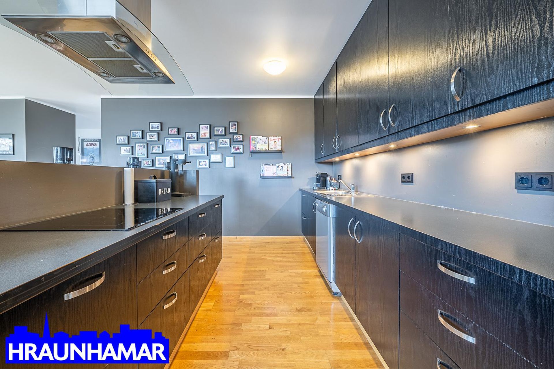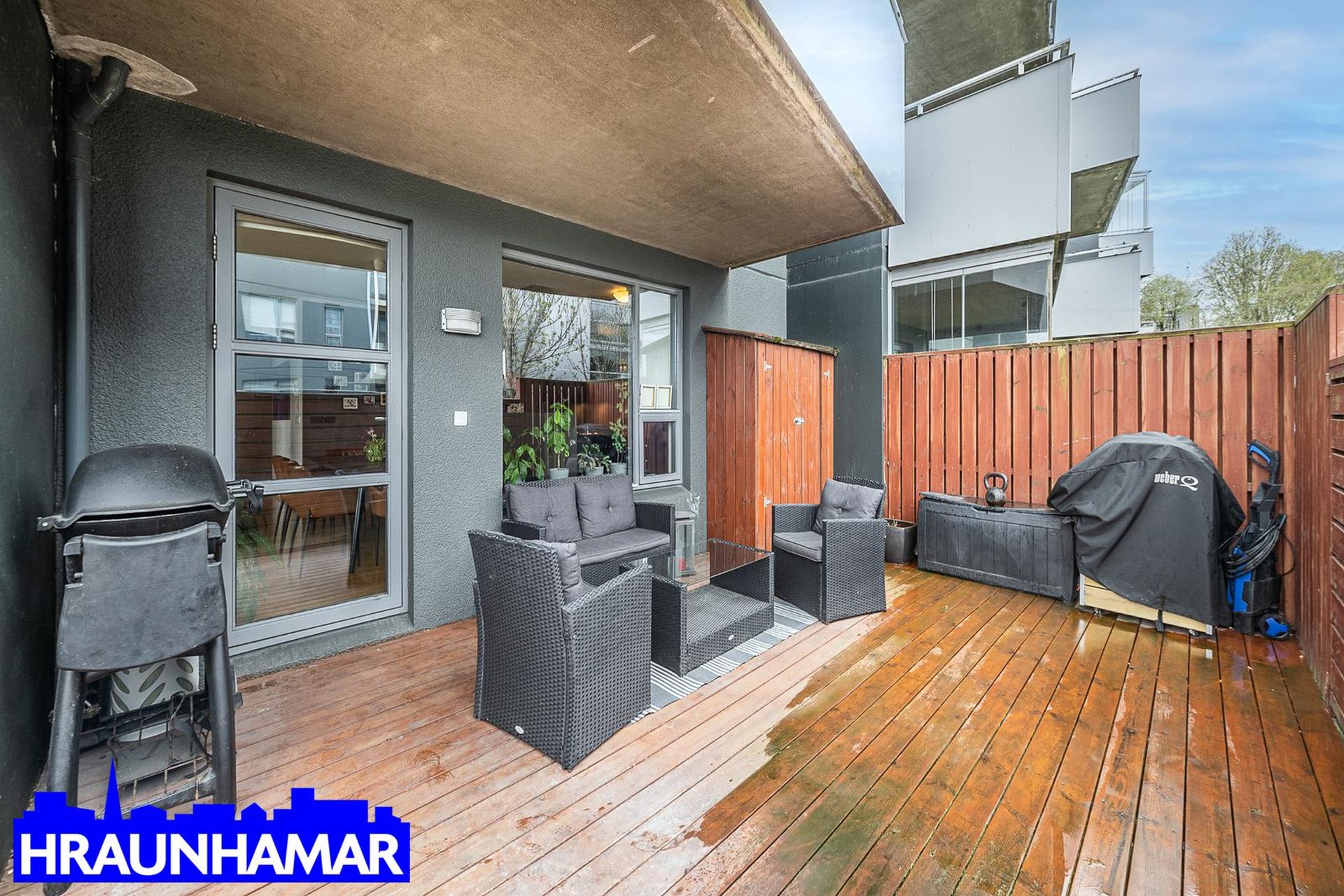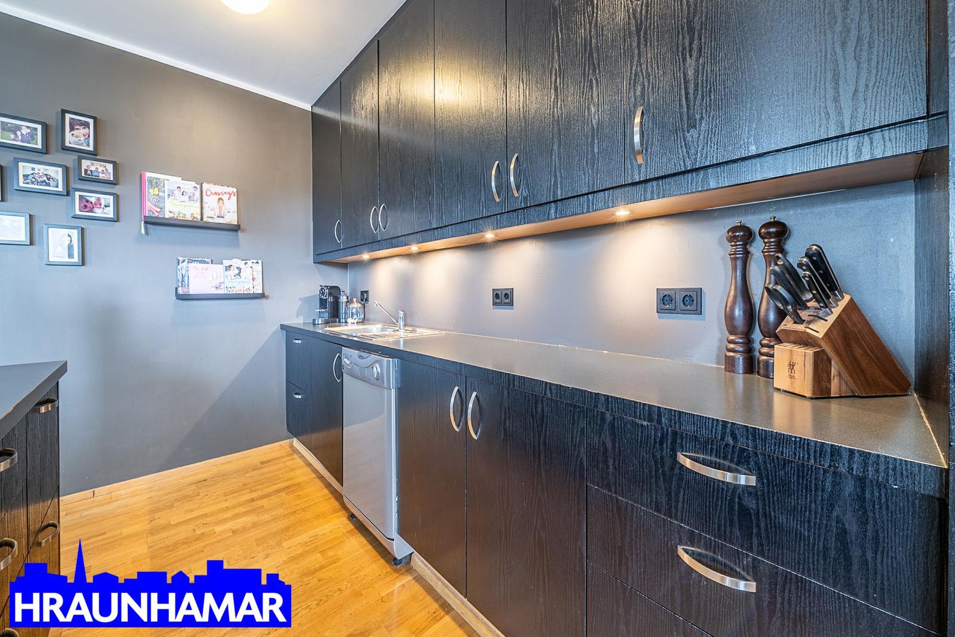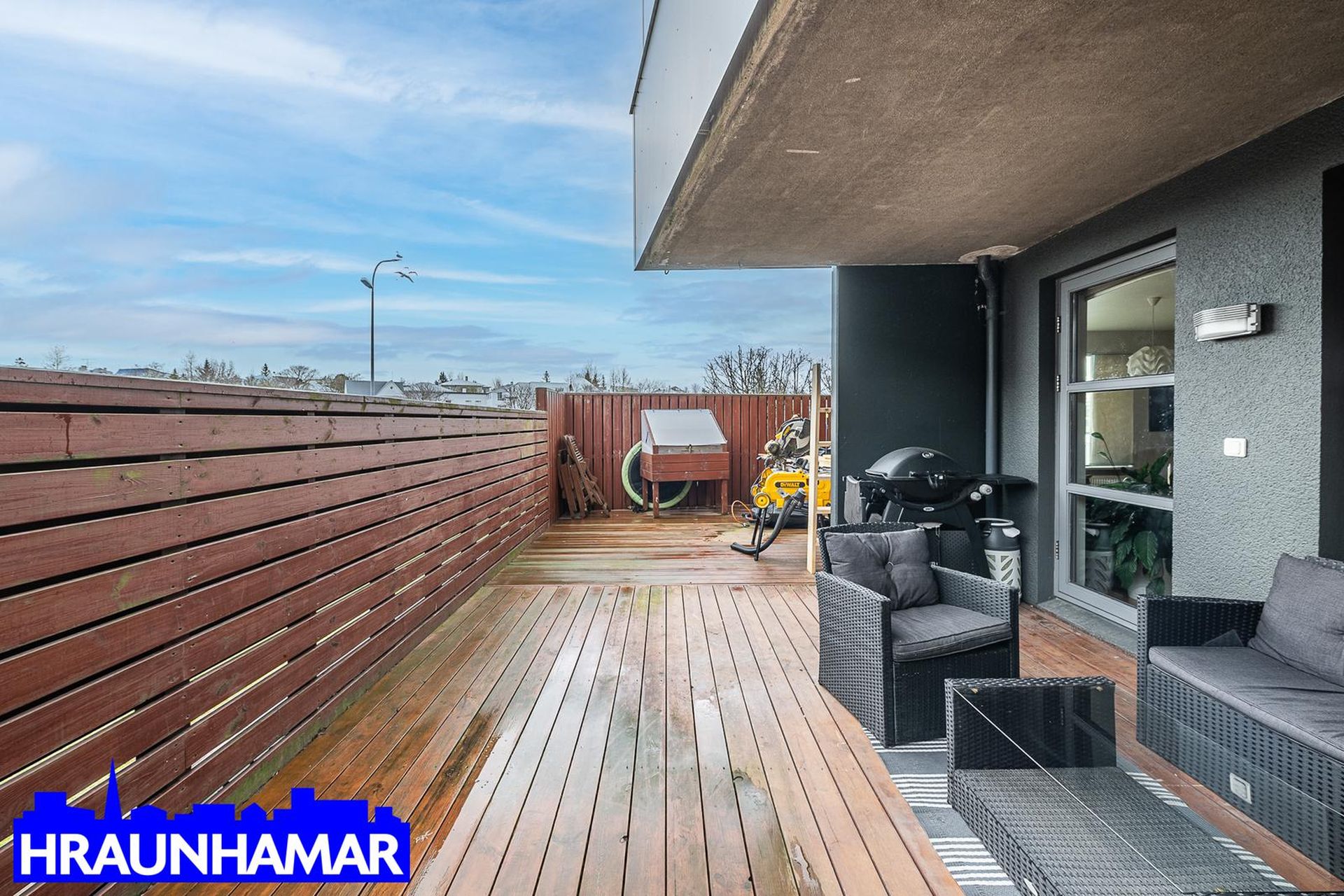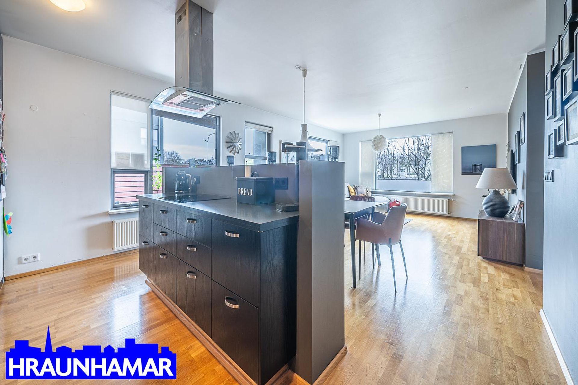 Hraunhamar kynnir fallega endaíbúð með sérinngangi á fyrstu hæð í þessu vinsæla fjölbýlishúsi við Lækinn í Hafnarfirði. Fallegt útsýni yfir Lækinn. Íbúðin er 126,6 fm auk, gott aðgengi.Glæsilegt útsýniGott aðgengiFrábær staðsetningSkipting eignarinnar: Forstofa, hol, 3 svefnherbergi, (eitt herbergið er opið að hluta), stofa, borðstofa, eldhús, baðherbergi, geymsla og verönd, auk reglubundinnar sameignar.Nánari lýsing: Forstofa með fataskápum, innaf forstofunni er þvottahús með innréttingu. Fínt svefnherbergi með fataskáp.Annað herbergi opið til að hluta. Rúmgott hjónaherbergi með fataskápum,Baðherbergi nýlega uppgert flísalagt í hólf og gólf, með innréttingu, upphengt salerni, og rúmgóðri sturtu. Opið eldhús með fallegri innréttingu,Gengið frá stofu út á sérlega rúmgóða verönd með skjólgirðingu.Fallegt útsýni yfir lækinn.Gólfefni eru eikarparket og flísar.Auk þess er fín geymsla í jarðhæðinni, auk reglubundinnar sameignar.Þetta falleg eign sem vert er að skoða.Frábært útsýni yfir lækinn og miðbæ Hafnarfjarðar. Nánari upplýsingar veitir Hlynur Halldórsson löggiltur fasteignasali í síma 698-2603 eða í gegnum tölvupóst á Skoðunarskylda: Í lögum um fasteignakaup nr. 40/2002 er kveðið á um ríka skoðunarskyldu kaupenda á fasteignum. Hraunhamar fasteignasala vill benda væntanlegum kaupendum á að kynna sér vel ástand fasteigna fyrir kauptilboðsgerð og ef þurfa þykir að leita til sérfræðinga fyrir nánari ástandsskoðun.Gjöld sem kaupandi þarf að standa straum af vegna kaupanna:1. Stimpilgjald af kaupsamningi, fyrstu kaup (0,4%), almenn kaup (0,8%), lögaðilar (1,6%) af heildarfasteignamati.2. Þinglýsingargjald af kaupsamningi, veðskuldabréfi, mögulegu veðleyfi o.fl. – kr. 2.700 kr. af hverju skjali.3. Lántökugjald lánastofnunar er skv. verðskrá viðkomandi lánastofnunar.4. Umsýslugjald til fasteignasölu skv. þjónustusamningi Hraunhamar er elsta fasteignasala Hafnarfjarðar, stofnuð 1983 og fagnar því 40 ára afmæli á árinu 2023. Hraunhamar, í fararbroddi í 40 ár. – Hraunhamar.isSmelltu hér til að fá frítt söluverðmat fyrir þína eign.