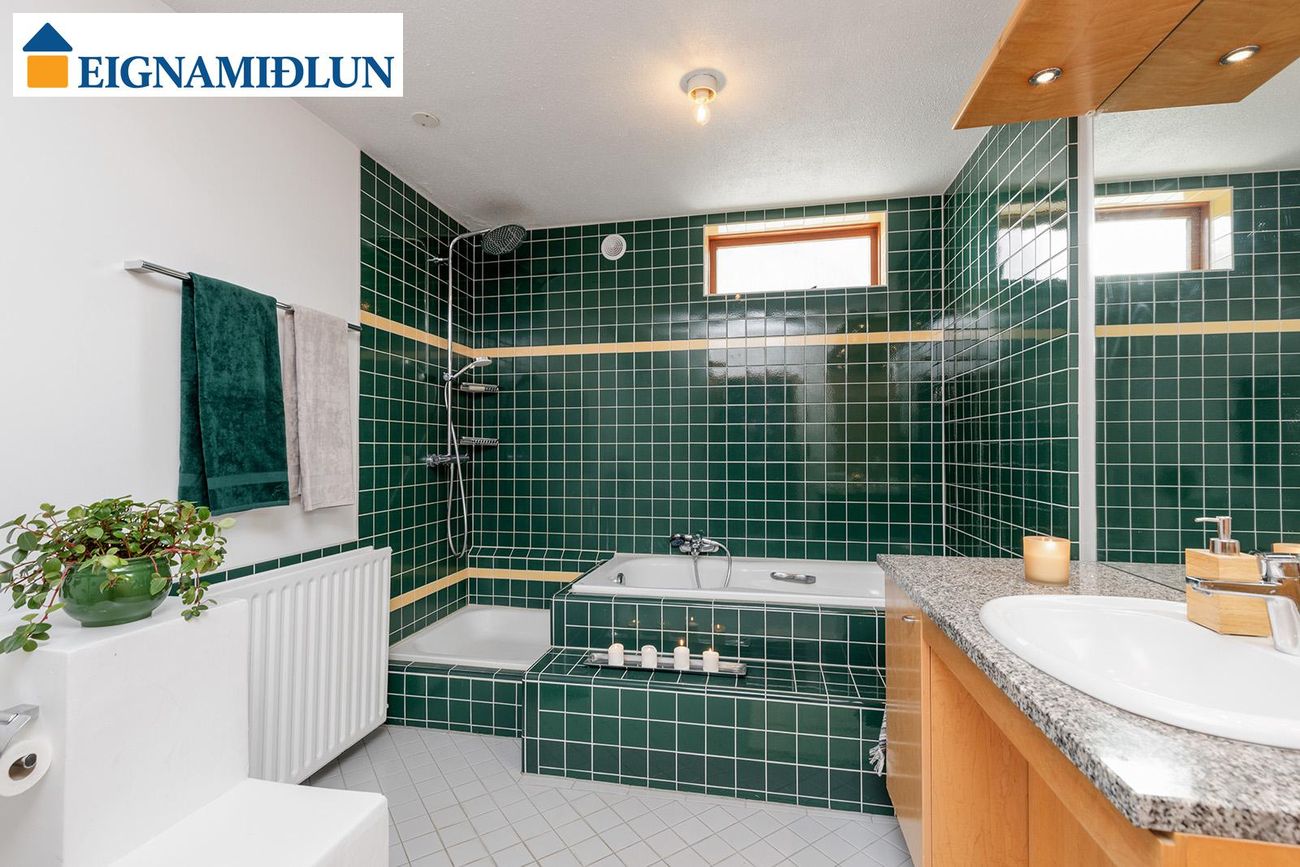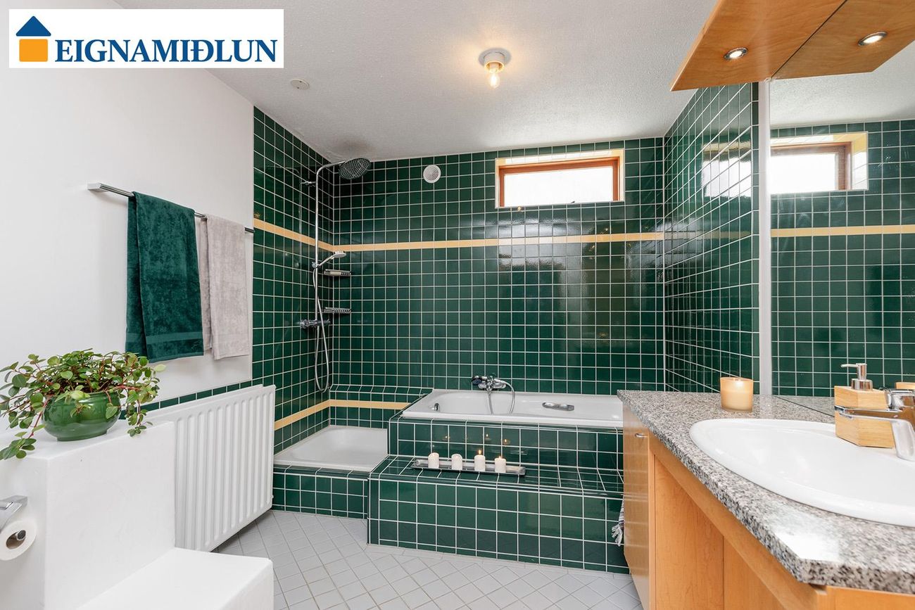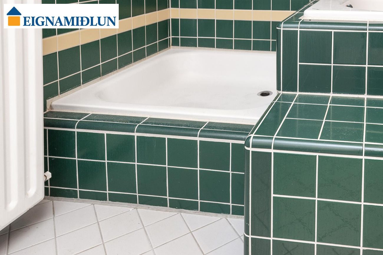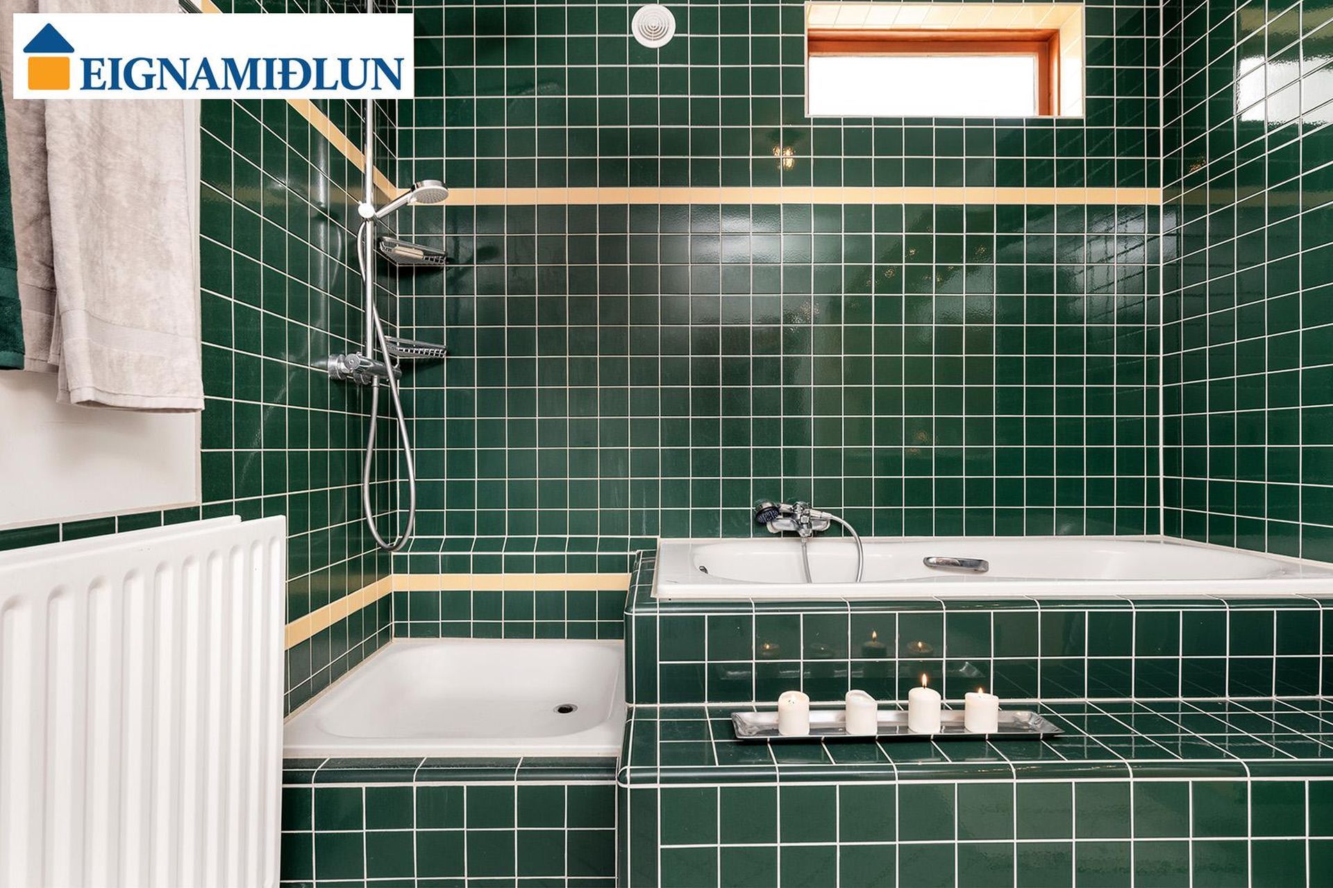 Baðherbergi: Baðherbergi er flísalagt, var yfirfarið og standsett fyrir fjórum árum síðan. Baðkar og sturta. Innrétting með granítborðplötu.