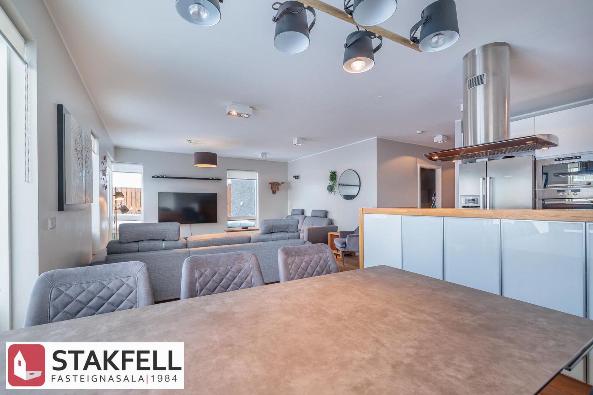 rúmgott opið rými sem skiptist í
