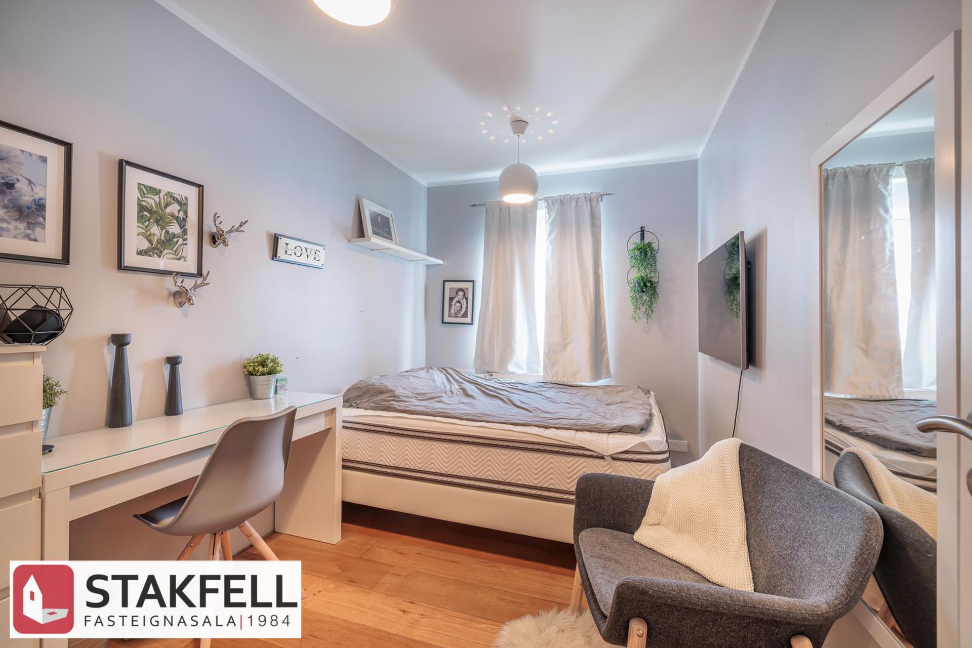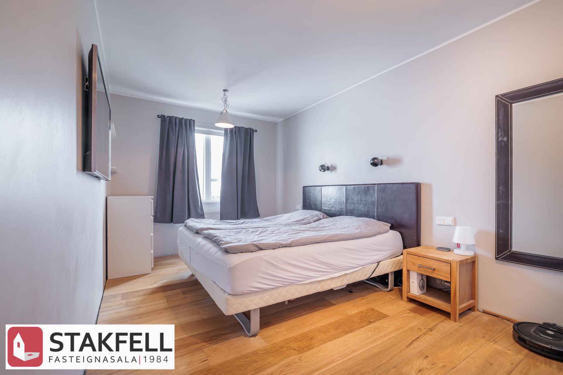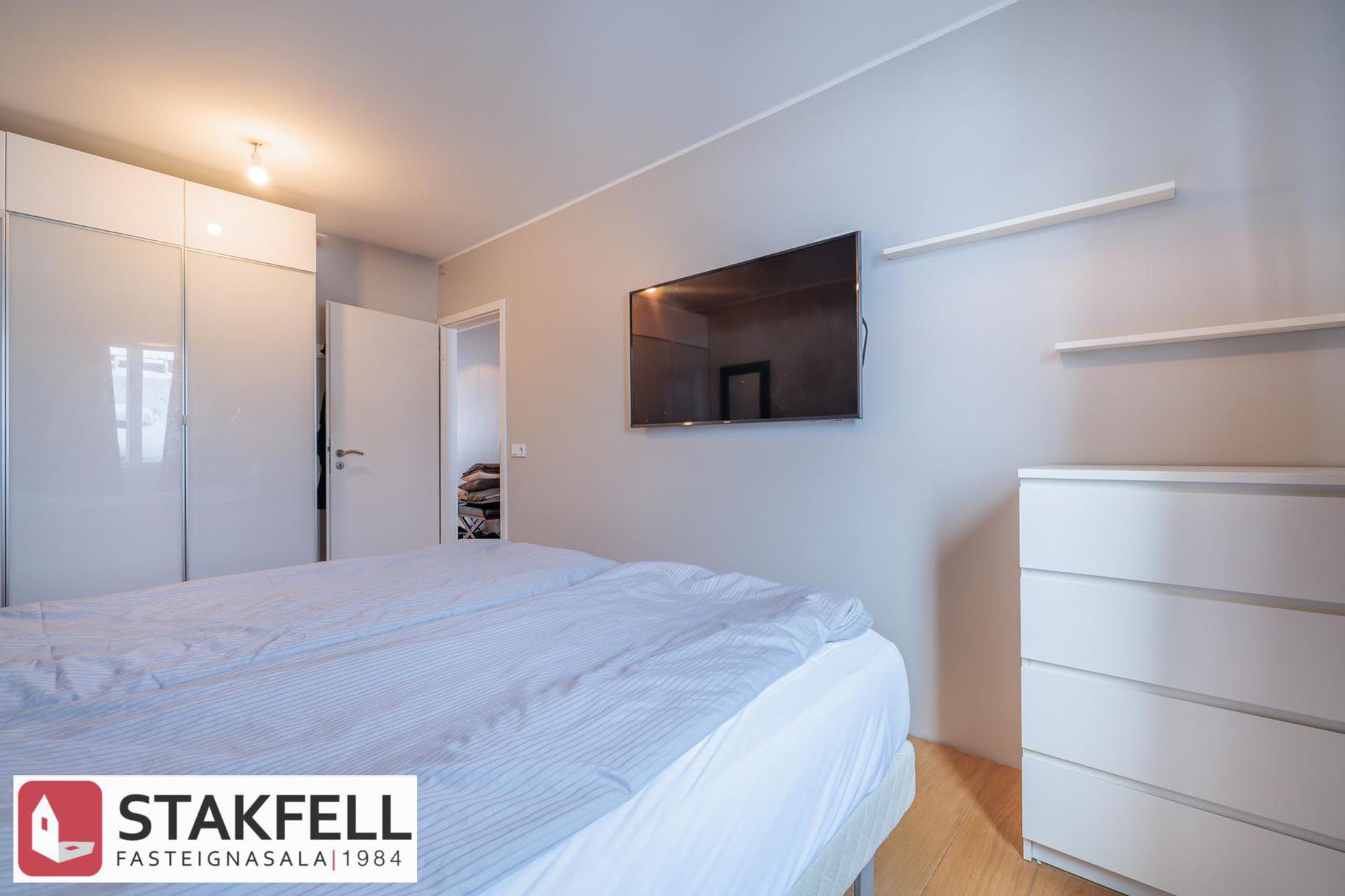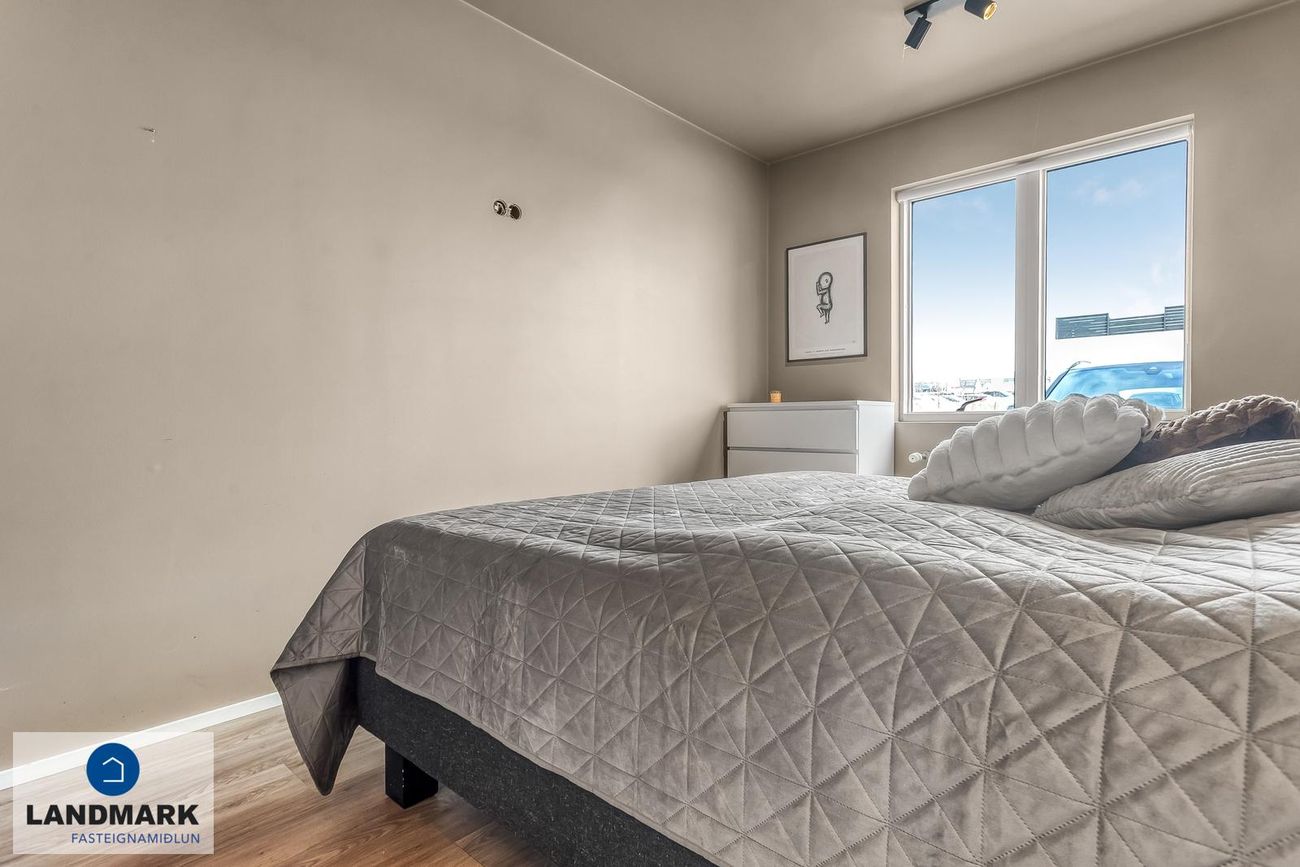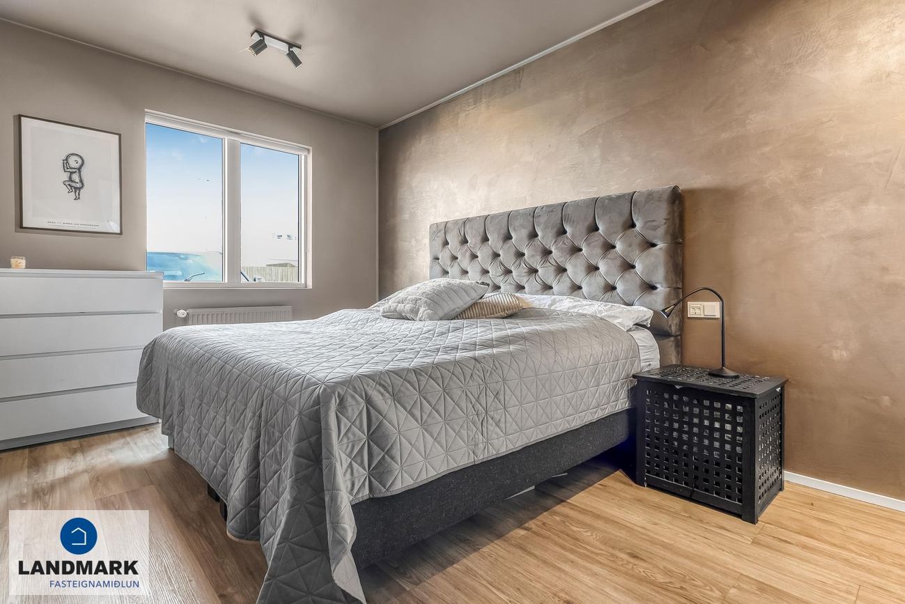 Þrjú rúmgóð svefnherbergi, stór fataskápur í hjónaherbergi.