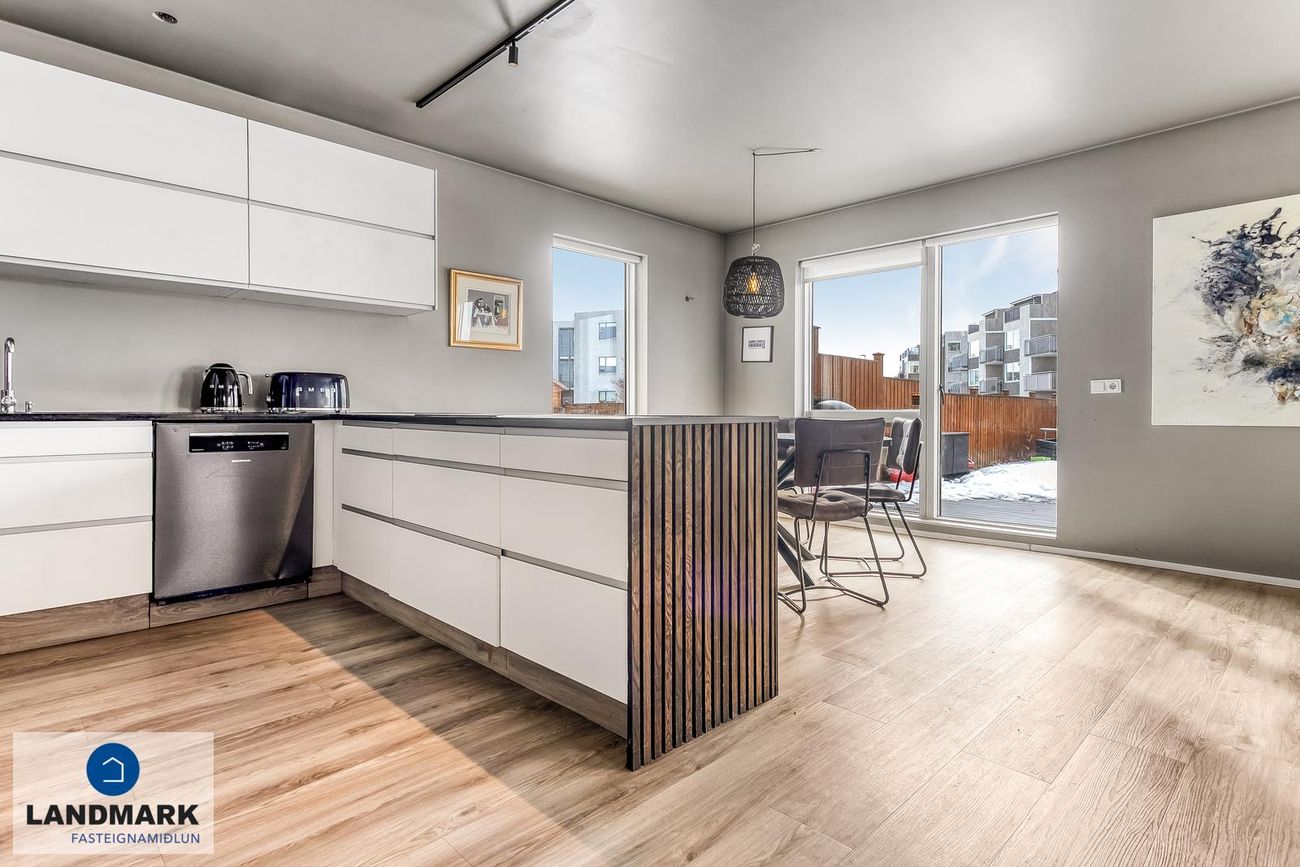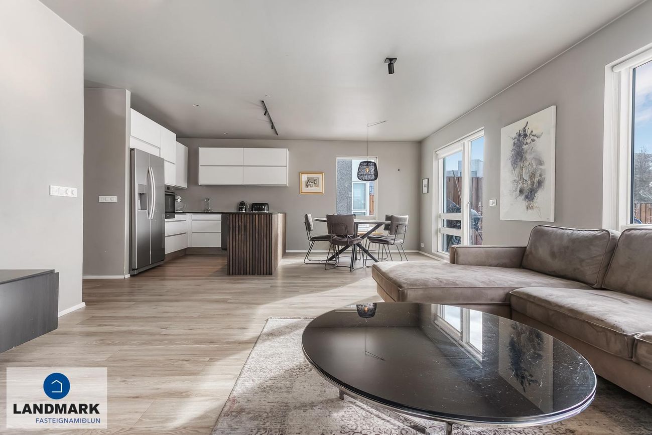 Virkilega falleg eign á mjög vinsælum stað þar sem stutt er í alla helstu þjónustu, göngufæri frá skóla og leikskóla.