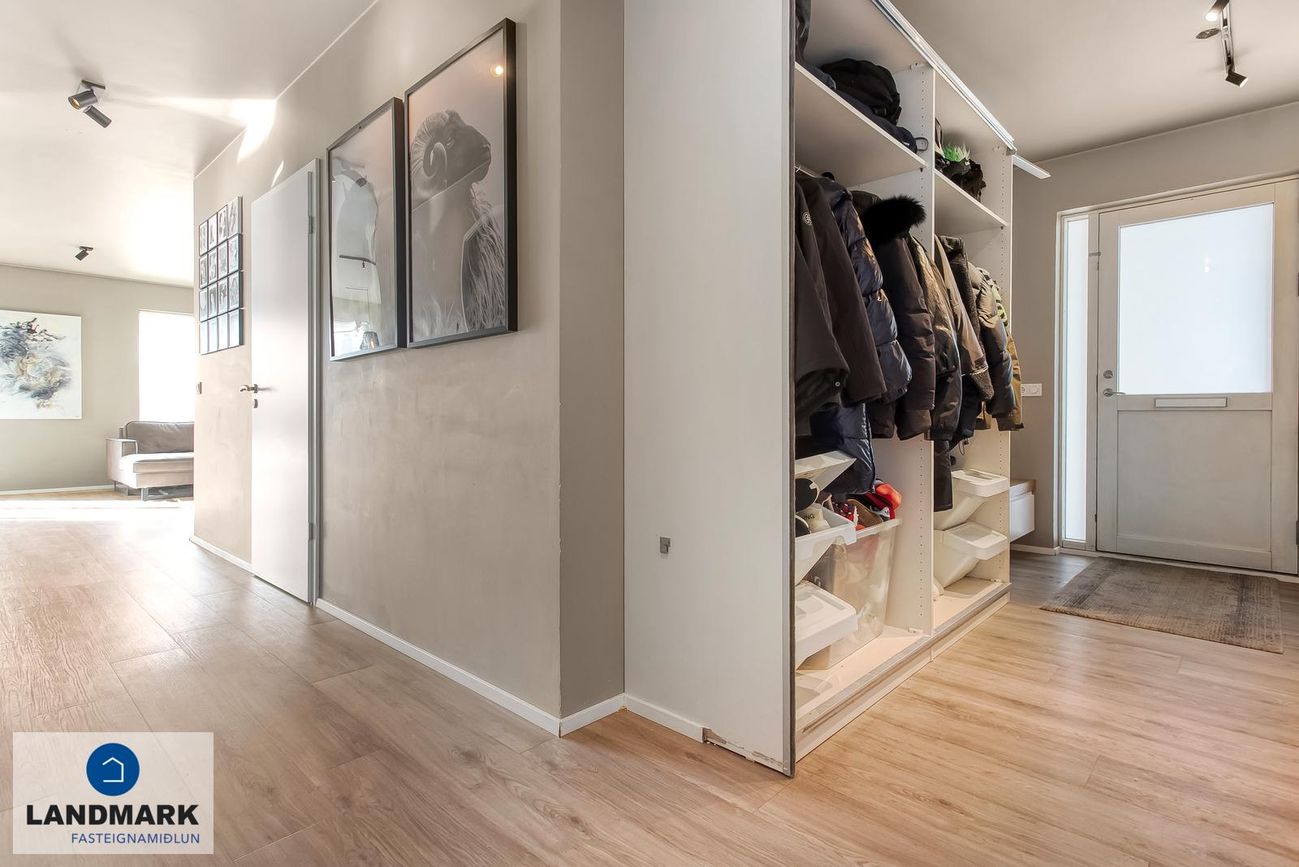LANDMARK fasteignamiðlun ehf. og Andri Sigurðsson Löggiltur fasteignasali (s: 690 3111 / andri@landmark.is) og félagsmaður í Félagi fasteignasala kynna í einkasölu: Um er að ræða virkilega fallega 4ra herbergja neðri sérhæð með sérinngangi í þessu vinsæla og barngóða hverfi í Norðlingaholtinu í Reykjavík. Nýlega stækkaður og uppgerður pallur úr viðhaldsfríu GOVA plastefni. Eignin var endurnýjuð vorið 2022, gólfefni endurnýjuð, eldhúsi var breytt ásamt geymslunni, smíðuð var þvottahúseining fyrir þvottavél og þurrkara, ofn í forstofu hefur verið endurnýjaður. Íbúðin skiptist í forstofu, þrjú svefnherbergi, baðherbergi, þvottahús, tvær geymslur, eldhús, stofu og borðstofu. Frá stofu er unnt að ganga út pall sem snýr í suður og þaðan út í garð. Eigninni fylgir sérmerkt bílastæði. Virkilega góð staðsetning, innst í botnlanga. Skv. HMS er eignin skráð 124,8 fm og skiptist þannig að íbúðin sjálf er 117,6 fm ásamt 7,2 fm geymslu. Gólfhiti á baðherbergi.
