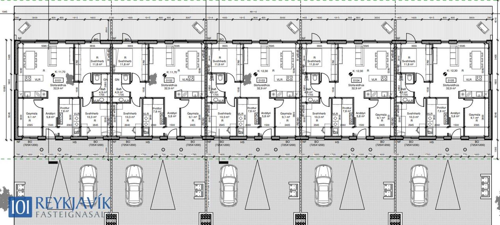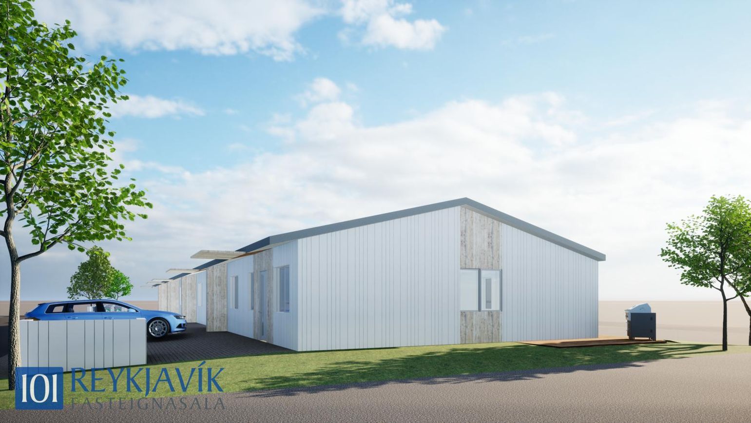 Verð kr. 55.600.000,-.Samkvæmt hönnun skiptist eignin í forstofu, tvö svefnherbergi, svefnherbergi/geymslu með glugga, þvottahús, baðherbergi með sturtu eða baði, stofa og eldhús í rúmgóðu alrými þar sem gengið er út á sólpall.