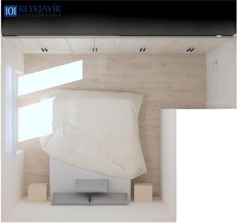 Svefnherbergi eru tvö, bæði með góðum fataskáp, parket á gólfi. Útgengt út á sólpall úr hjónaherbergi.