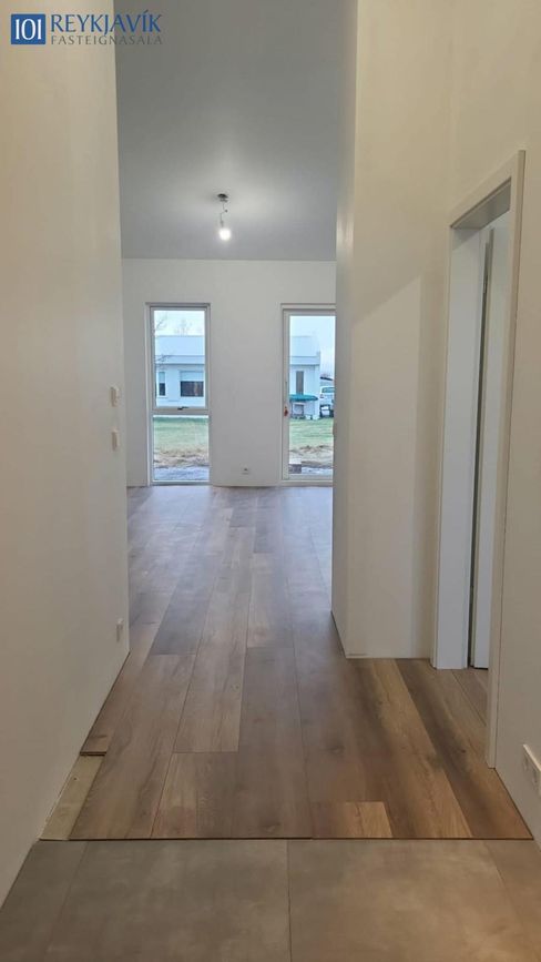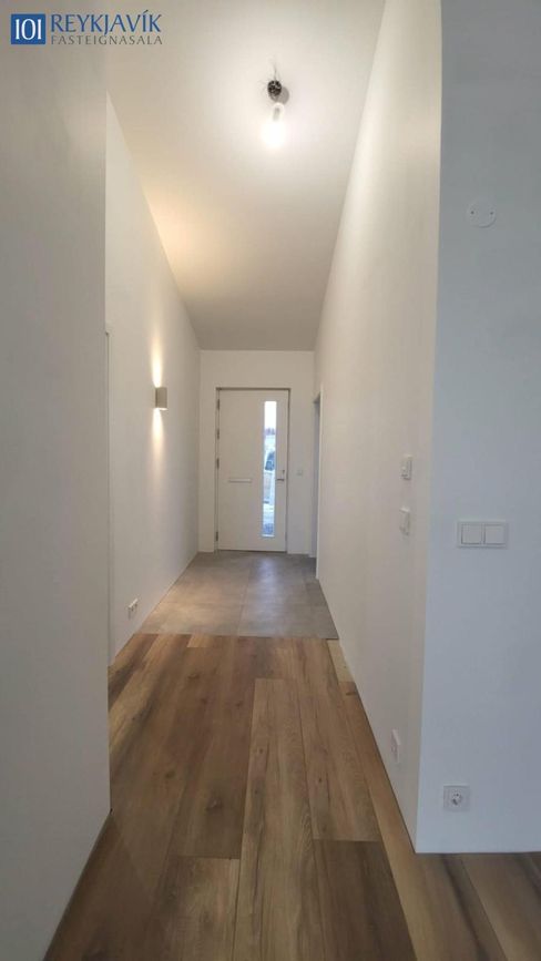 Nánari lýsing, afhending fullfrágengin að innan og utan:Forstofa er flísa- eða parketlögð. Þaðan er gengið inn í þvottahús, herbergi/geymslu og inn í alrými.