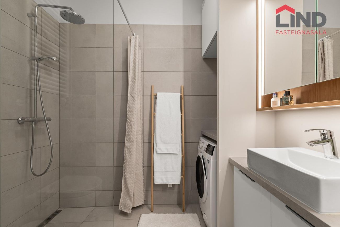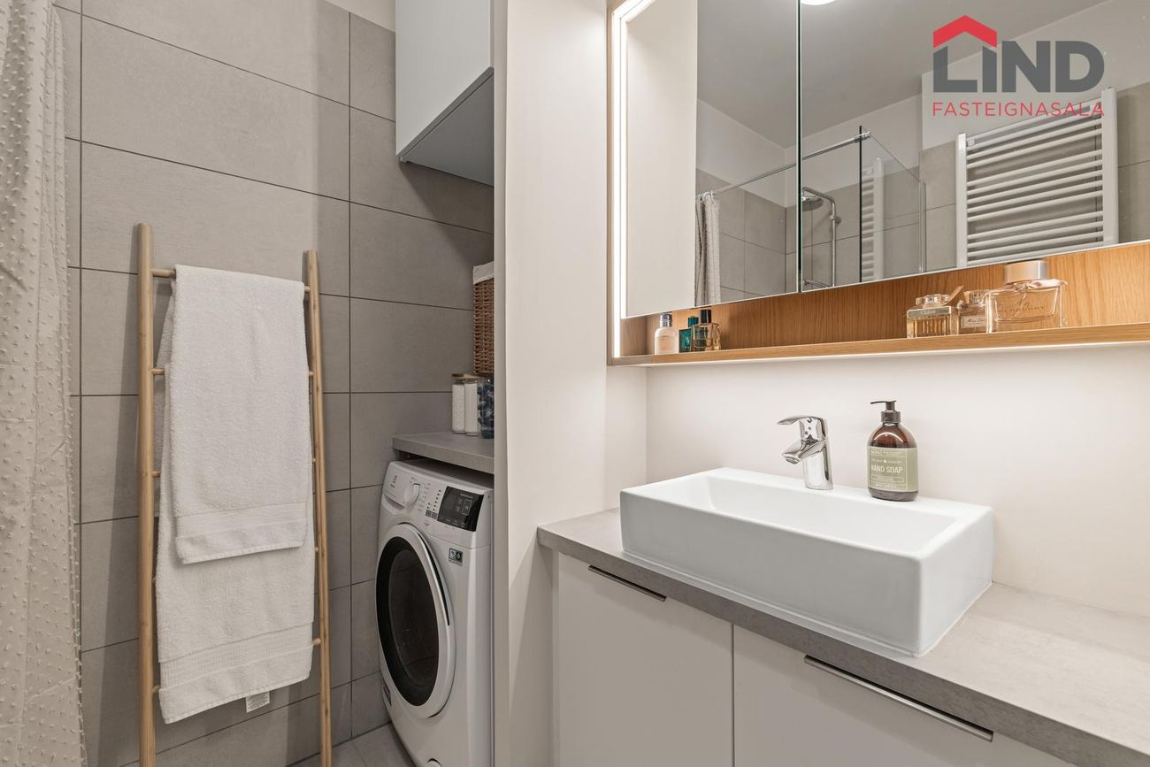Litir og samsetningar innréttinga og flísa voru valdar af Rut Káradóttur innanhússarkitekt.Geymsla: 13,4 fm, staðsett í sameign.