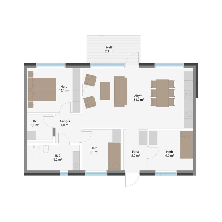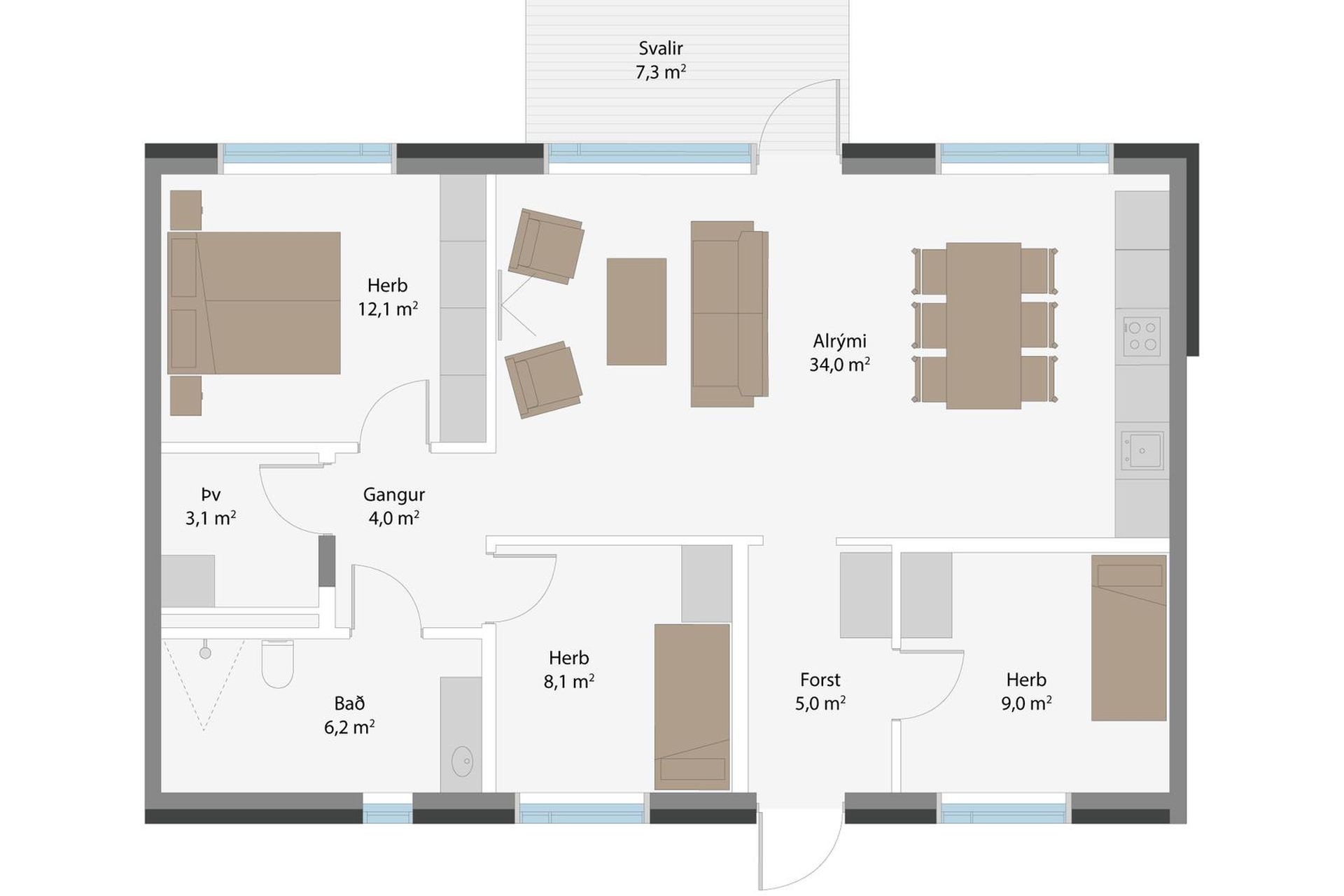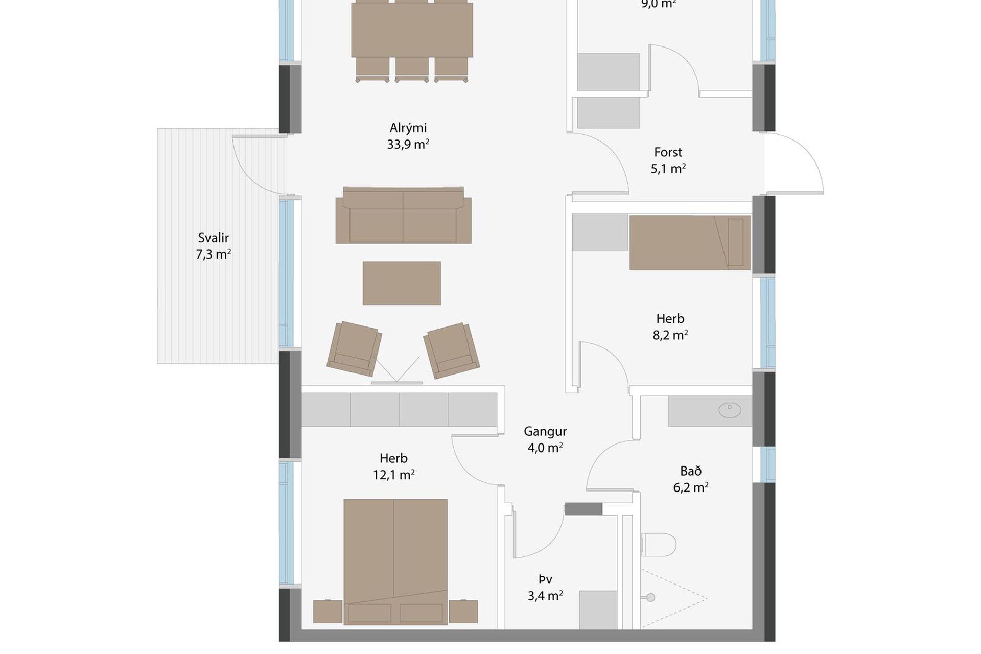 | 3 | 95,10 m² | 79.900.000 kr. 22. ágúst 2024 | 78.900.000 kr. 17. október 2024 |