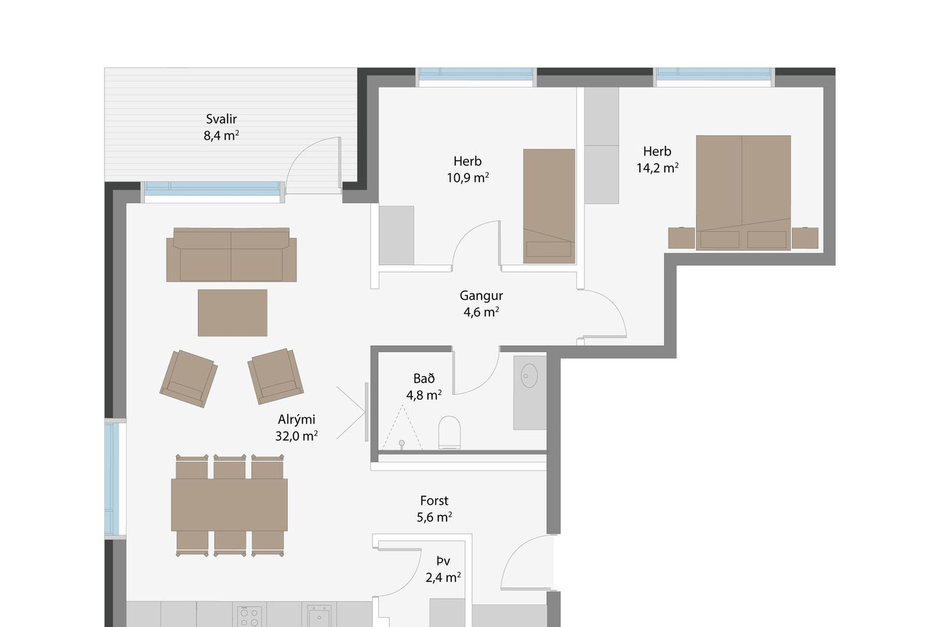| 4 | 116,10 m² | 99.900.000 kr. 7. ágúst 2025 | 98.900.000 kr. 9. febrúar 2026 |