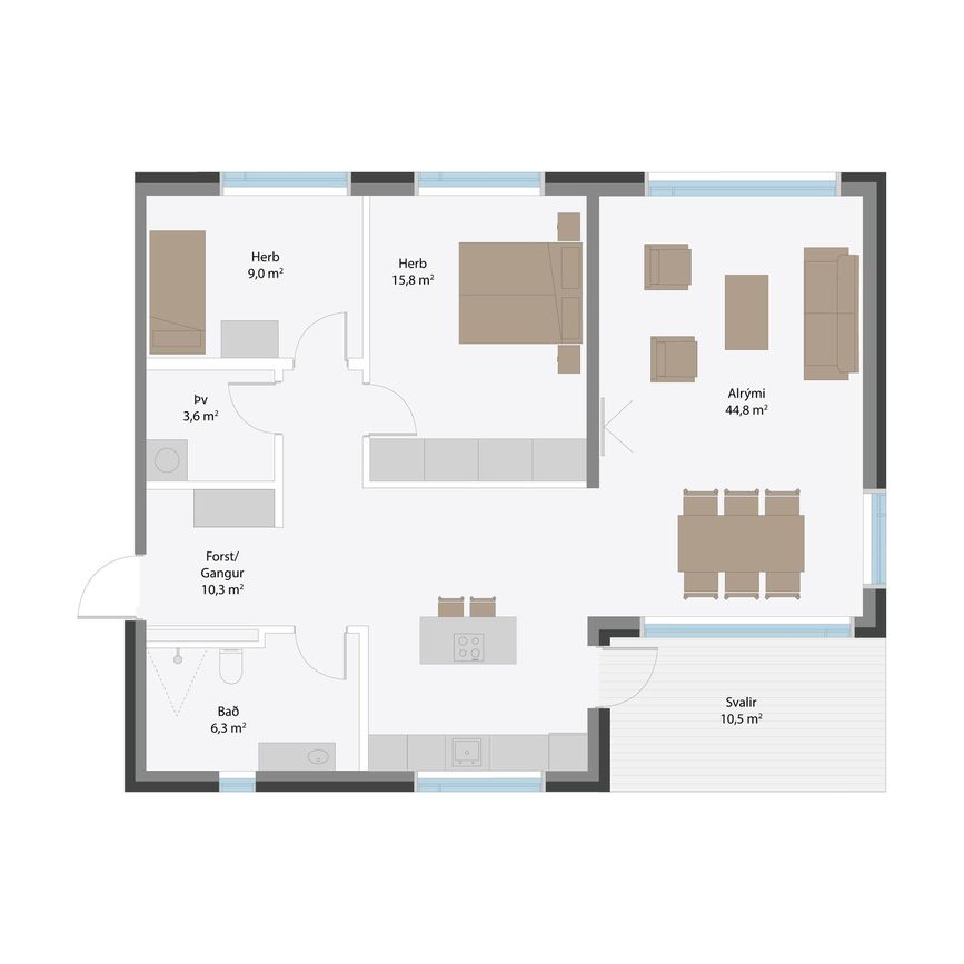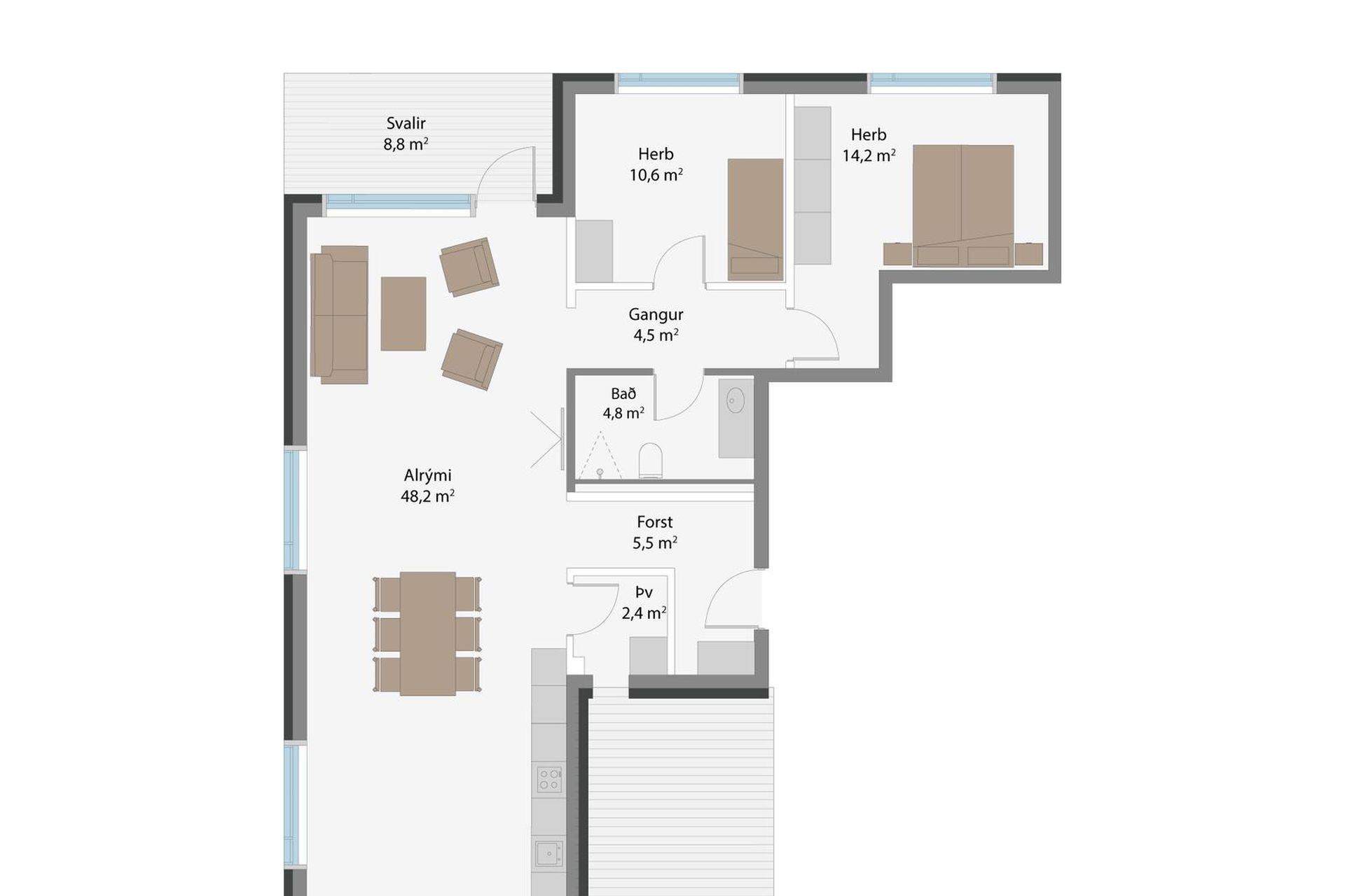 | 3 | 116,10 m² | 89.900.000 kr. 24. apríl 2025 | 91.060.000 kr. 8. júlí 2025 |