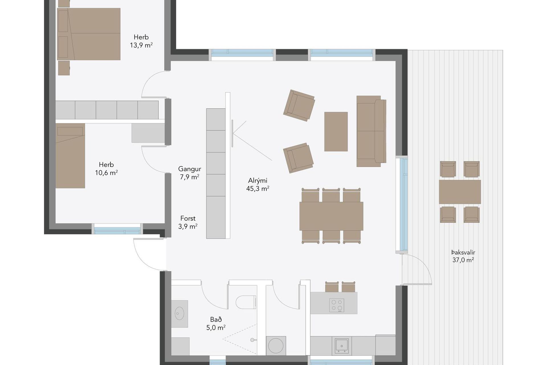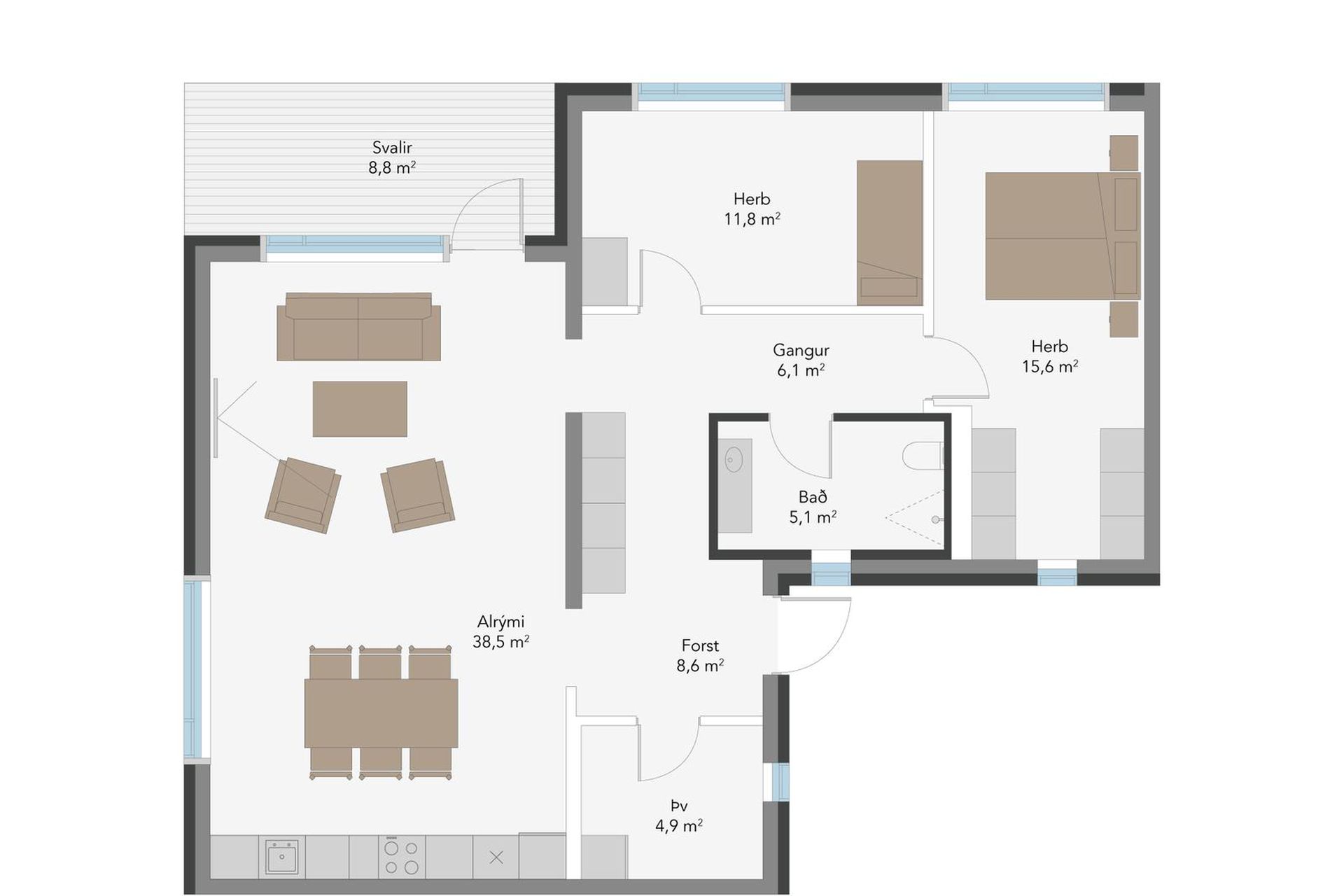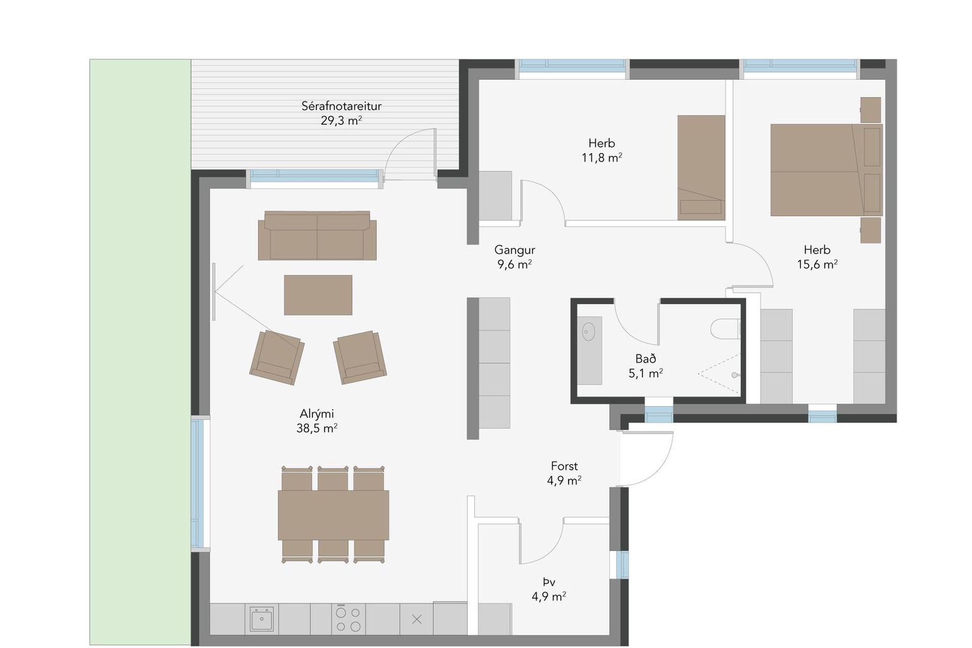 | 3 | 118,80 m² | 91.900.000 kr. 23. október 2024 | 92.005.000 kr. 28. nóvember 2024 |