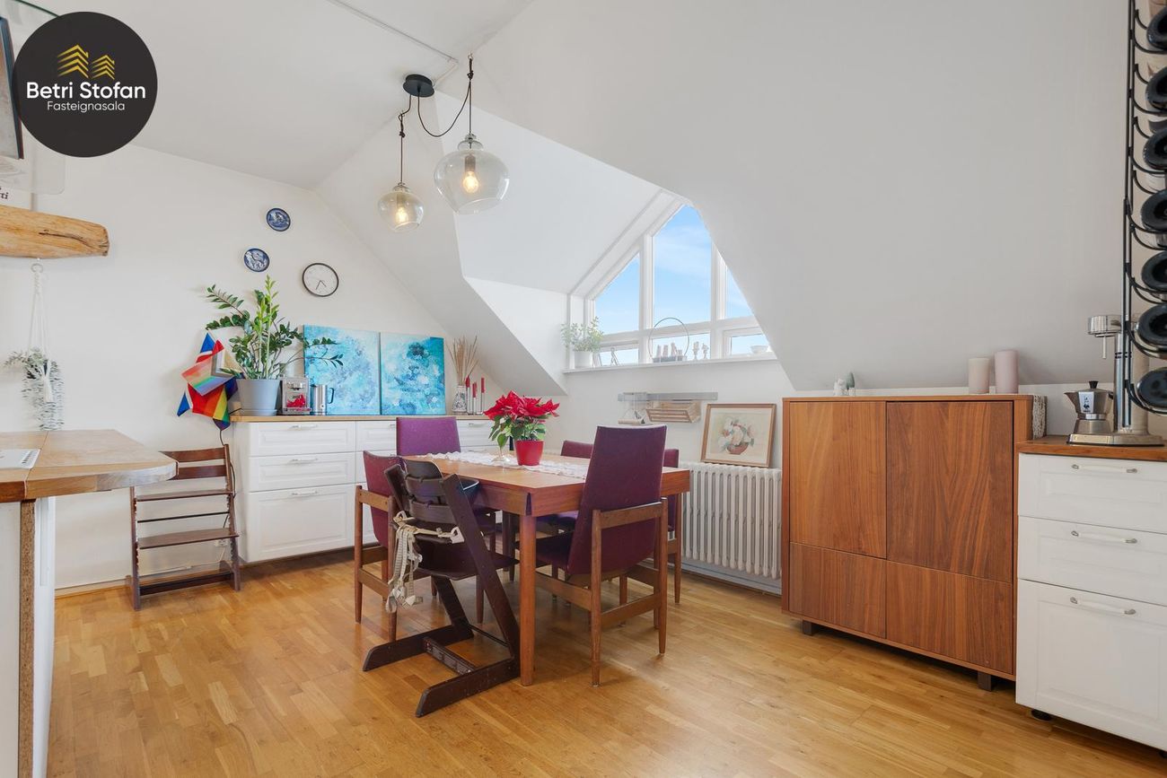 Tvær samliggjandi stofur með fallegum kvistum og fallegu útsýni. Parket á gólfi.