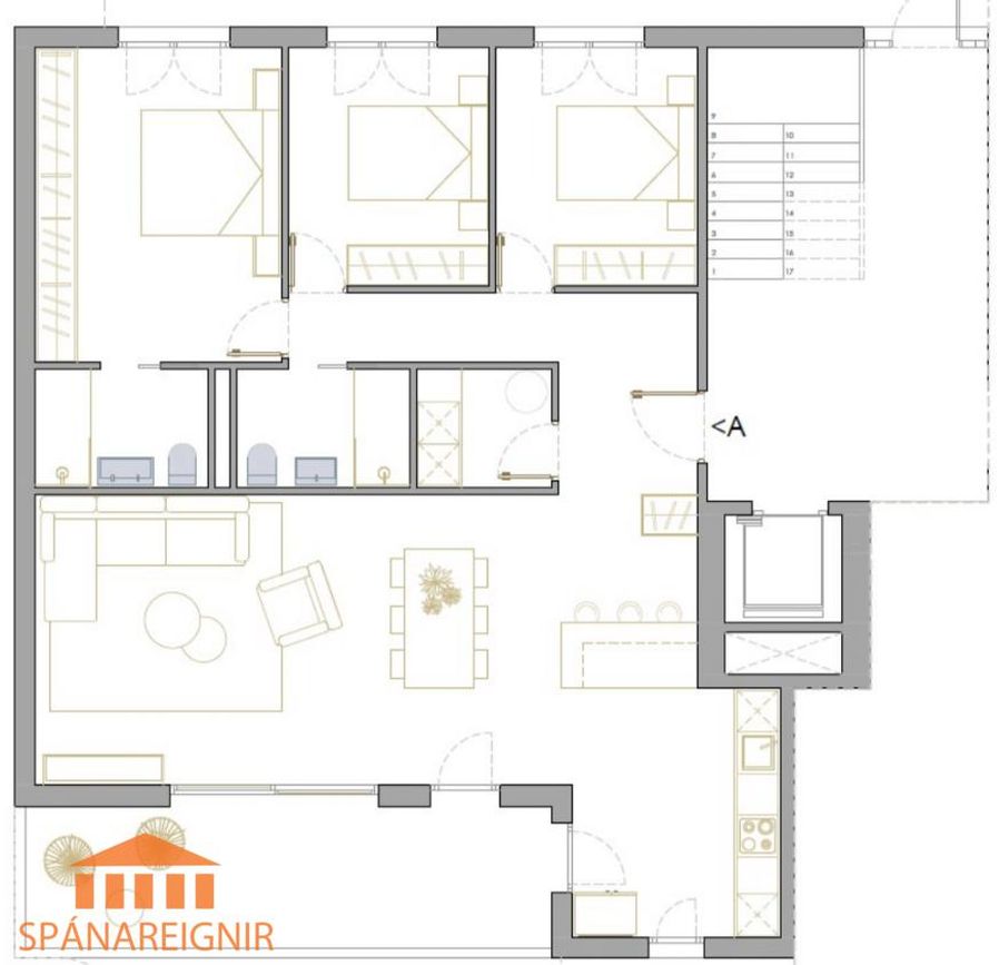 | Íbúð | Herbergi | Stærð | Síðasta ásetta verð | Síðasti kaupsamningur |