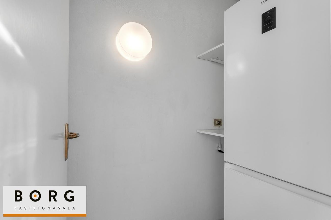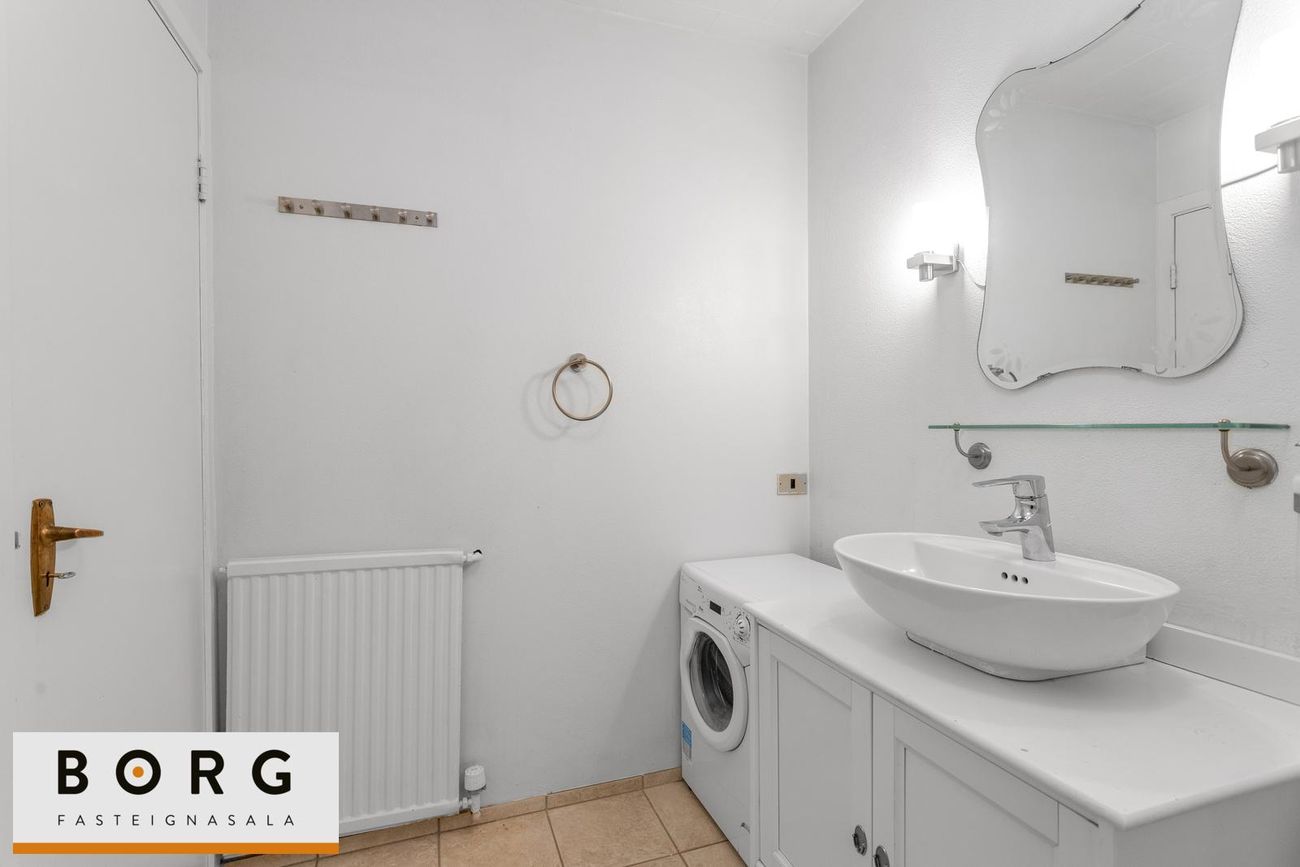 Þvottahús er á jarðhæð, sameiginlegt fyrir húsið, þar sem er þvottavél í eigu húsfélags.